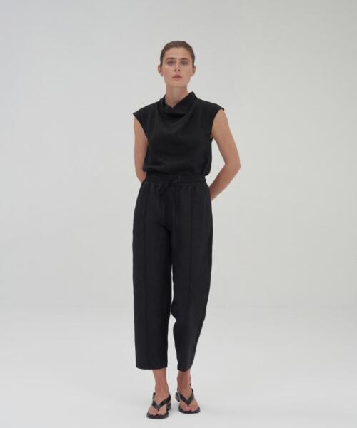 100% Linen Carrot Trousers – Black – 24203