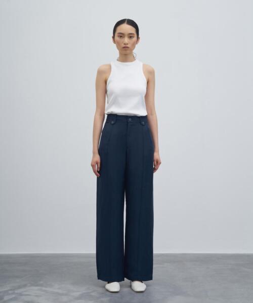 Vegan Linen Palazzo Pants – Navy Blue – 23213