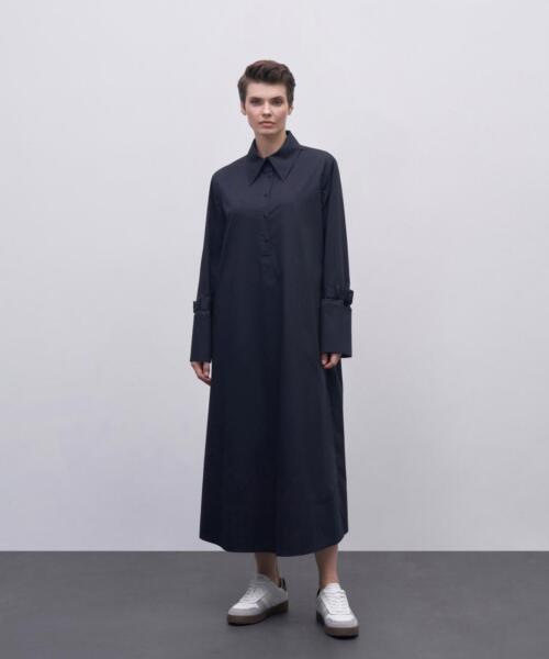Wide Cuff Cotton Dress – Navy Blue – 24160