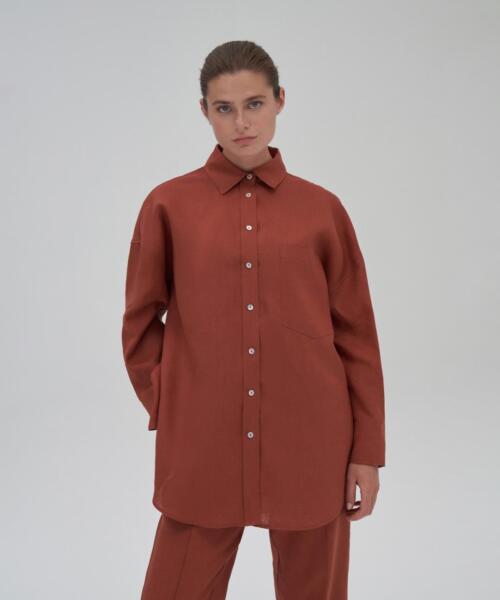 100% Linen Shirt – Brick Color – 22137
