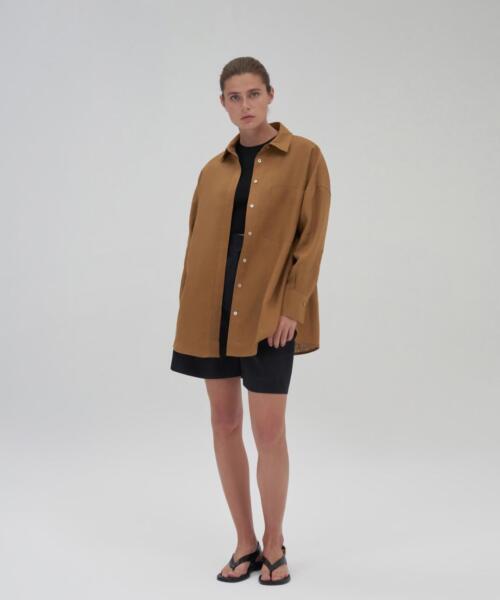 100% Linen Short Shirt – Brown – 24202