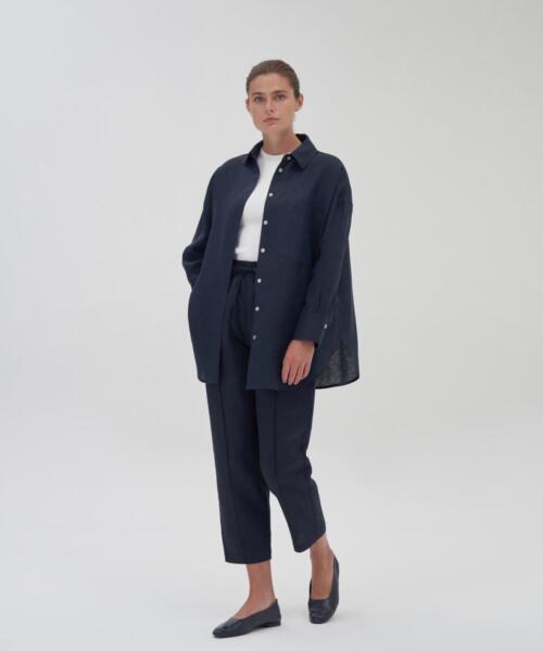 100% Linen Shirt – Navy Blue – 22137