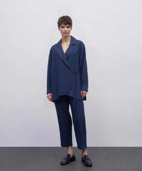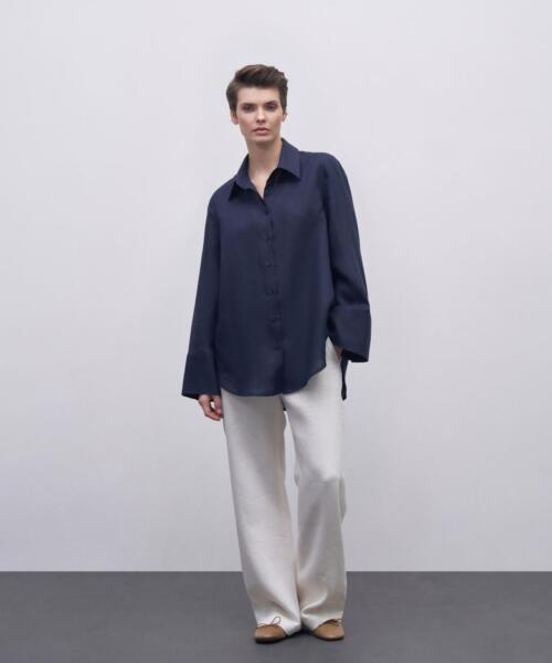100% Linen Wide Cuff Shirt – Navy Blue – 24126