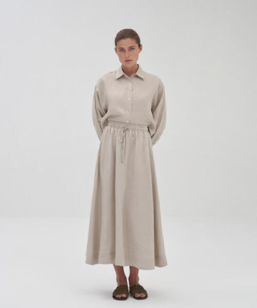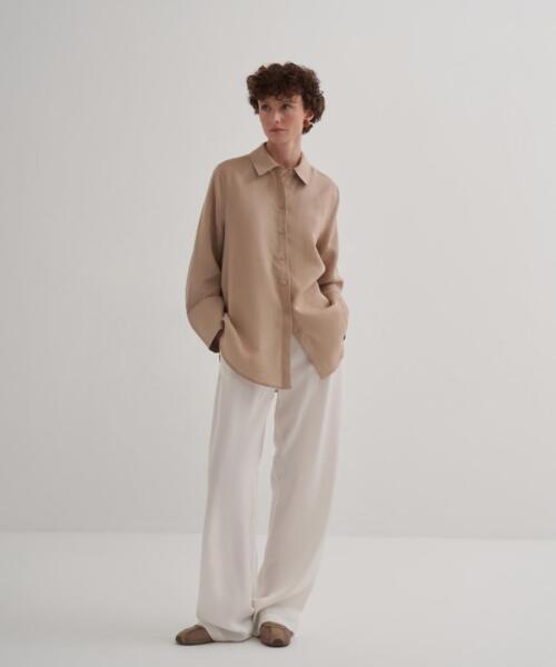 100% Linen Wide Cuff Shirt – Beige – 24126