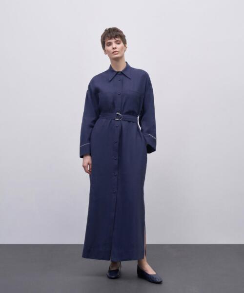 Buckle Detailed Shirt Dress – Navy Blue – 24100