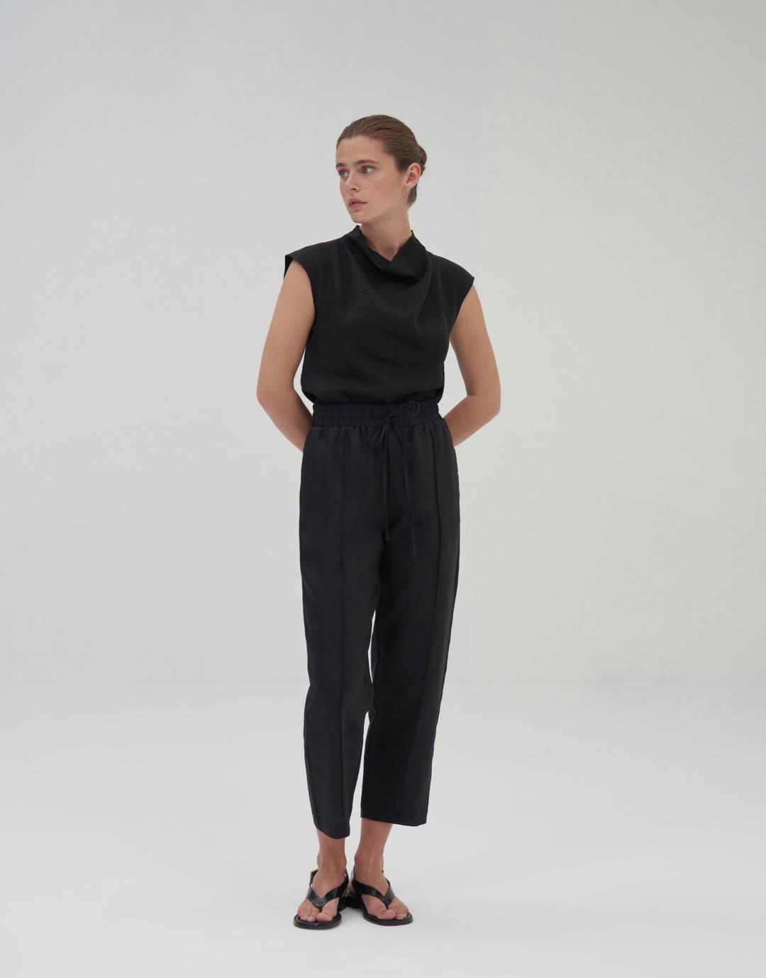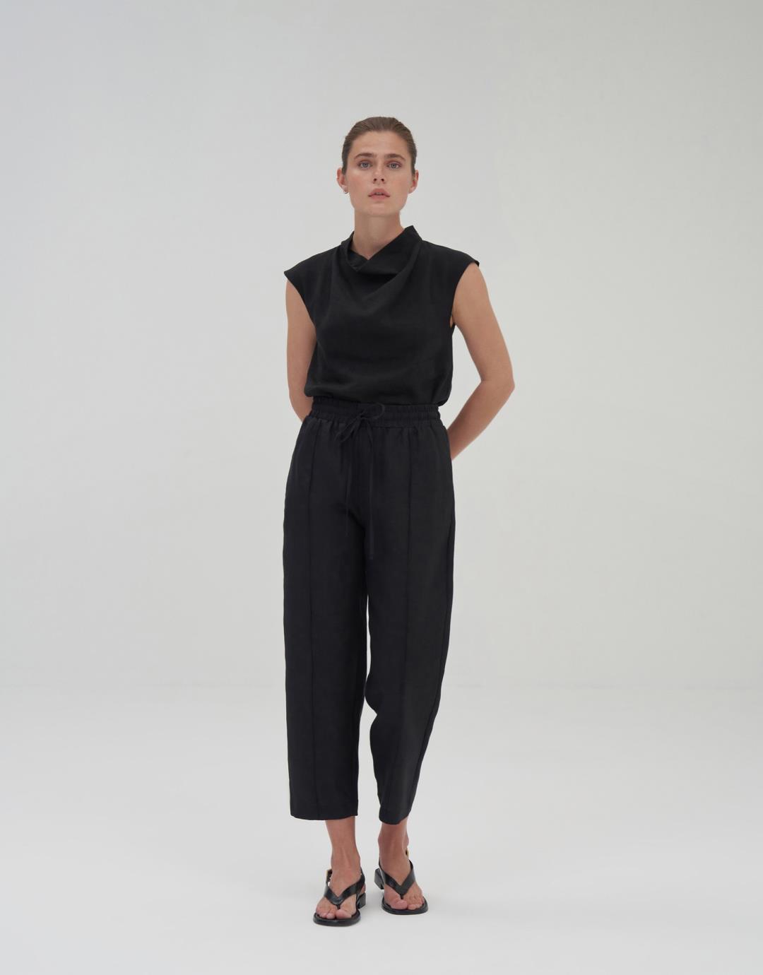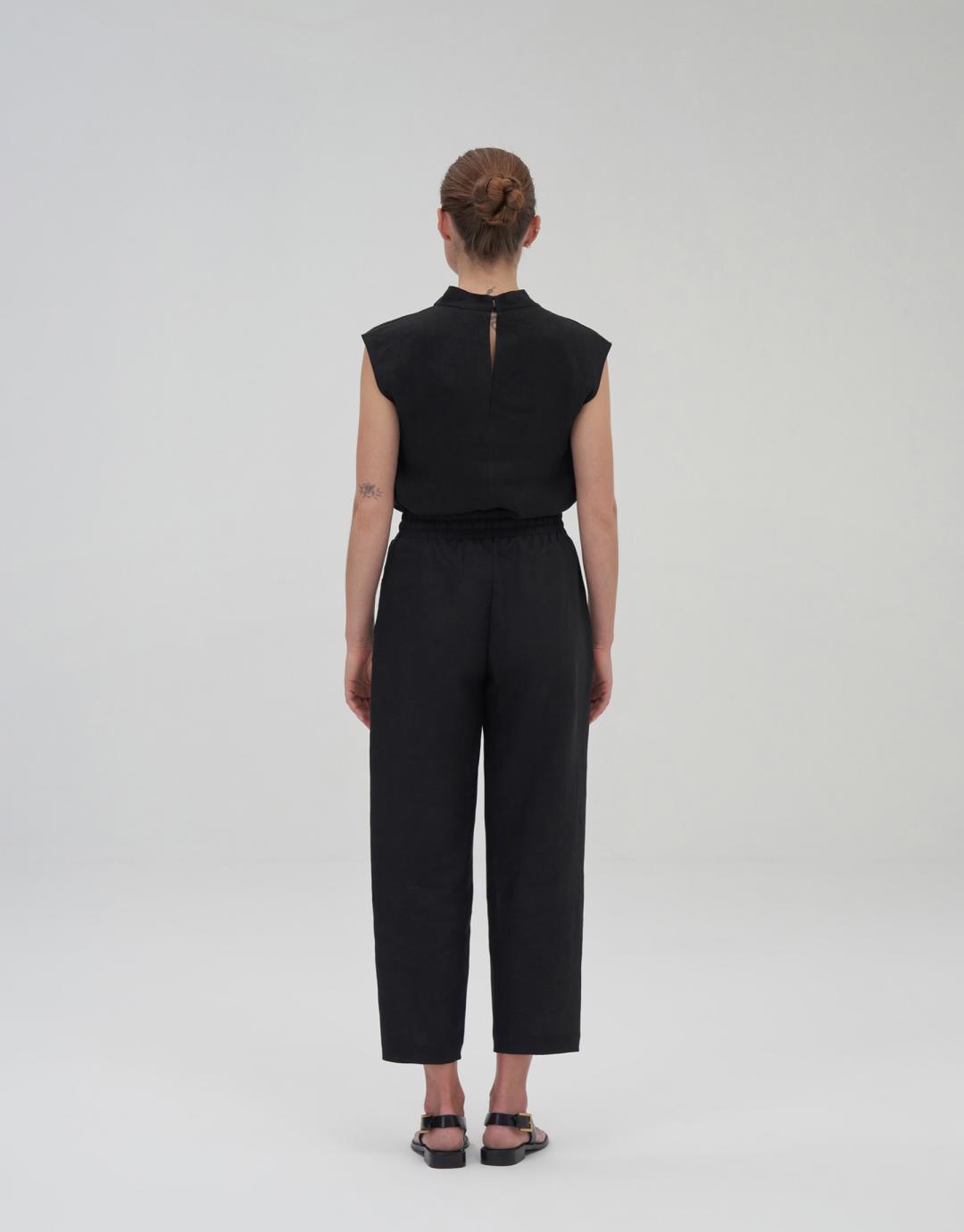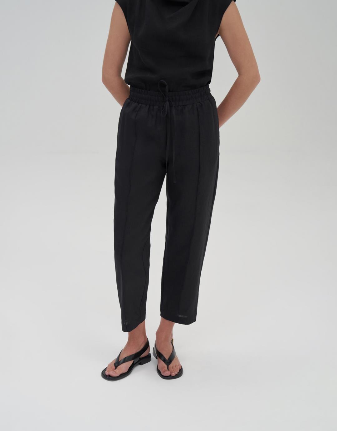 100% Linen Carrot Trousers – Black – 24203