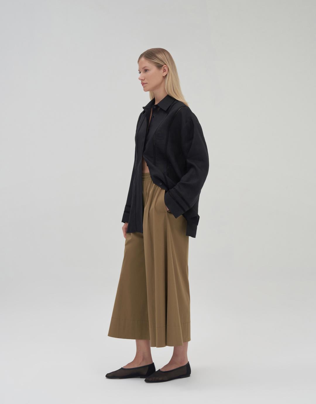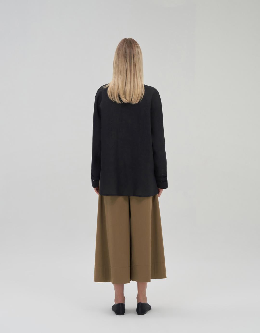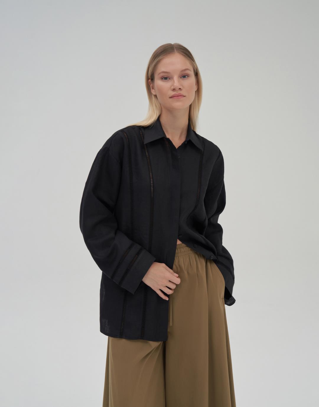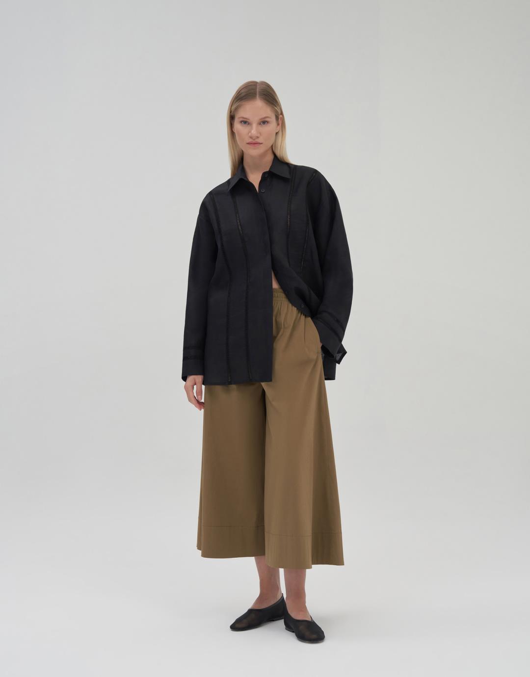 Fabric Content: 100% LINEN Product Details: Shirt collar. Button closure on the front body. Drop shoulders. Front body seams and armhole seams have scallop strip detail. Model Size: 36 Model Height: 1.72 The Product on the Model is Size S/M. Usage and Washing Instructions: Tetrachlorethylene Dry Cleaning. Roller cleaning is not done. Tumble drying is not done. Bleach bleach is not used.