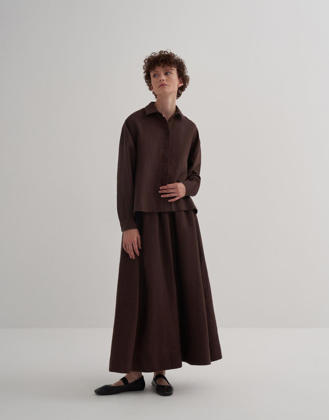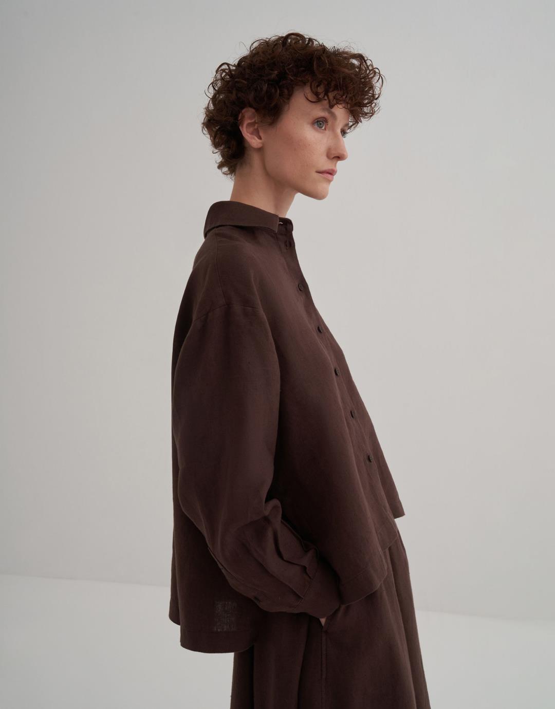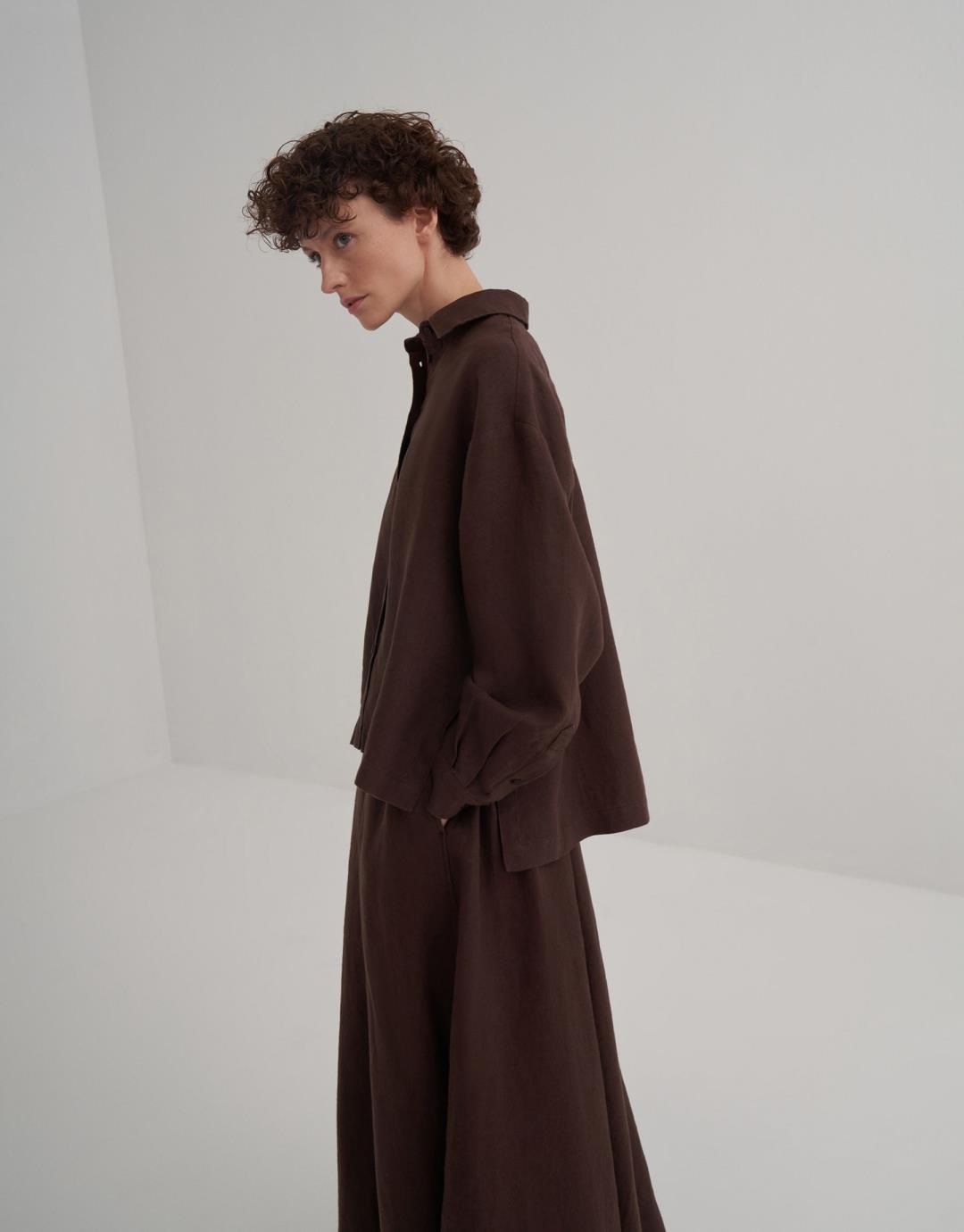 Fabric Content: 100% LINEN Product Details: Front body has button closure. Drop shoulders. Headline. Side seams with slits. Shirt short in the front and long in the back. Model Size: 36 Model Height: 1.72 The product on the mannequin is size S/M. Usage and Washing Instructions: Tetrachlorethylene Dry Cleaning. Roller cleaning is not done. Tumble drying is not done. Bleach bleach is not used.