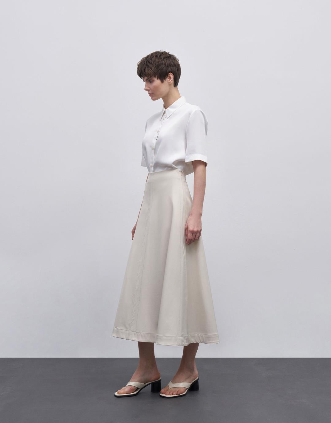 Fabric Content: 88%PEA 12%EA Product Details: Side zipper closure. A cut. Model Size: 36 Model Height: 1.78 The product on the model is size 36. Usage and Washing Instructions: Tetrachlorethylene Dry Cleaning. Roller cleaning is not done. Tumble drying is not done. Do not use bleach or bleach