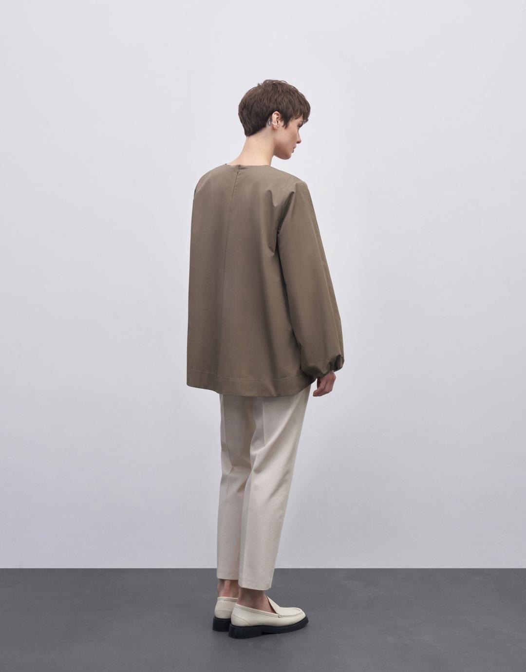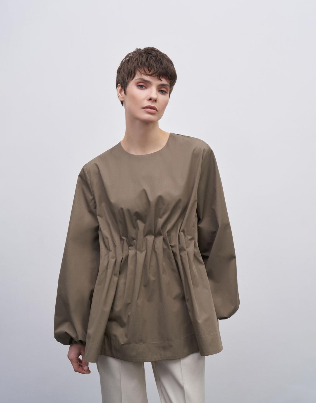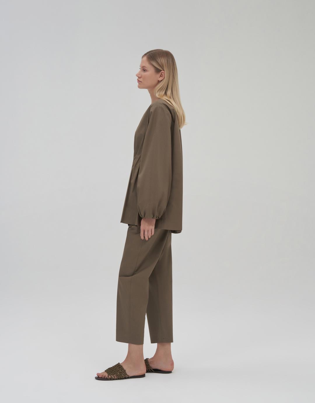 Balloon Sleeve Pleated Blouse – Light Khaki – 24158