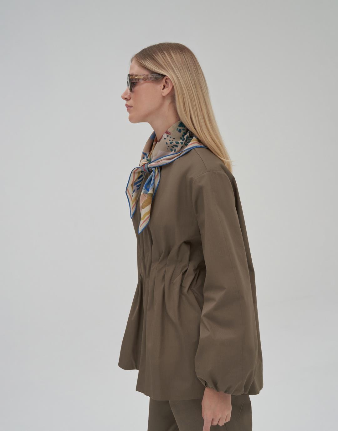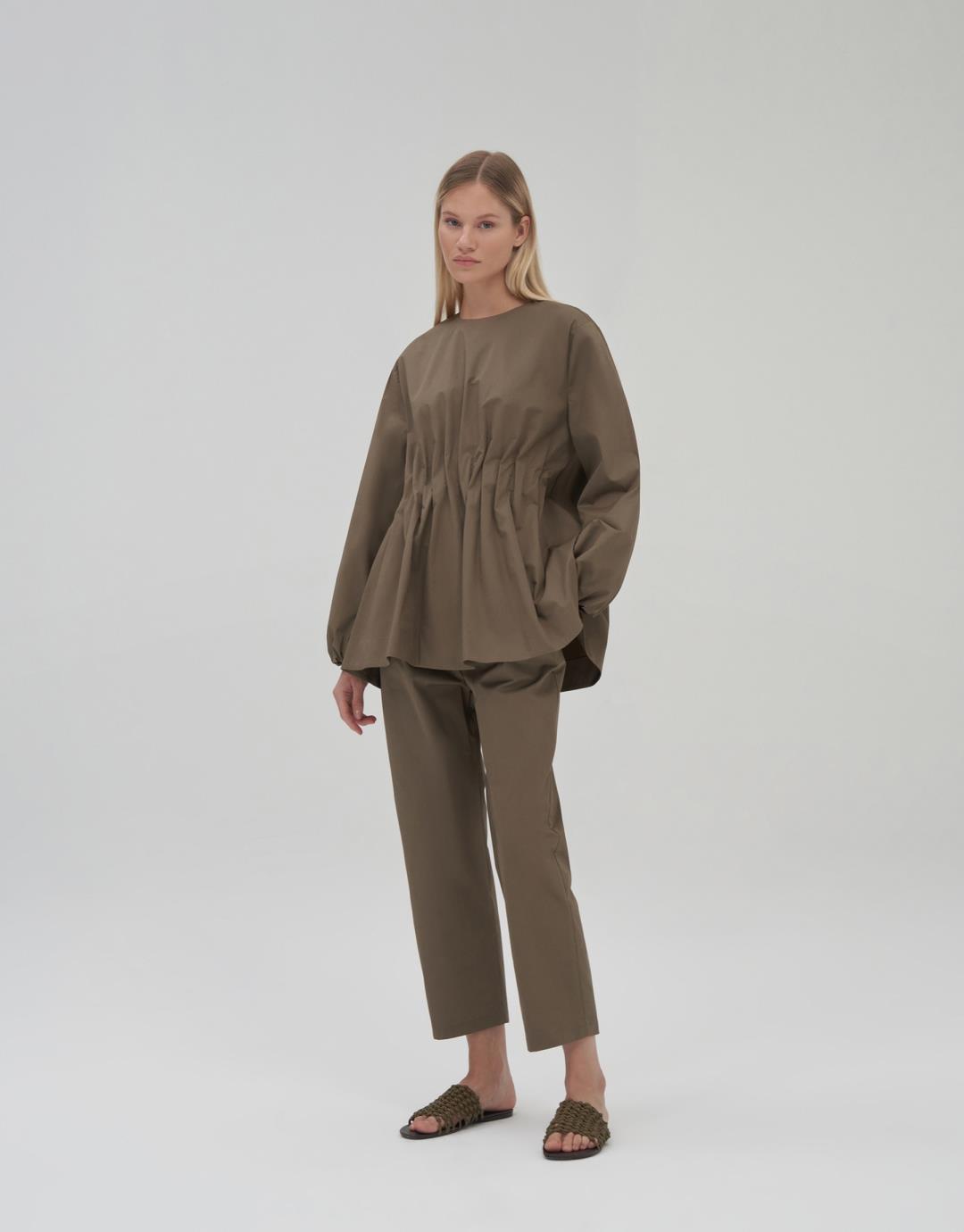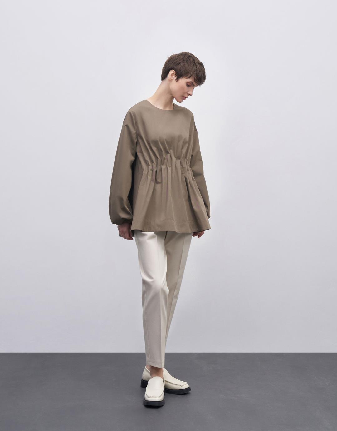 Balloon Sleeve Pleated Blouse – Light Khaki – 24158
