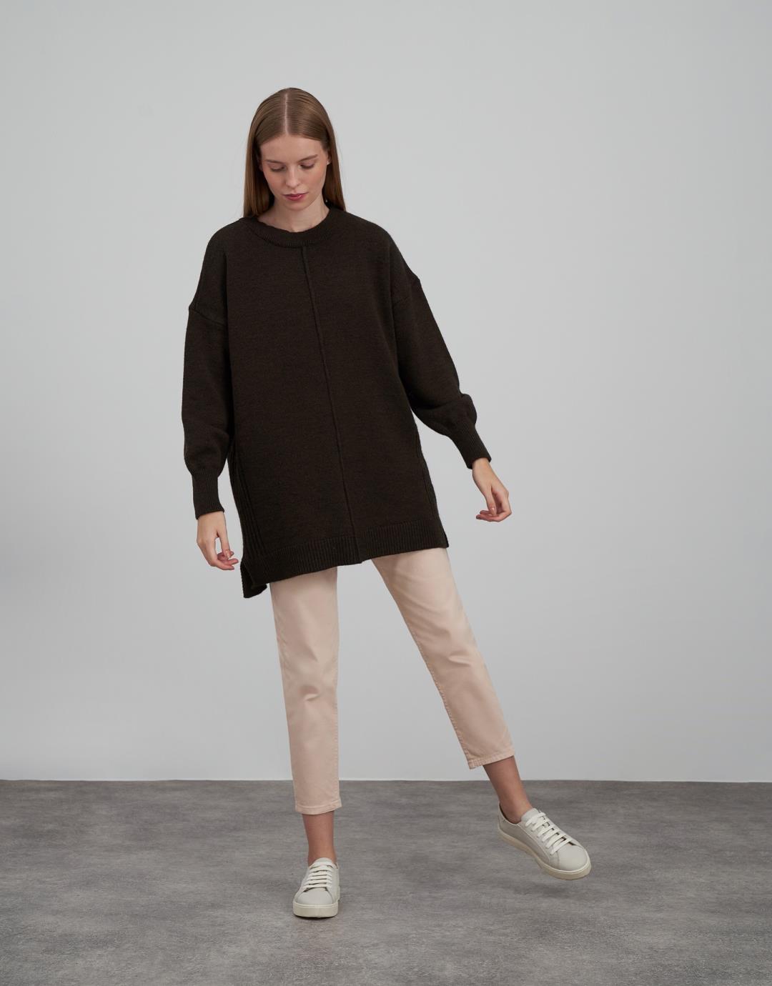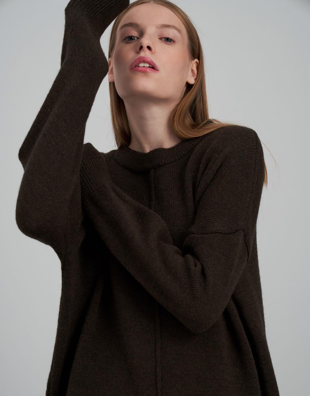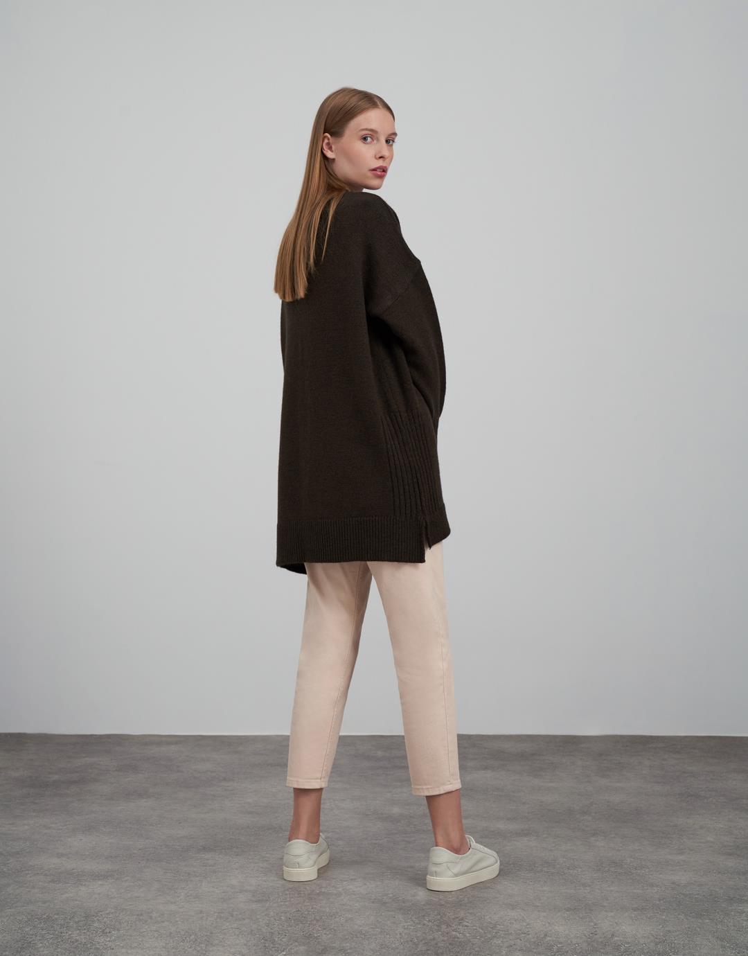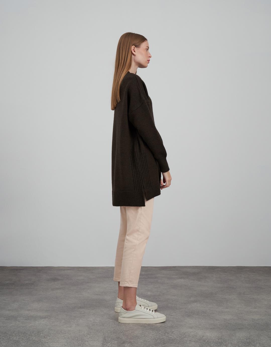 Fabric Content: 85% acrylic 9% elite 6% polyamide Fabric Info: Knitted Sleeve Detail Long sleeve Product Details: Front detail, side slits Mould Information: Loose Model Size : 36 Model Height : 1.78 The product on the Model is std size. Usage and Washing Instructions: Recommended Dry cleaning.