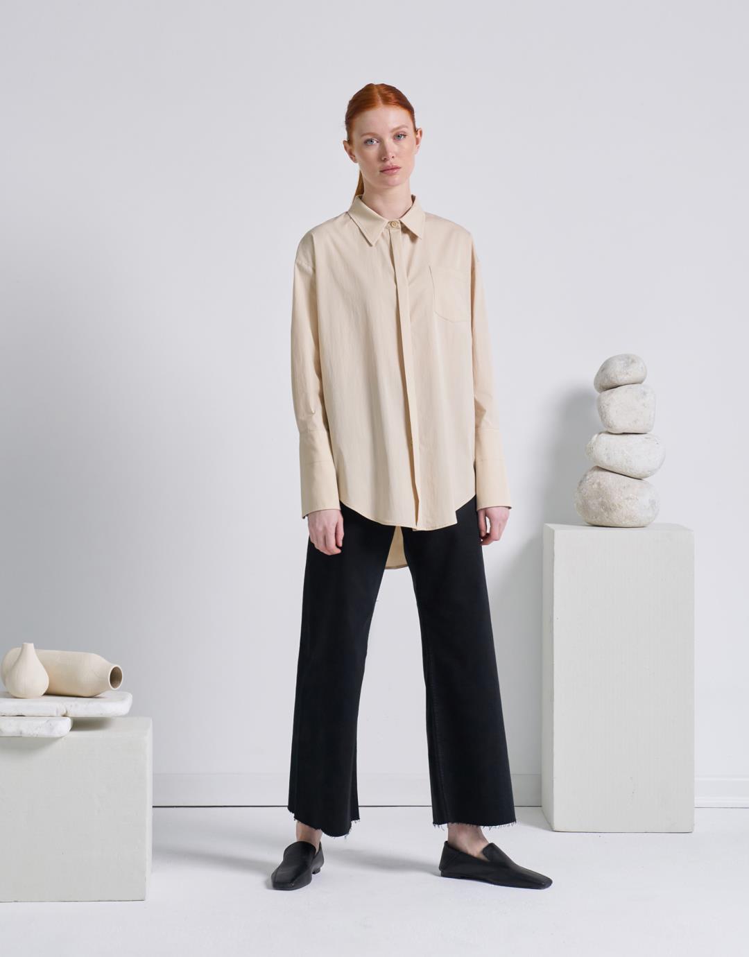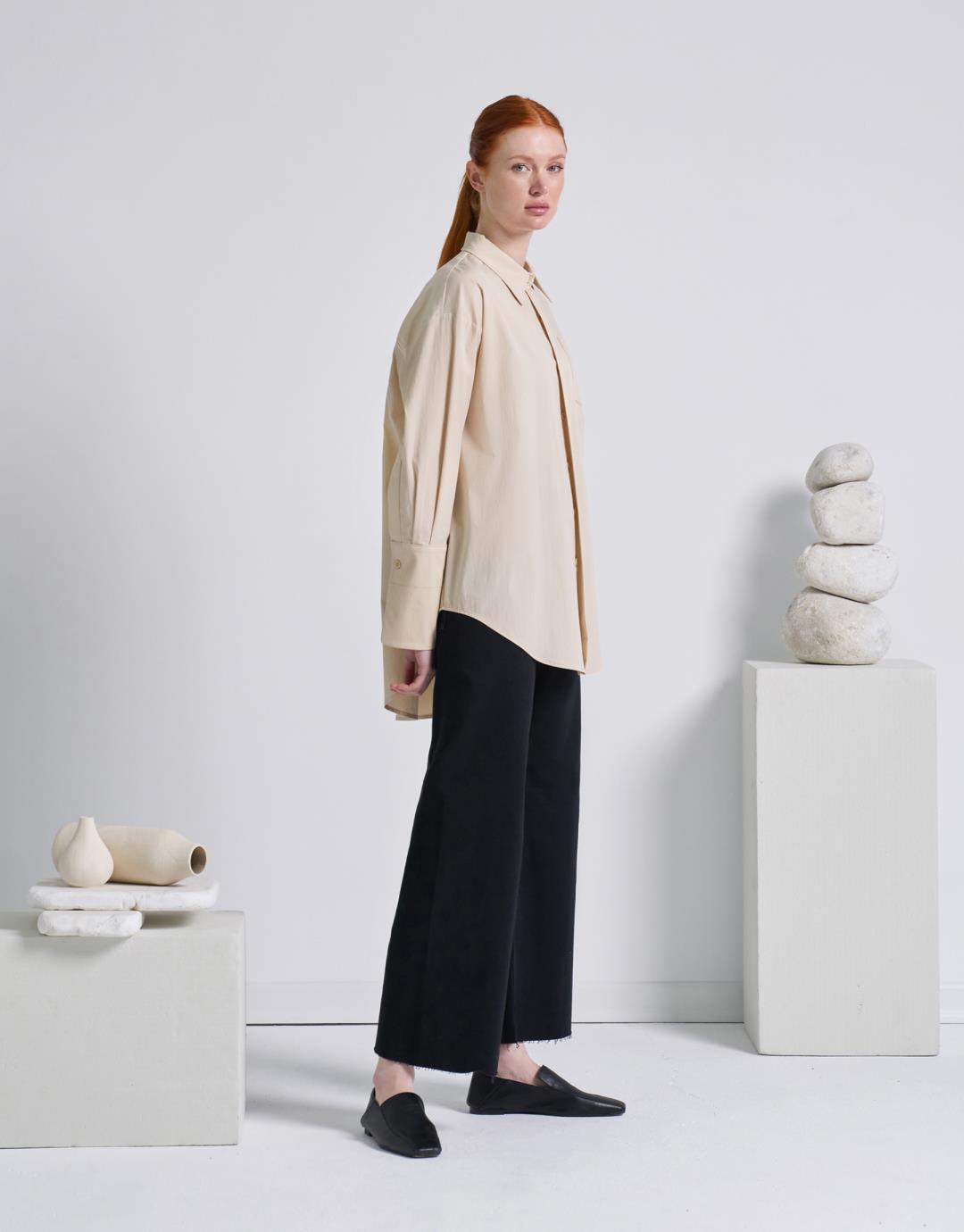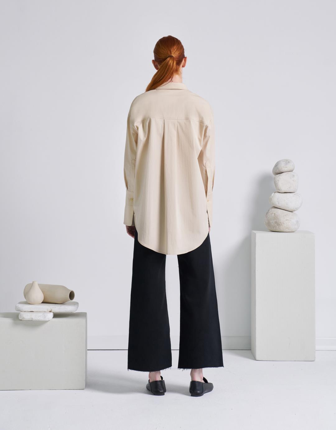 Fiber Content: 61% COT 34% PA 5% SP  Model Size : 36 Model Height : 1.78  The product on the model is size S/M. Usage and Washing Instructions : Recommended Dry clean.
