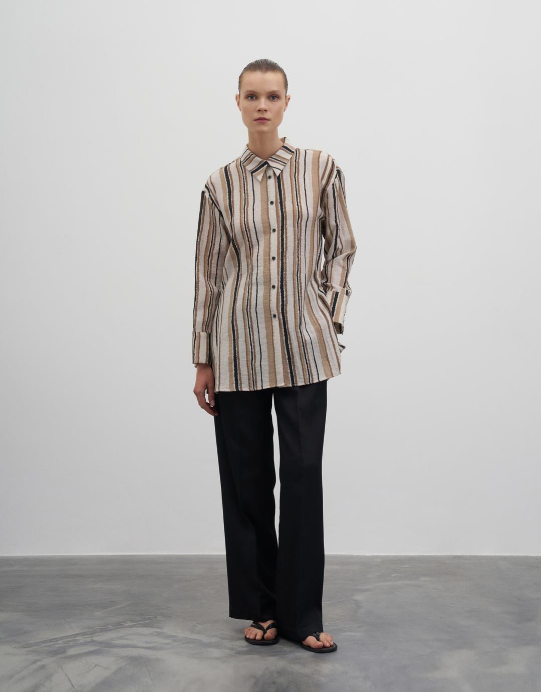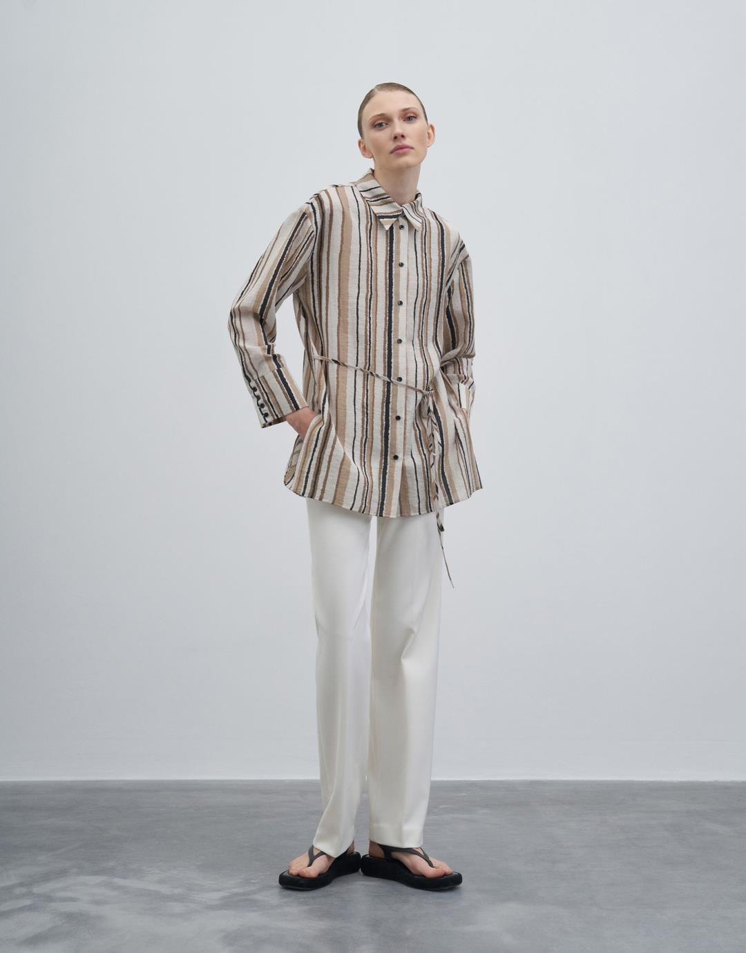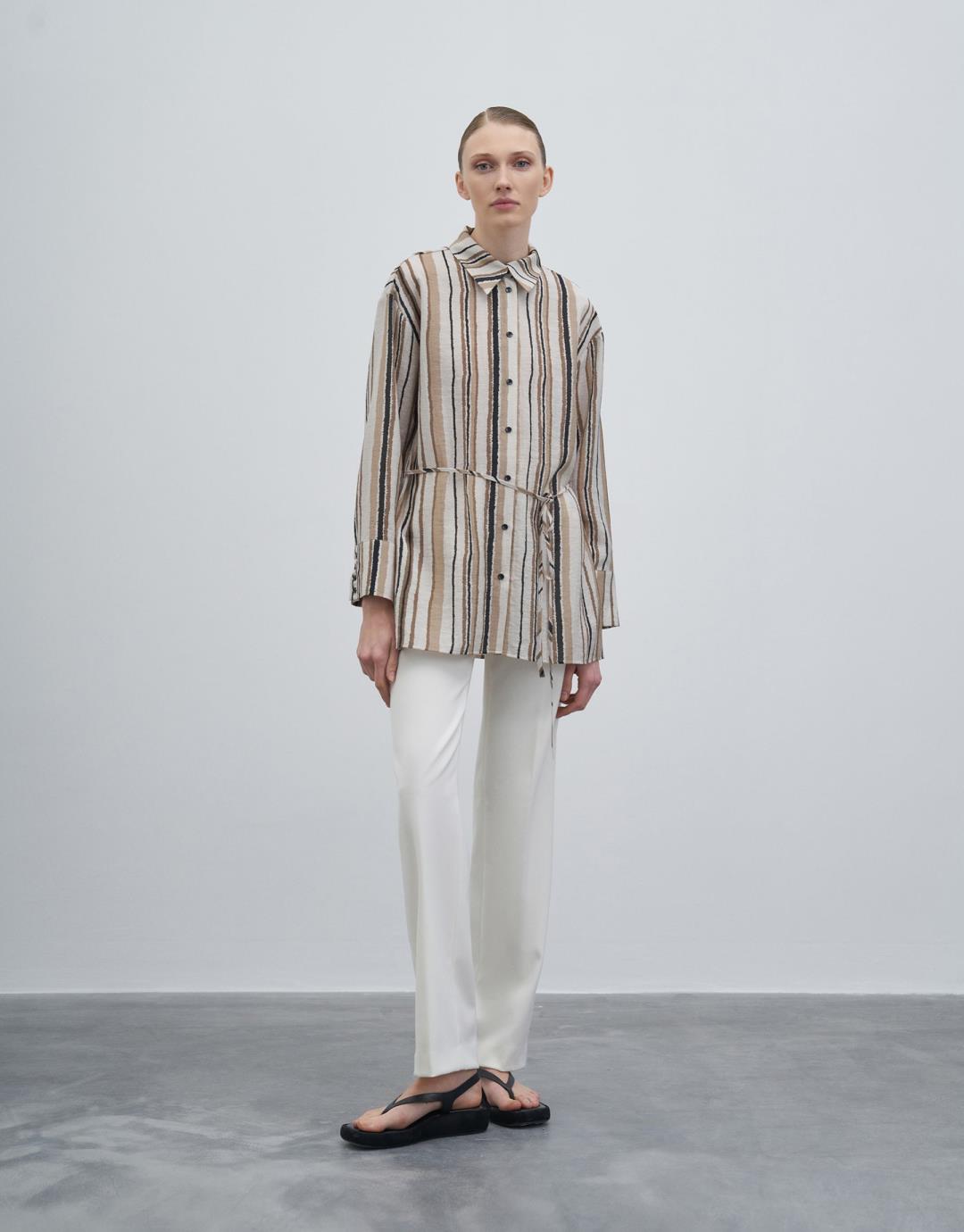 Fiber Content: %62VISCOSE %25POLYAMIDE %13LINEN Model Size: 36 Model Height: 1.78 The product on the model is size 36. Usage and Washing Instructions : – Max. wash at 30°C. – Iron on low heat. – No tumble drying. – Do not use to bleach. – Can dry cleaning. – Don't use with metal accesesories. – It's a delicate product. This fabric, which is one of the world's first vegan fabric collection, has been developed and produced in a way that is produced without harming nature and animals, is completely destructible in nature, and is easy to clean and use. We believe in the transformative power that clothes exert on those who wear them. But above all, we believe in responsibility for people and our world. For this reason, we do not perceive sustainability as a goal, but as a common axis of our business, connected with our entire environment. Our goal is to choose more environmentally and animal-friendly materials, to support processes with less environmental impact, and to reduce our footprint in nature. We manage to be closer to our goal every day: We are actively working to make fashion more responsible. We invite you to an age of elegant comfort where silky touch is possible with this special collection made of vegan fabrics that are environmentally and animal friendly.