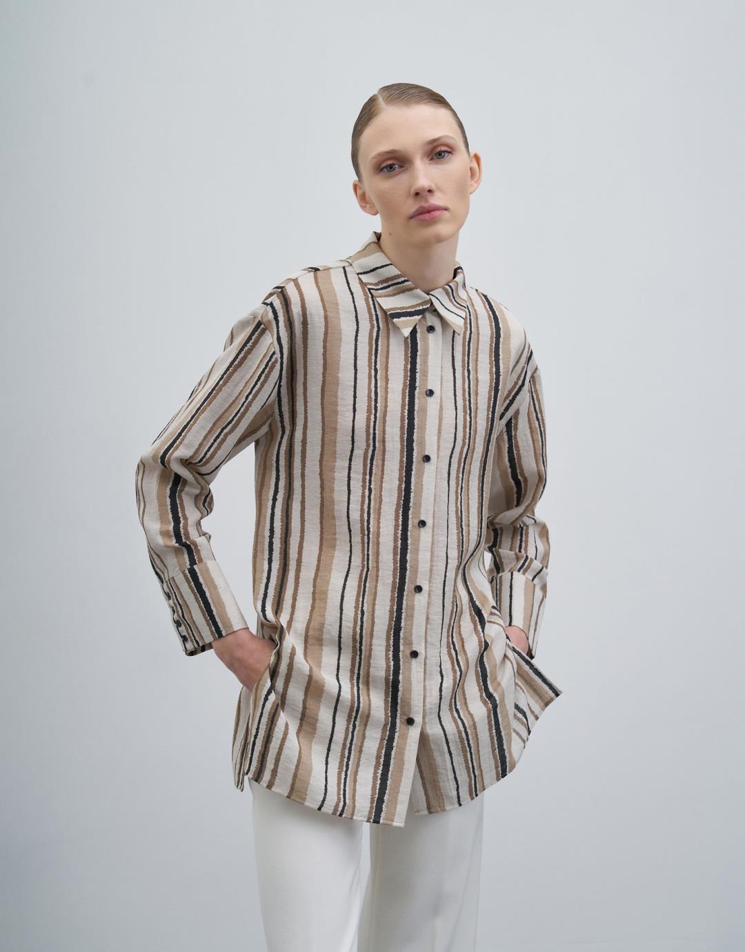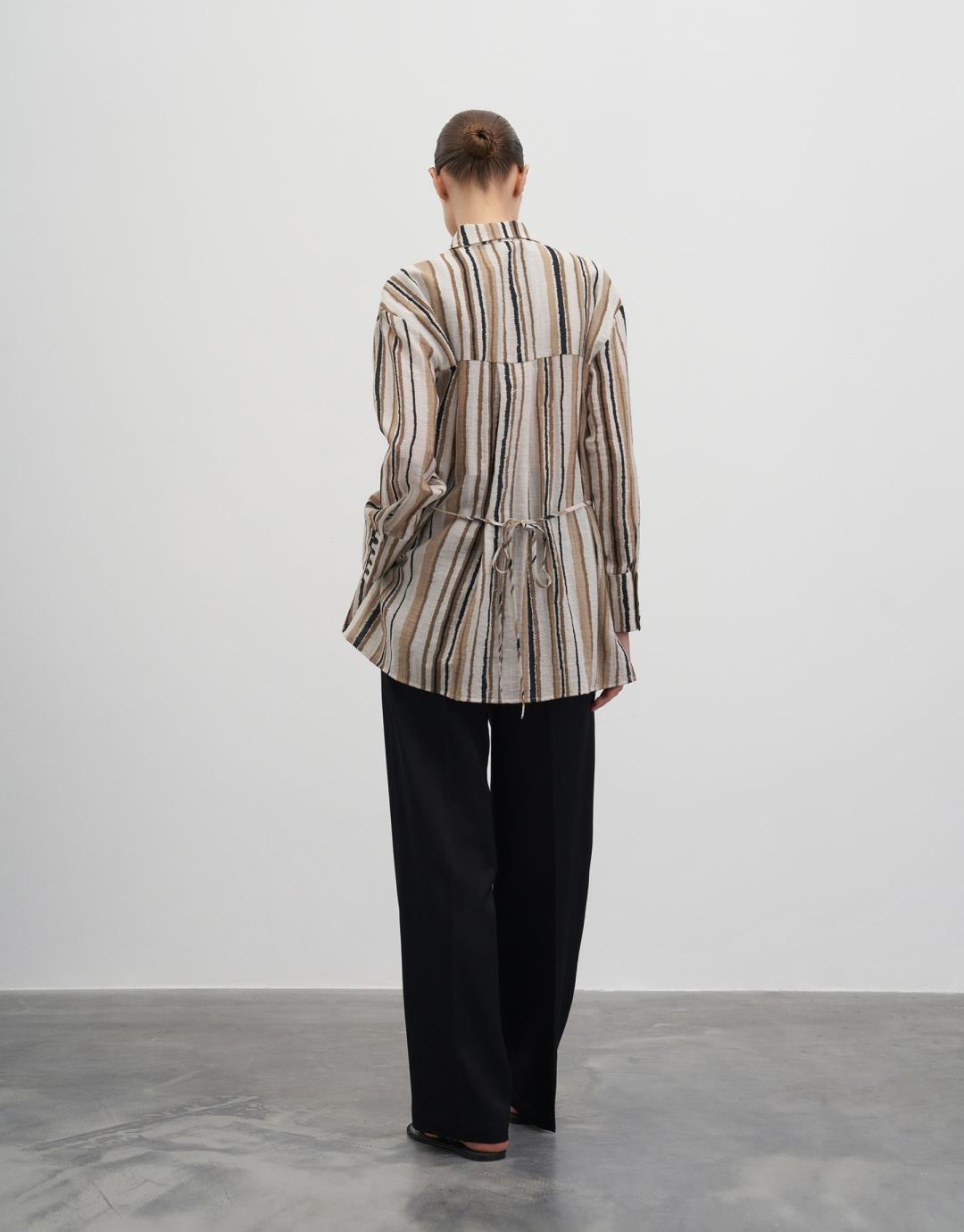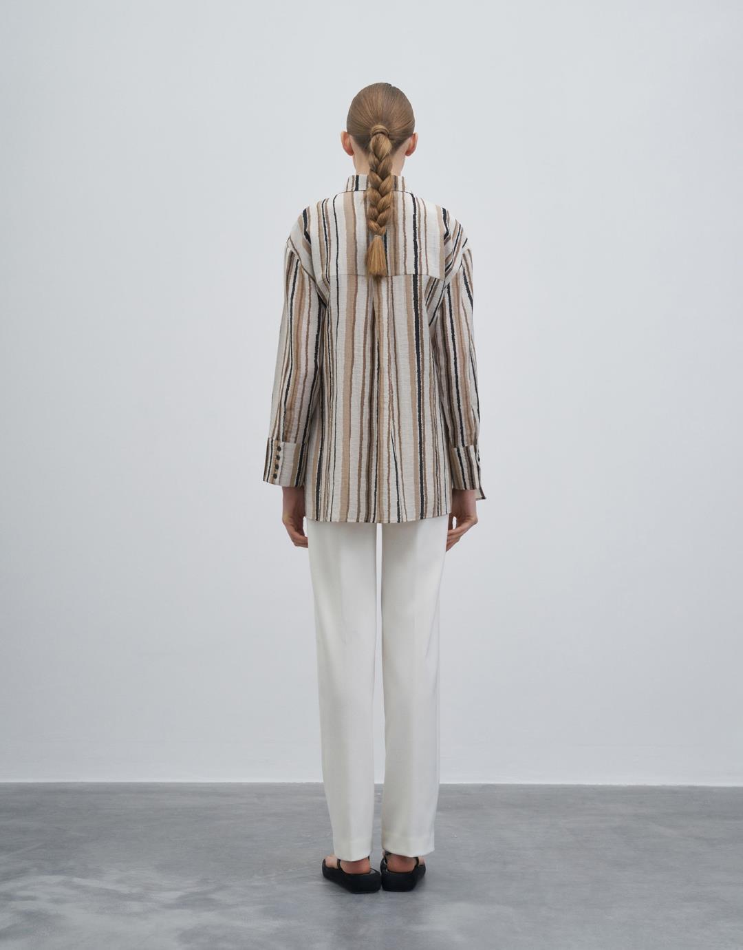 Fiber Content: %62VISCOSE %25POLYAMIDE %13LINEN Model Size: 36 Model Height: 1.78 The product on the model is size 36. Usage and Washing Instructions : – Max. wash at 30°C. – Iron on low heat. – No tumble drying. – Do not use to bleach. – Can dry cleaning. – Don't use with metal accesesories. – It's a delicate product. This fabric, which is one of the world's first vegan fabric collection, has been developed and produced in a way that is produced without harming nature and animals, is completely destructible in nature, and is easy to clean and use. We believe in the transformative power that clothes exert on those who wear them. But above all, we believe in responsibility for people and our world. For this reason, we do not perceive sustainability as a goal, but as a common axis of our business, connected with our entire environment. Our goal is to choose more environmentally and animal-friendly materials, to support processes with less environmental impact, and to reduce our footprint in nature. We manage to be closer to our goal every day: We are actively working to make fashion more responsible. We invite you to an age of elegant comfort where silky touch is possible with this special collection made of vegan fabrics that are environmentally and animal friendly.
