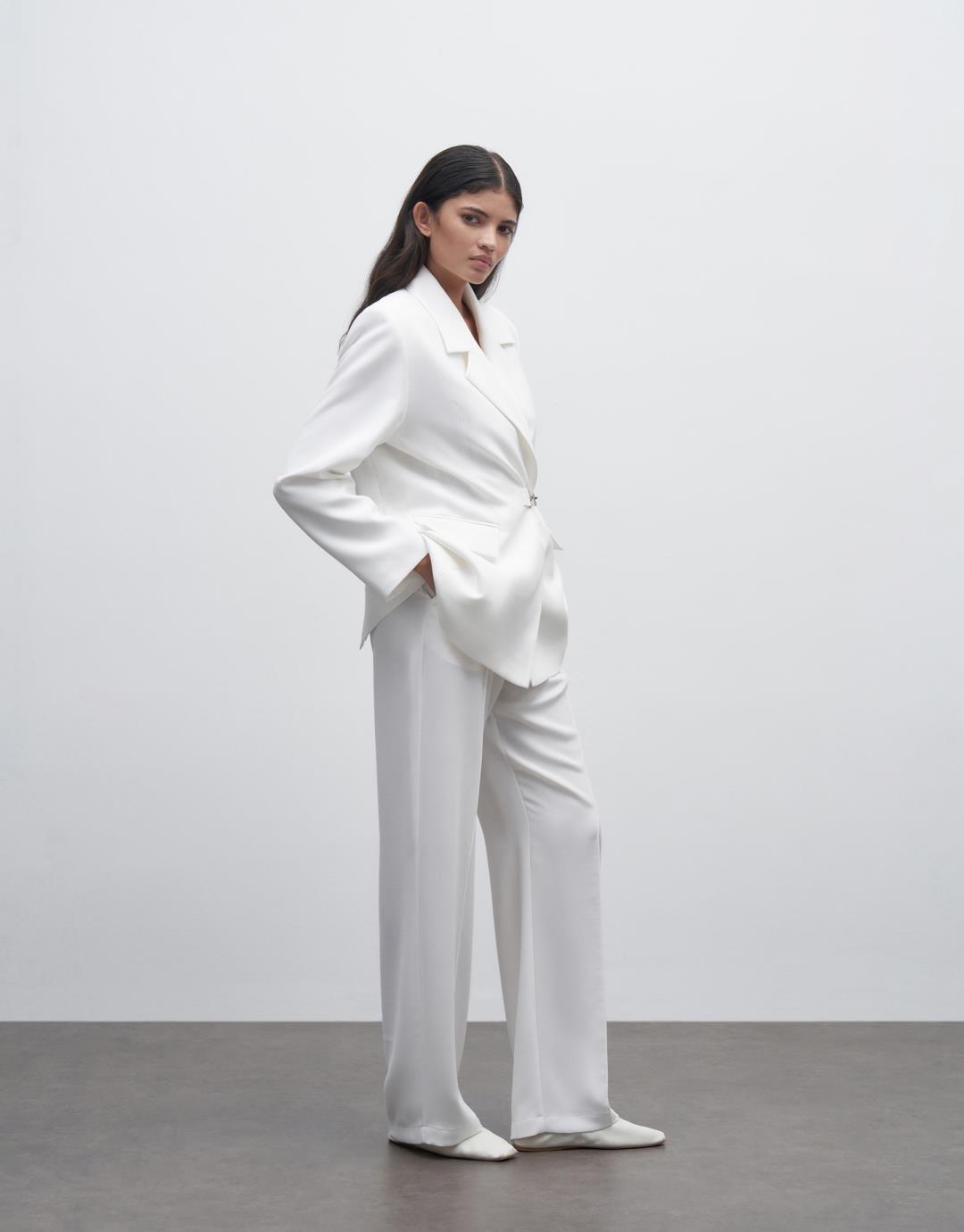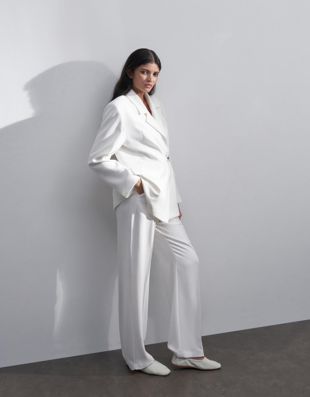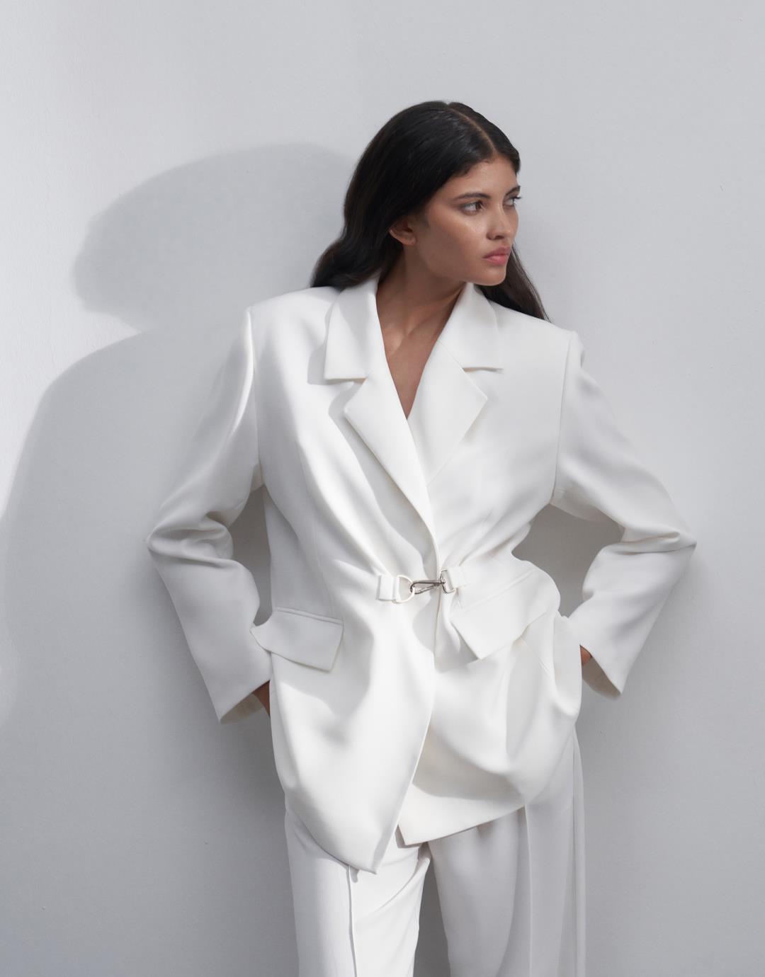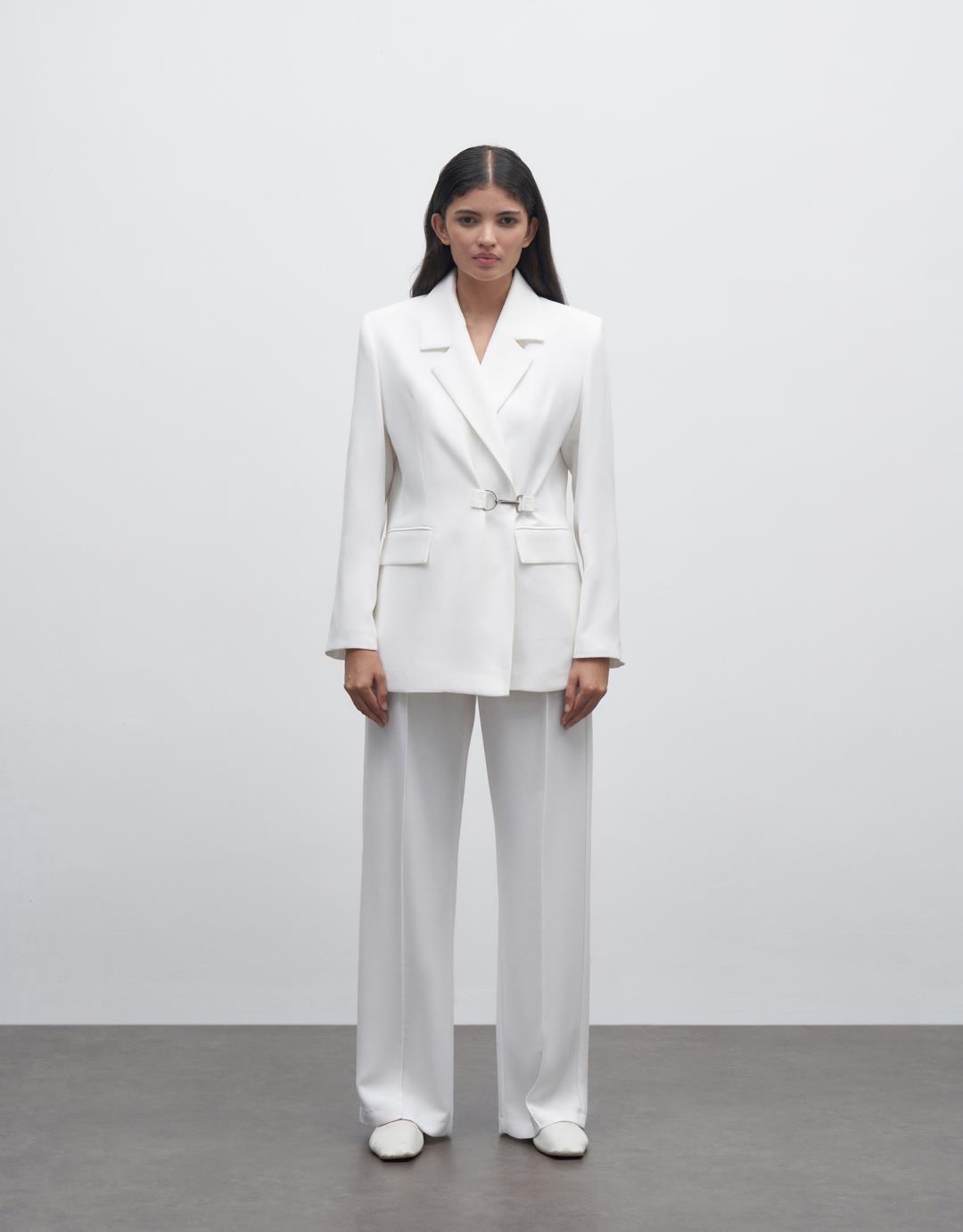 Buckle Detailed Blazer Suit – Ecru – 23315