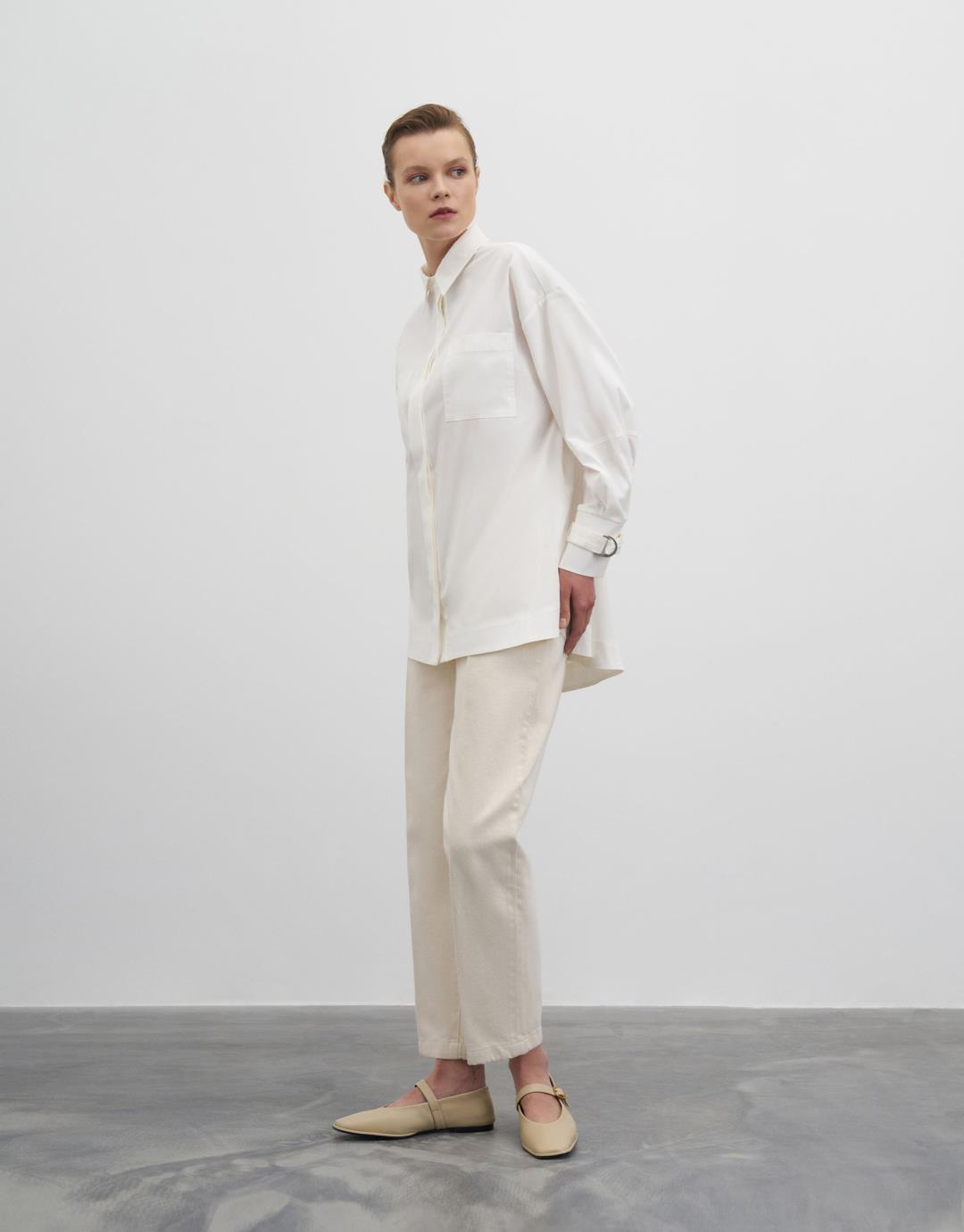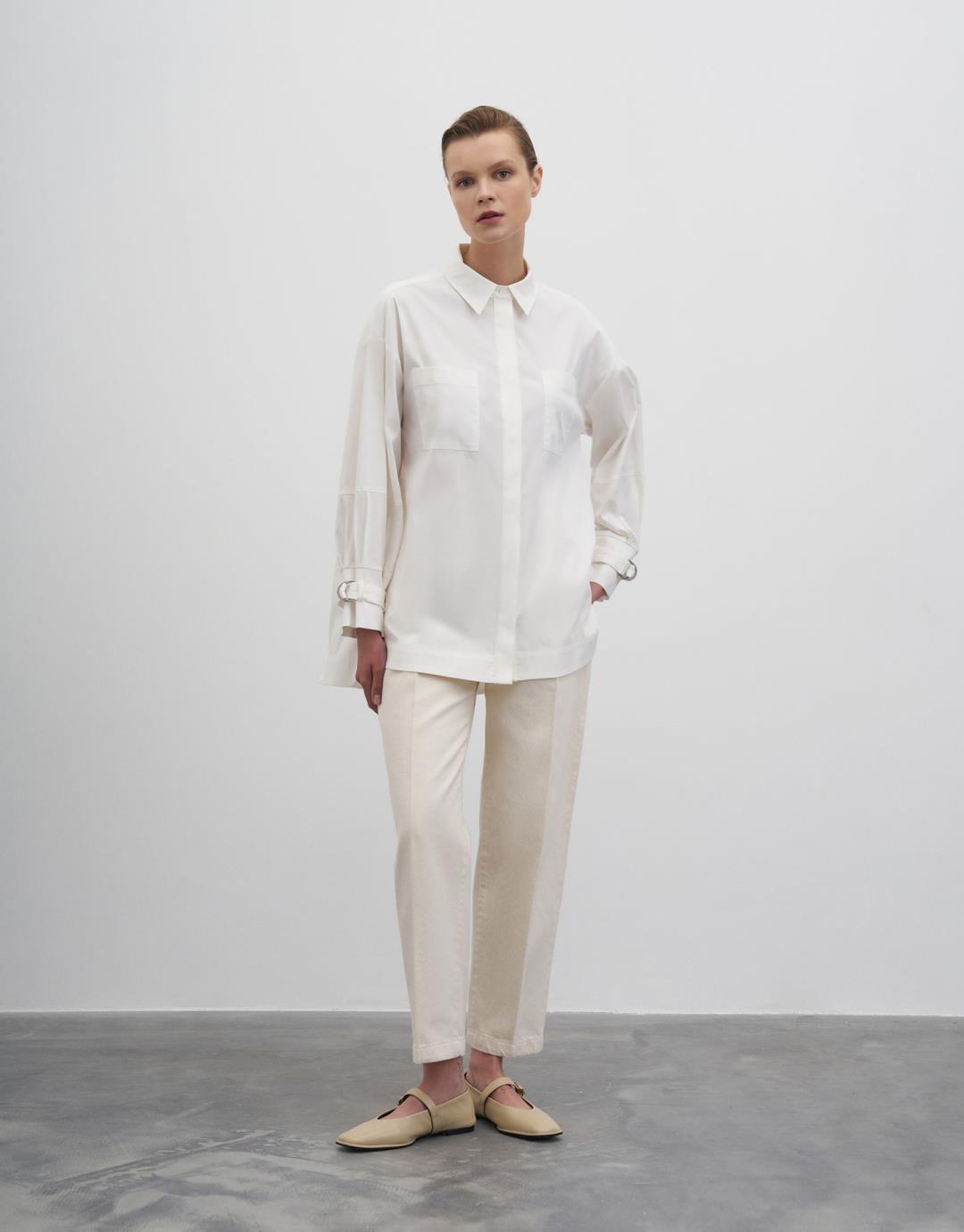 Buckle Detailed Shirt – Ecru – 22128-1