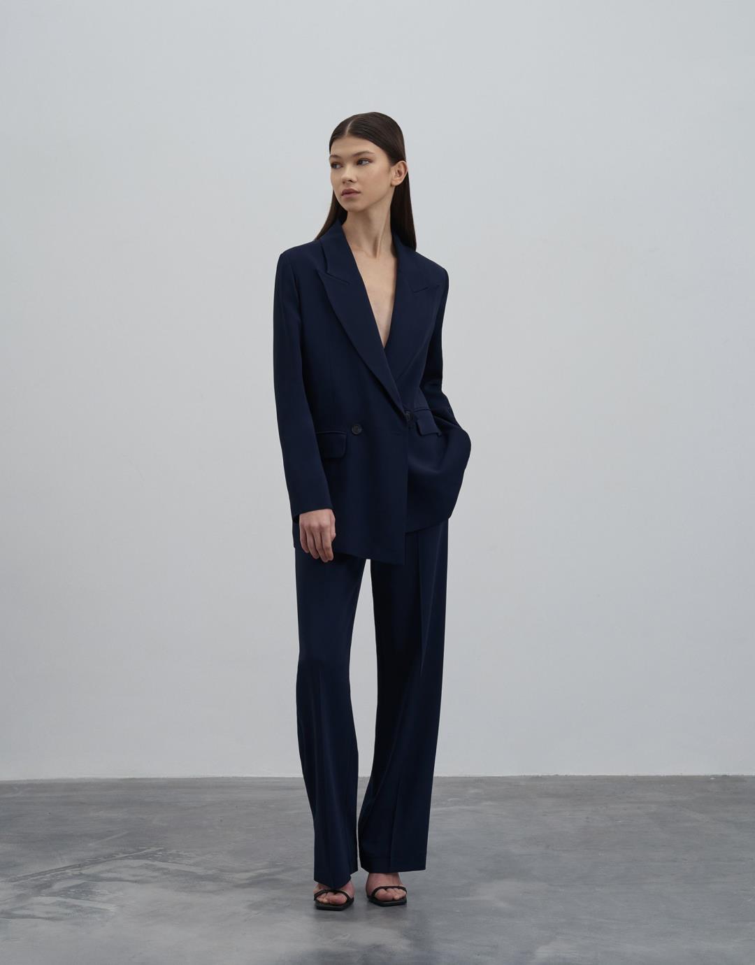 Button Detailed Blazer Suit – Navy Blue – 23100
