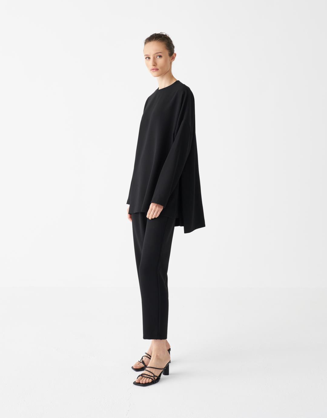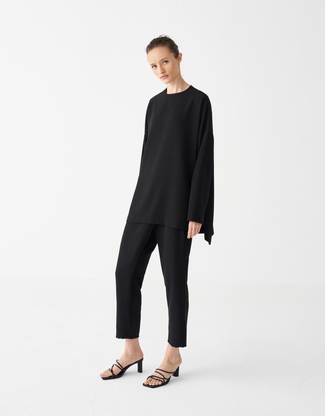Capped Pants Suit – Black – 21011-1