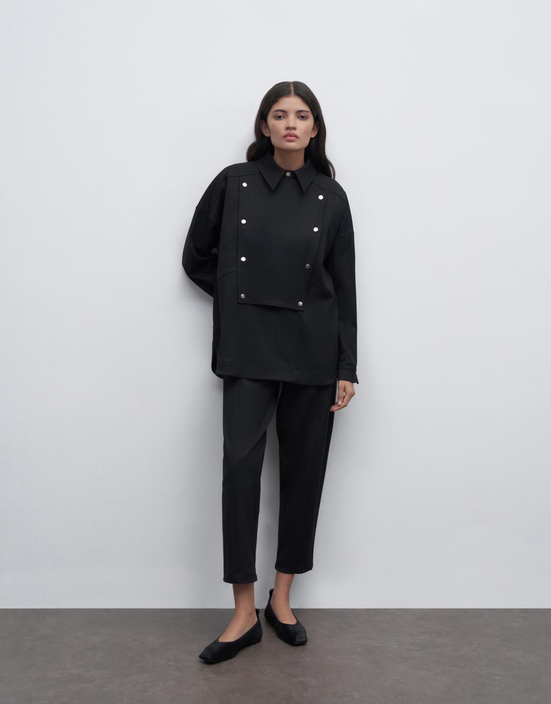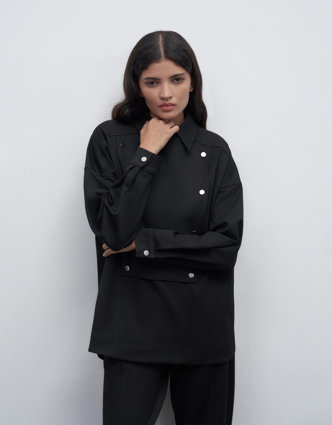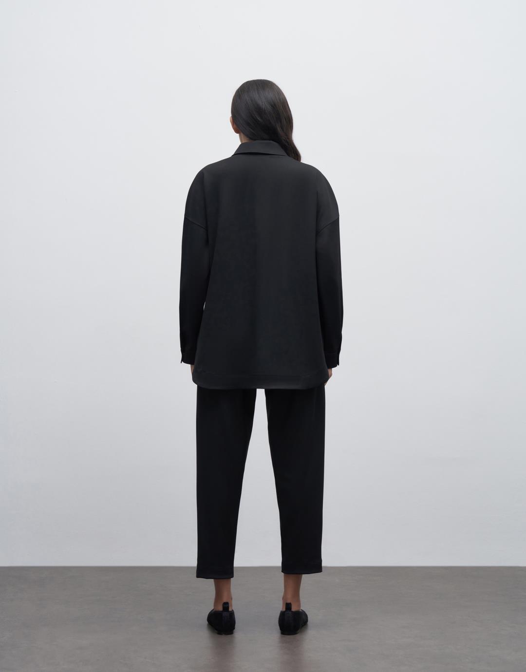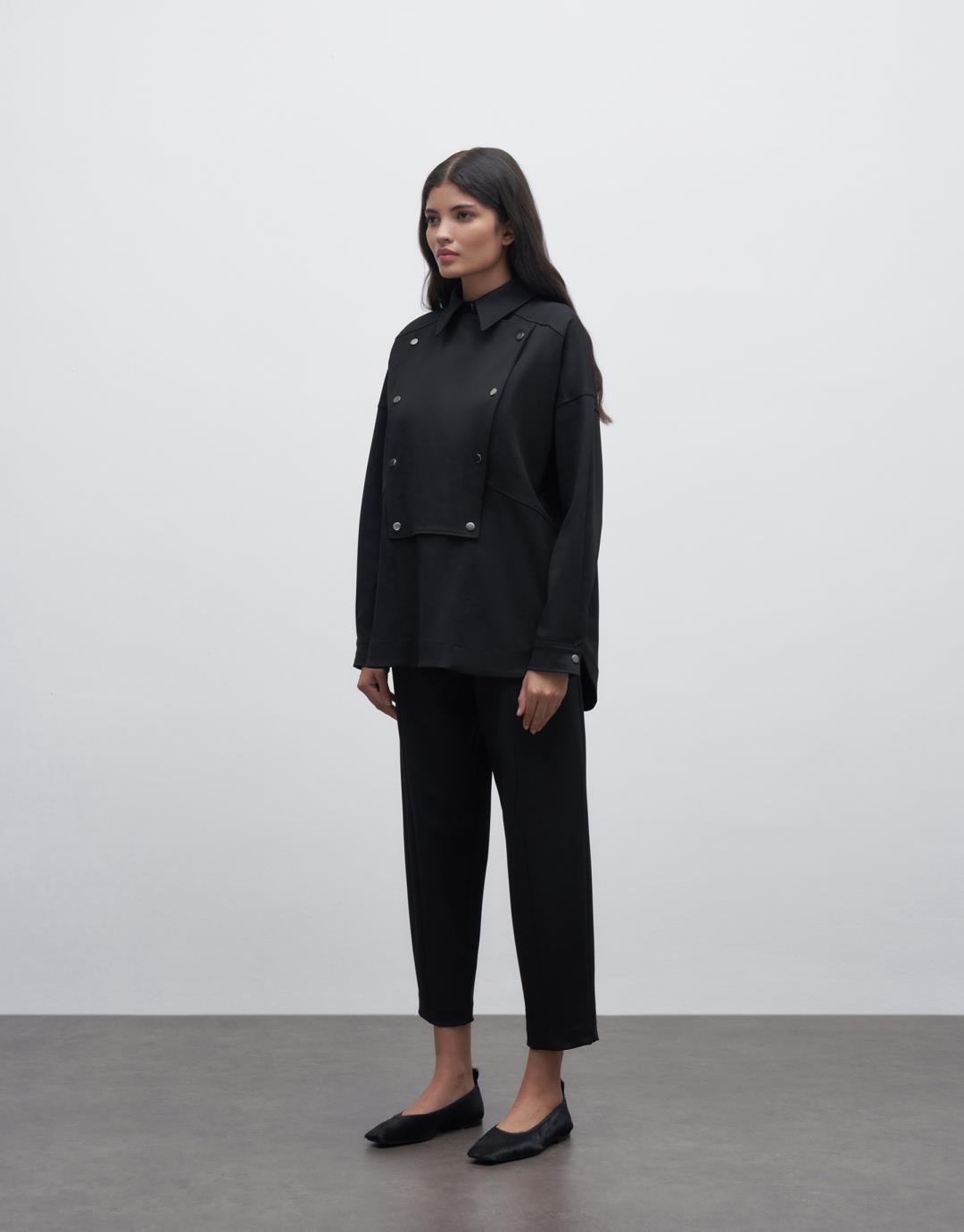 Fabric Content: 62%PES 33%VIS 5%EA Product Details: Front half placket and snap closure. Model Size: 36 Model Height: 1.74 The product on the mannequin is size S/M. Usage and Washing Instructions: Hand wash at maximum 30ºC. Bleach bleach is not used. Roller Cleaning is Not Made. 110ºc and iron on reverse. Wash inside out. Tetrachlorethylene Dry Cleaning. Dryer is not used.