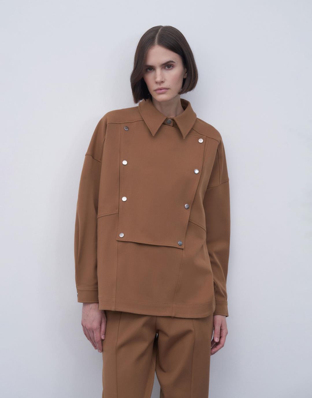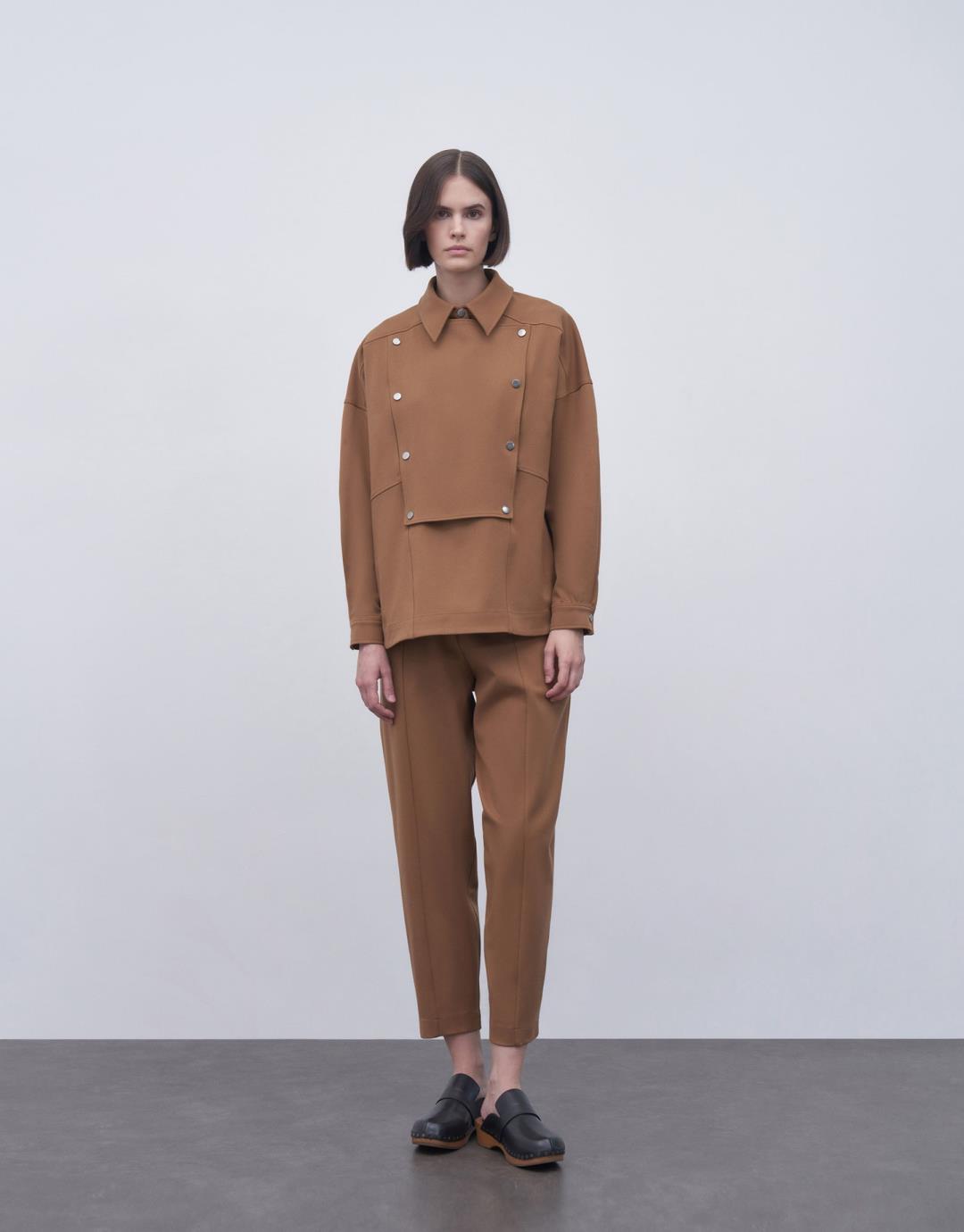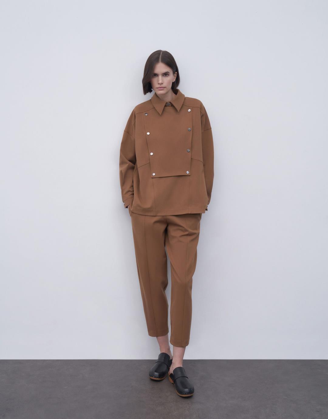 Fabric Content: 62%PES 33%VIS 5%EA Product Details: Front half placket and snap closure. Model Size: 36 Model Height: 1.74 The product on the mannequin is size S/M. Usage and Washing Instructions: Hand wash at maximum 30ºC. Bleach bleach is not used. Roller Cleaning is Not Made. 110ºc and iron on reverse. Wash inside out. Tetrachlorethylene Dry Cleaning. Dryer is not used.