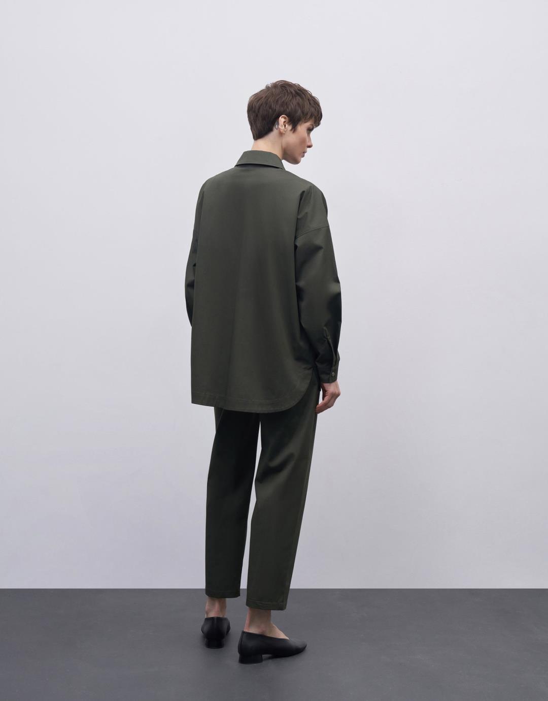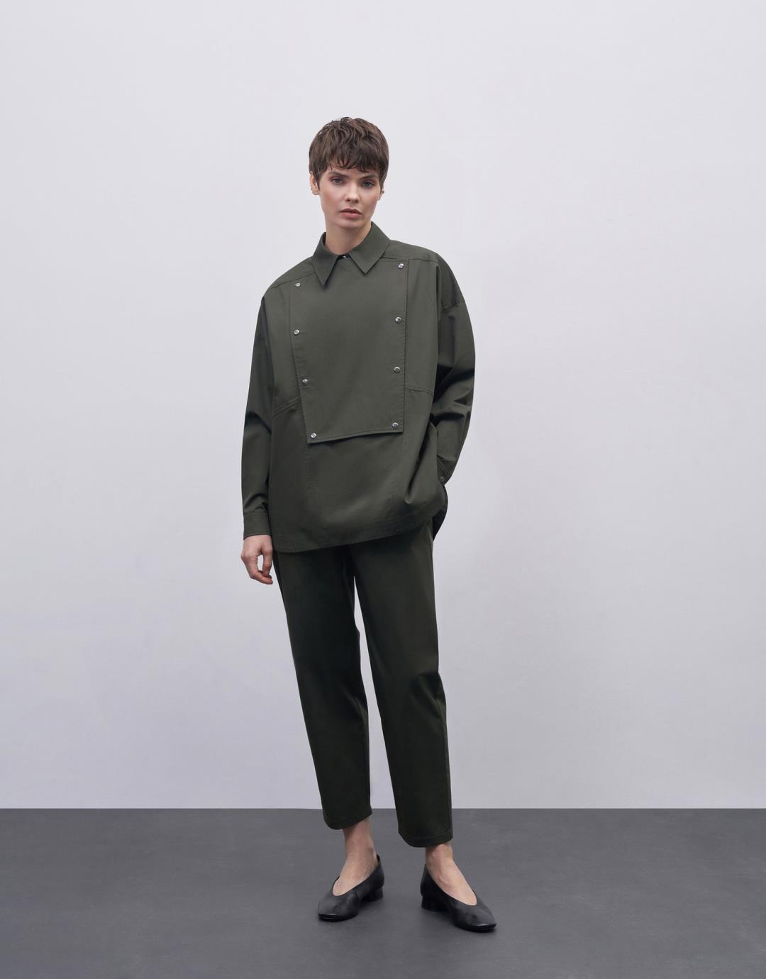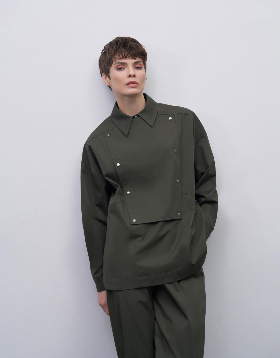 Fabric Content: 100% COTTON Product Details: Front half placket and snap closure. The cuffs should snap closed. Model Size: 36 Model Height: 1.78 The product on the model is size 36. Usage and Washing Instructions: Hand wash at maximum 30ºC. Bleach bleach is not used. Roller Cleaning is Not Made. Wash inside out. Tetrachlorethylene Dry Cleaning. Dryer is not used. It is a sensitive product. Do not use with metal accessories.