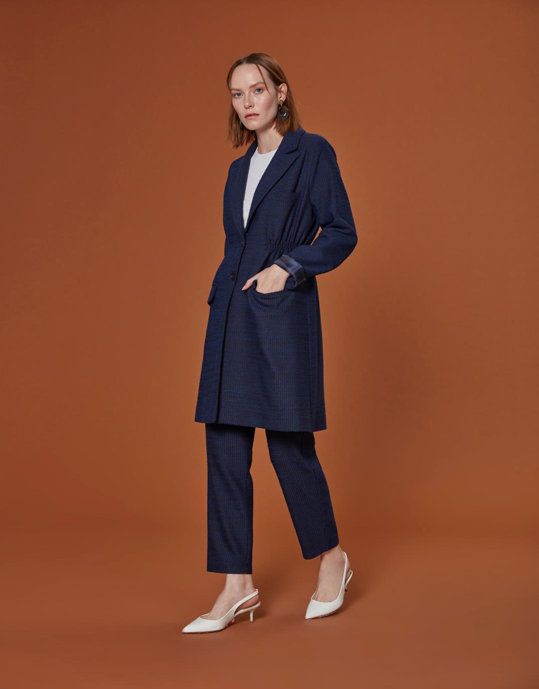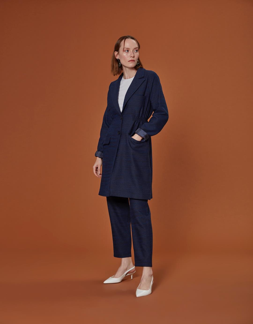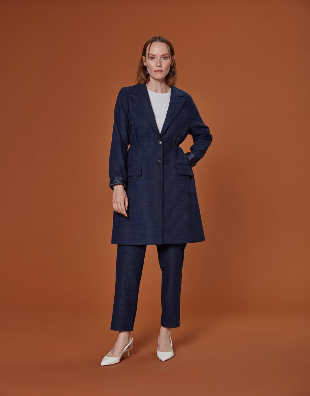 Carla Suit with Pleated Waist Sport Jacket – Navy Blue – 1084-2