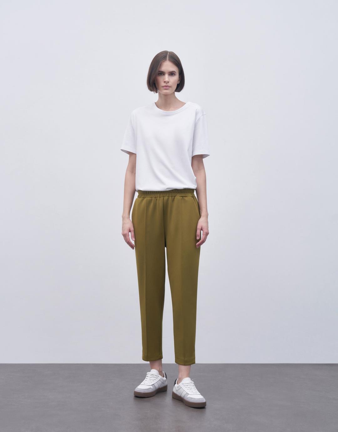 Fabric Content: 92%PES 8%EA Product Details: Elastic waist. Carrot form. Slit at the hem. With pocket. Model Size: 36 Model Height: 1.78 The product on the model is size 36. Usage and Washing Instructions: Hand wash at maximum 30ºC. Bleach bleach is not used. Roller Cleaning is Not Made. Wash inside out. Tetrachlorethylene Dry Cleaning. Dryer is not used. It is a sensitive product. Do not use with metal accessories.