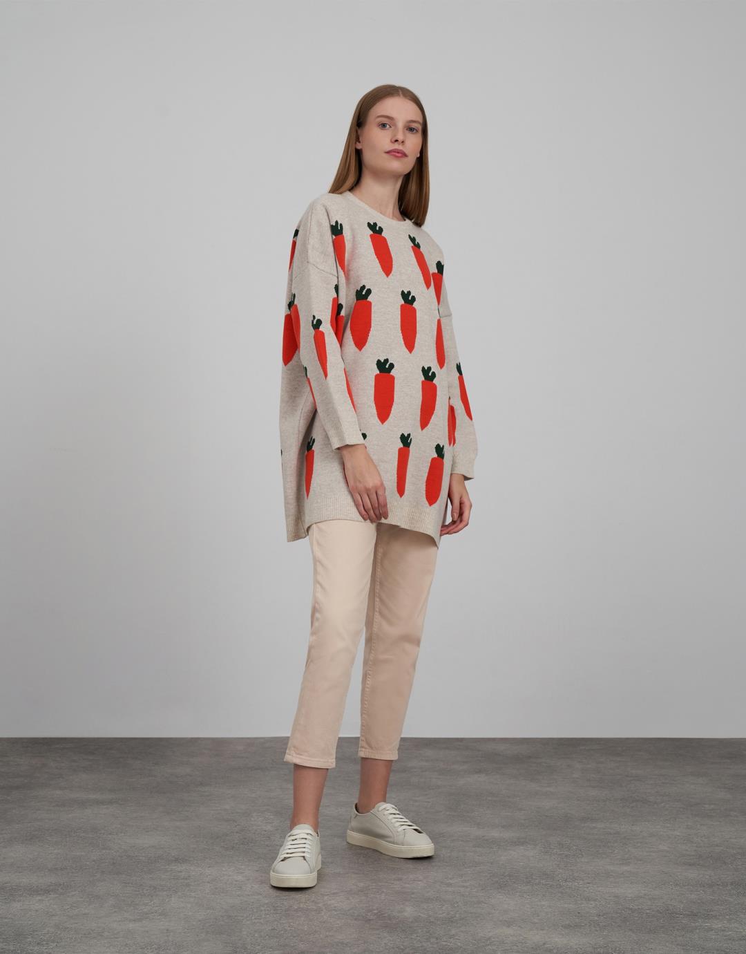 Fabric Content: 50 % acrylic 50 % cotton Fabric Info: Knitted Sleeve Detail Long sleeve Product Details: Crew neck patterned Mould Information: Loose Model Size : 36 Model Height : 1.78 The product on the Model is standard size. Usage and Washing Instructions: Recommended Dry cleaning.