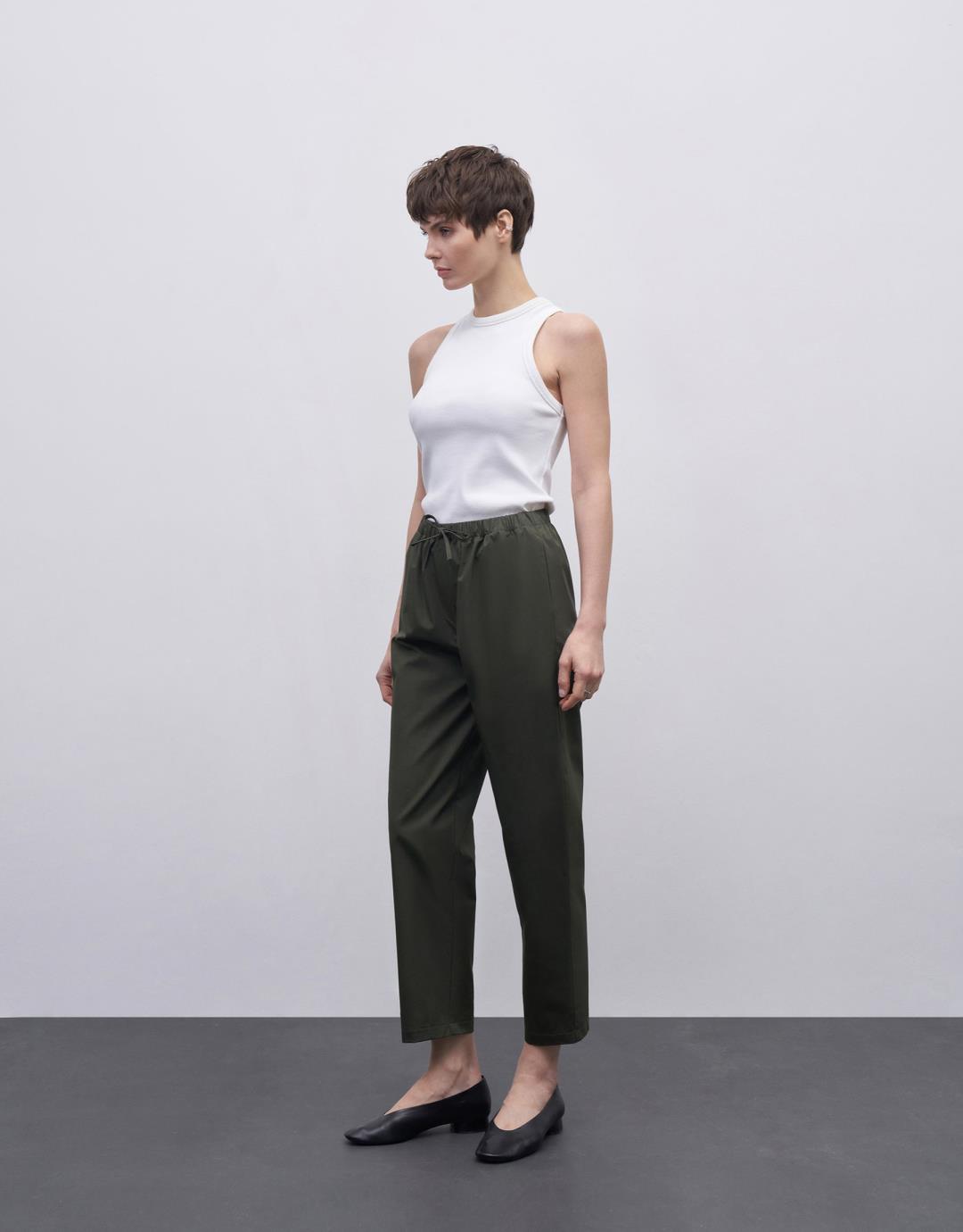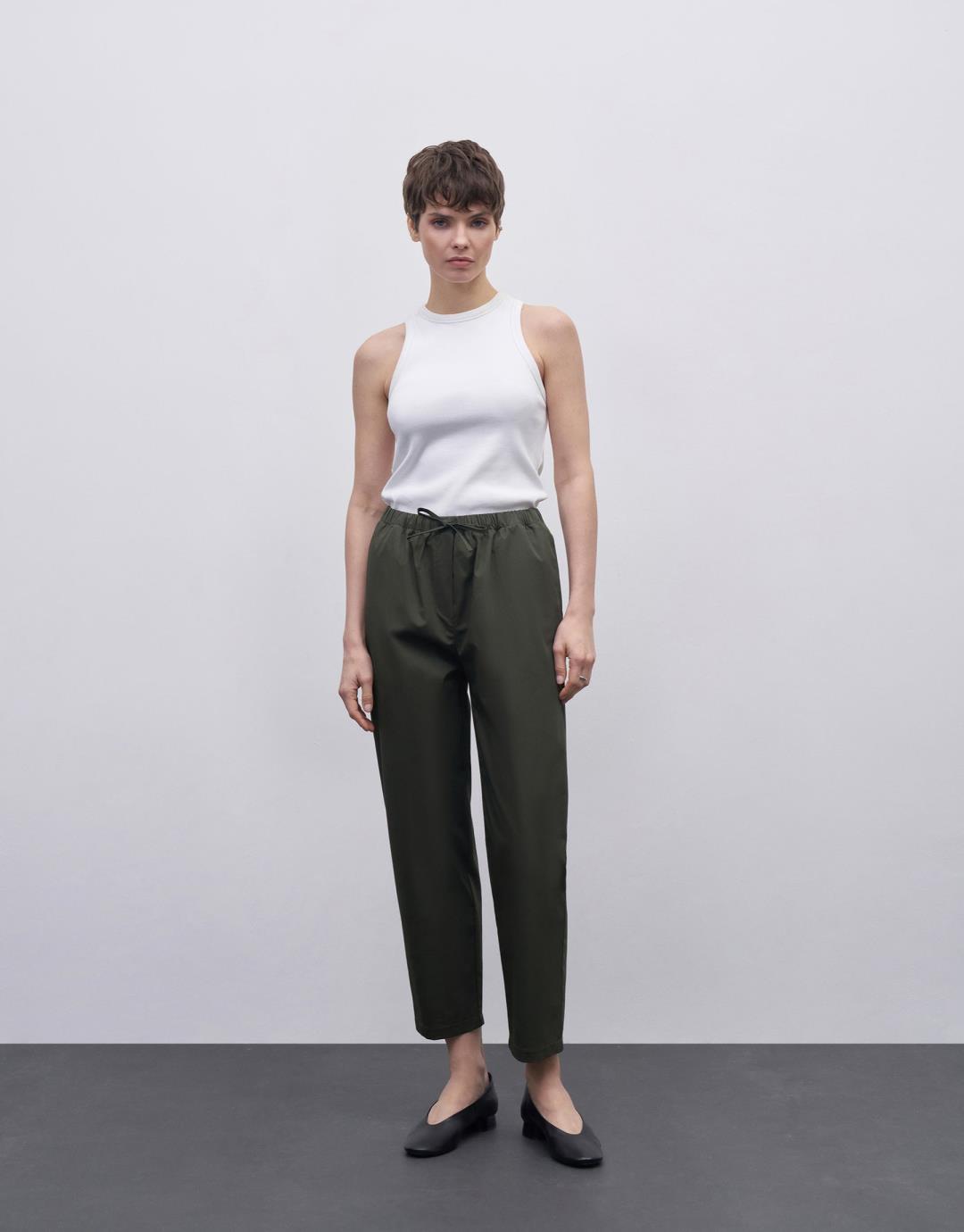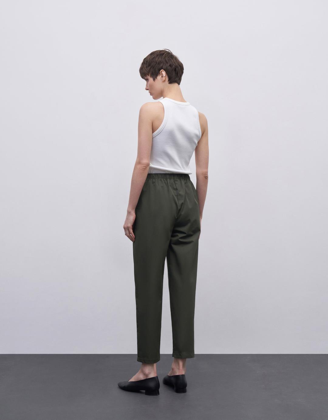 Carrot Trousers with Elastic Waist – Khaki – 24157