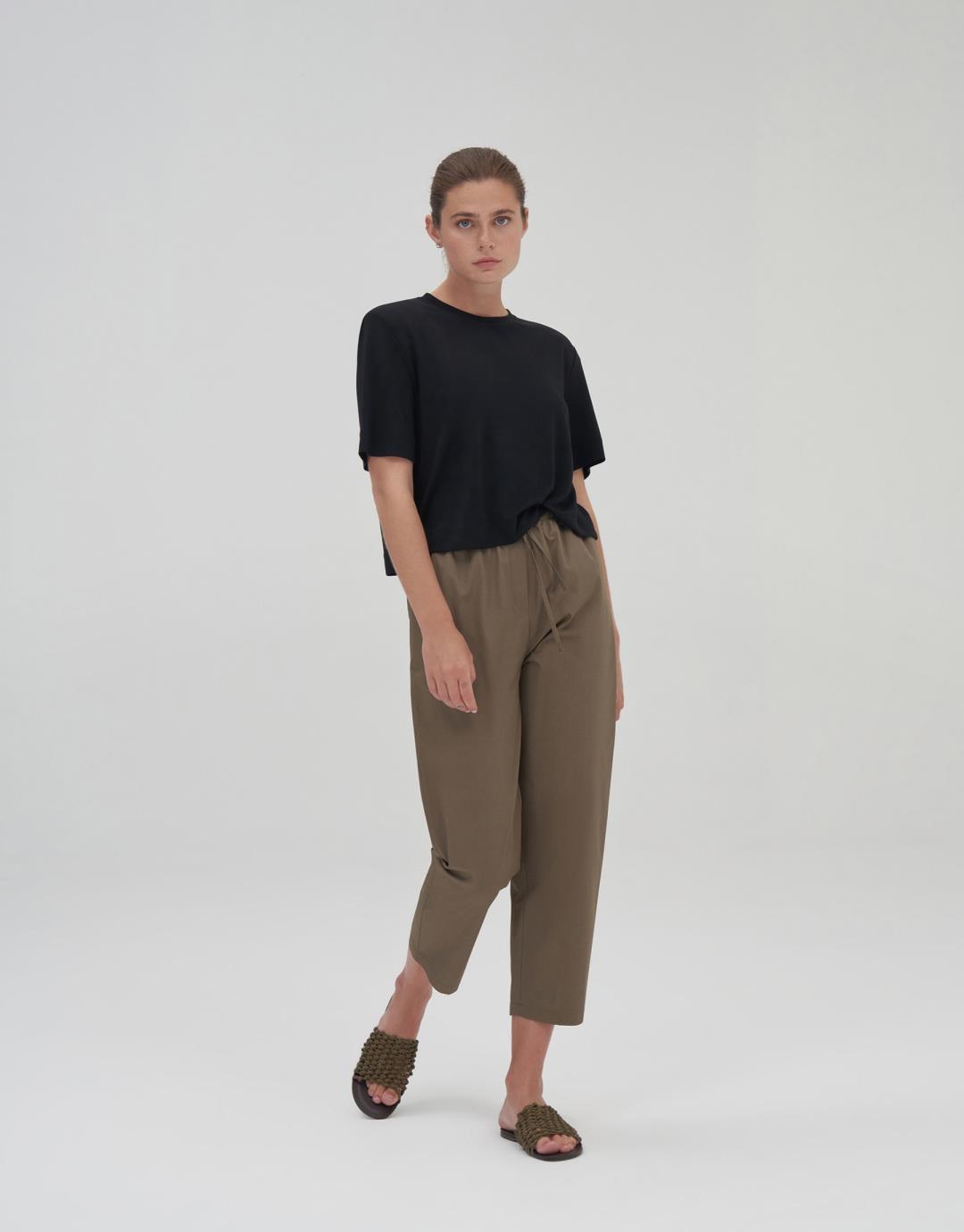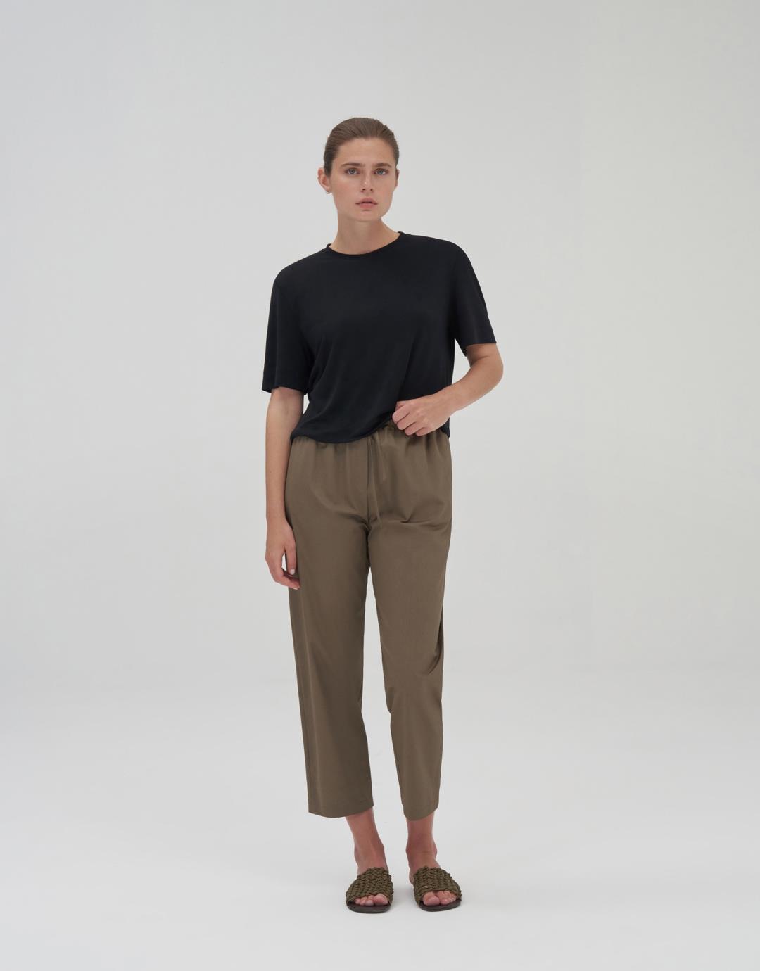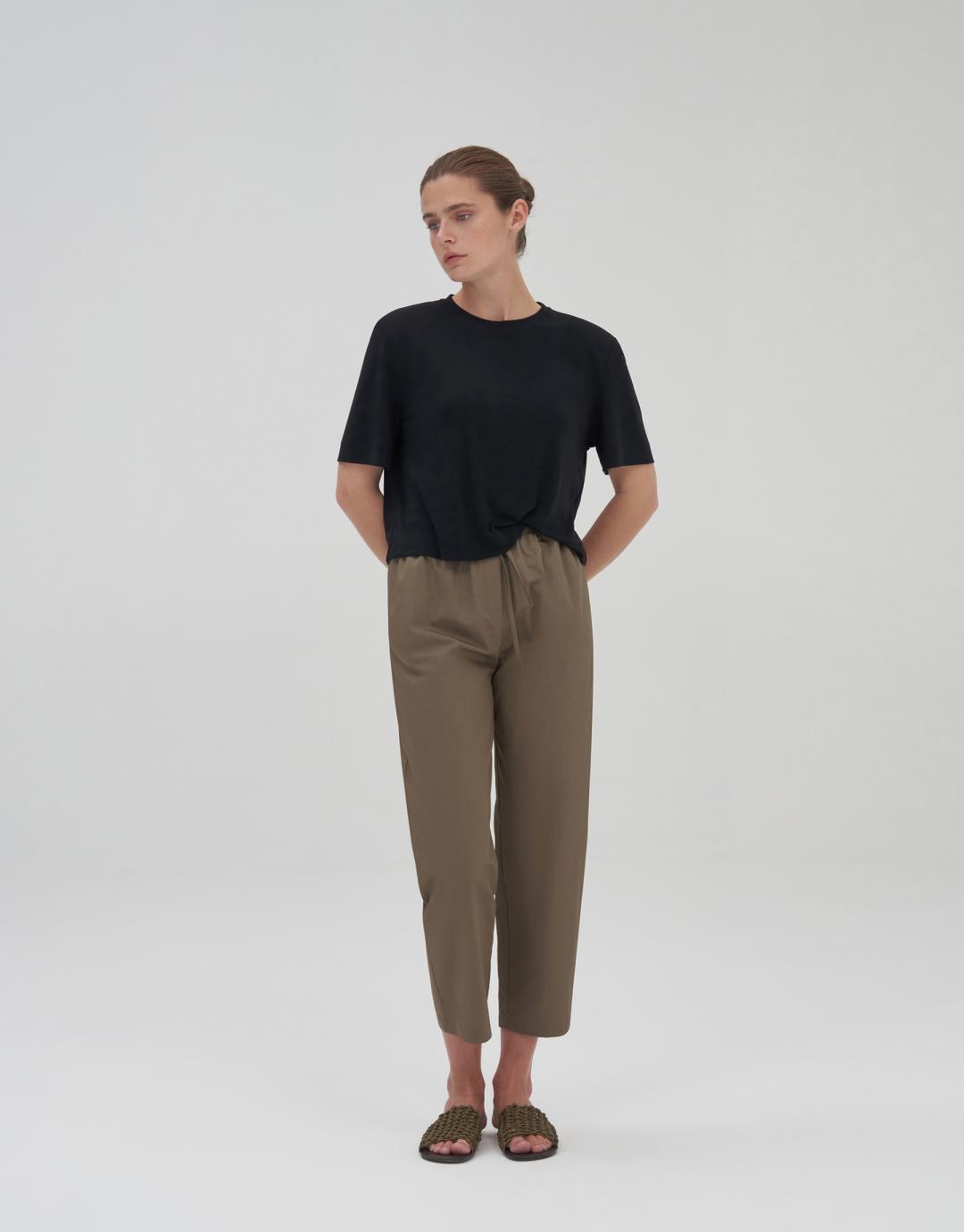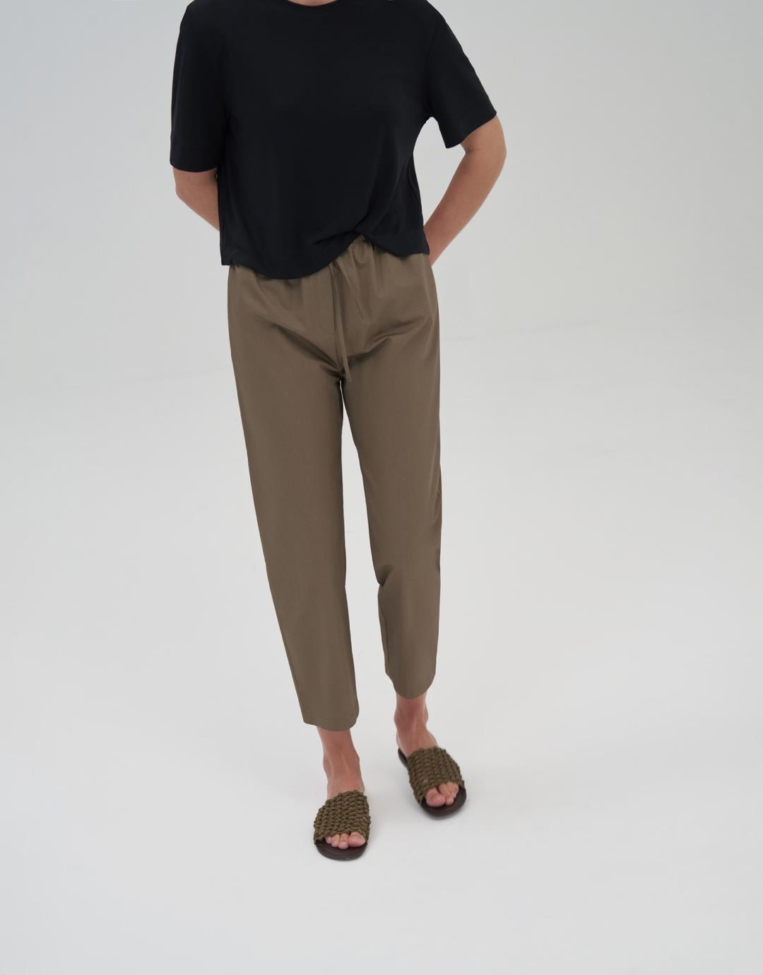Carrot Trousers with Elastic Waist – Light Khaki – 24157
