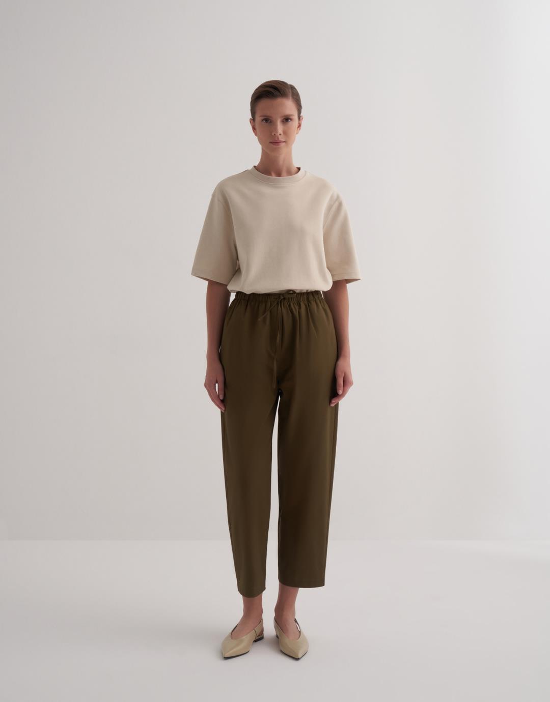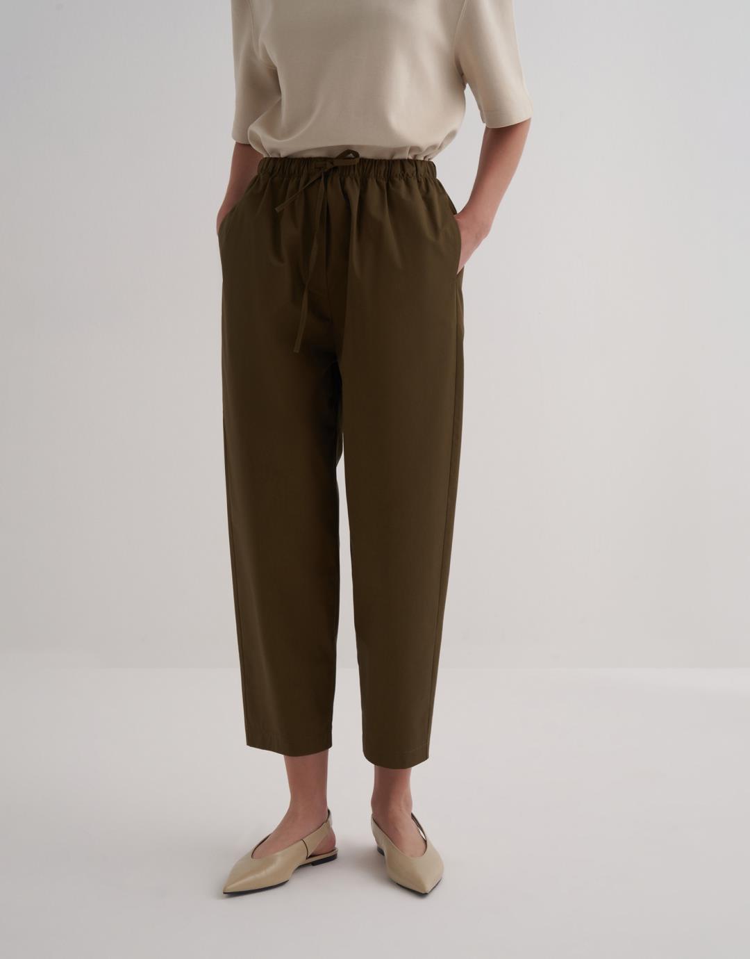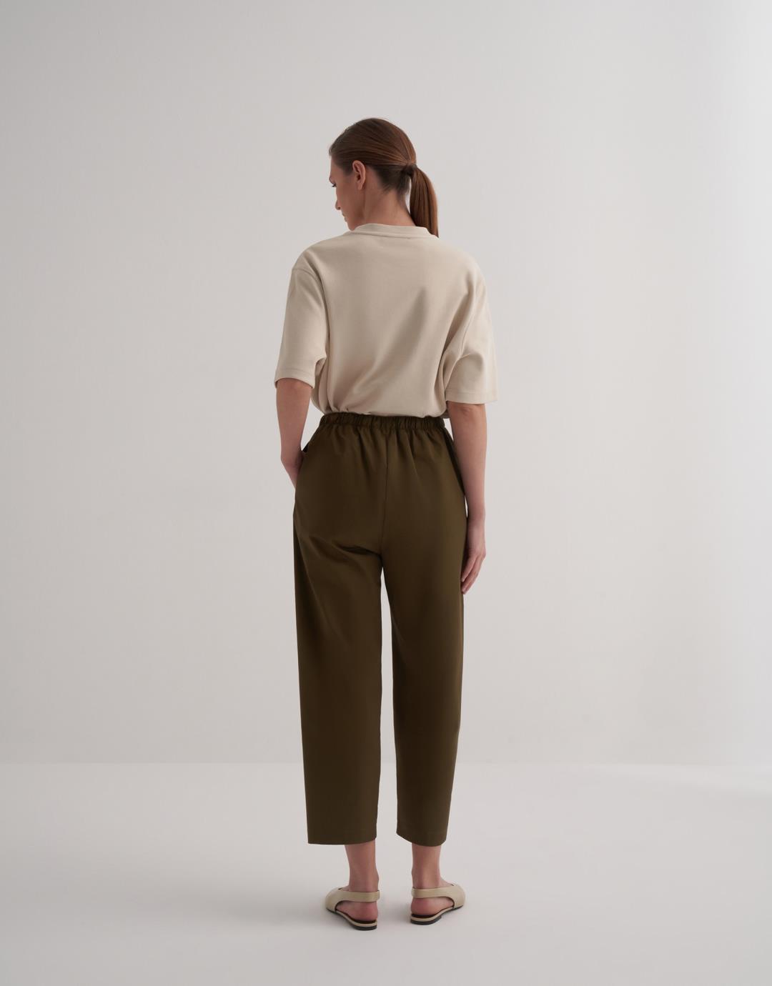 Carrot Trousers with Elastic Waist – Olive Green – 24157