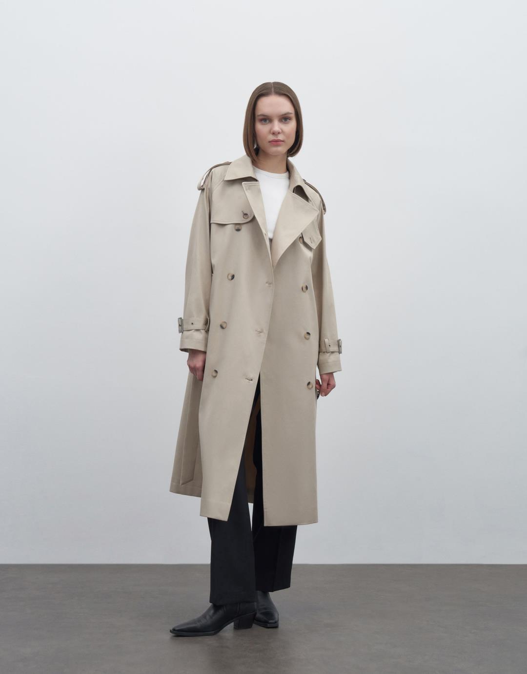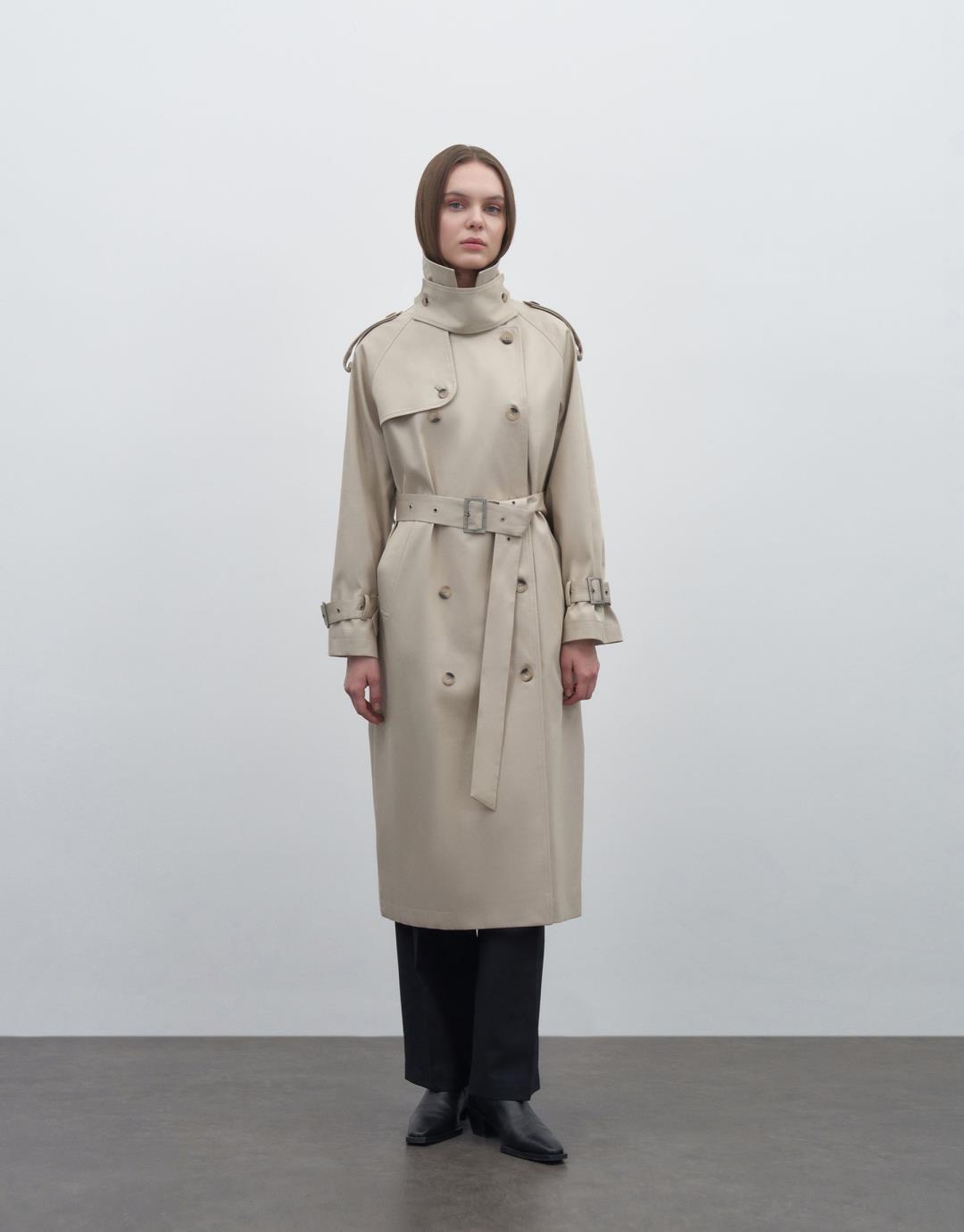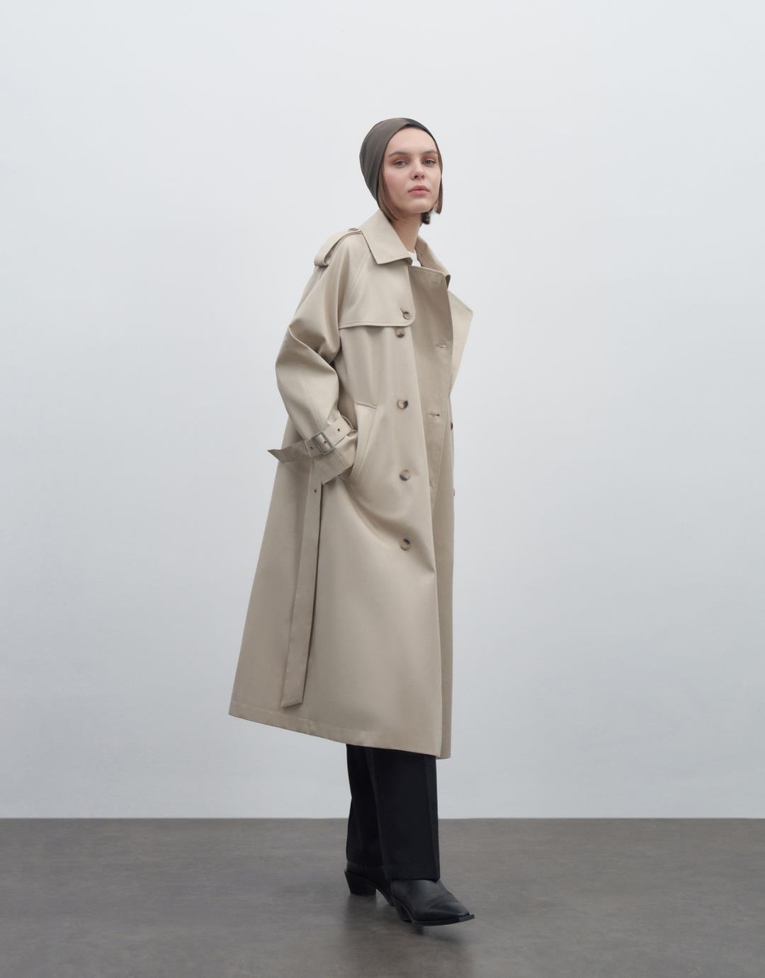 Fabric Content: 98% COT 2% EA Product Details: Collar detail. Raglan sleeve. Wrap model. Collared. Long sleeve. Sleeves with belt detail. Two side pockets. Adjustable belt. Slits. Lined. Model Size: 36 Model Height: 1.78 The product on the model is size 36. Usage and Washing Instructions: – Iron at medium heat. – Tumble dry. – Bleach is not used. – Dry cleanable.
