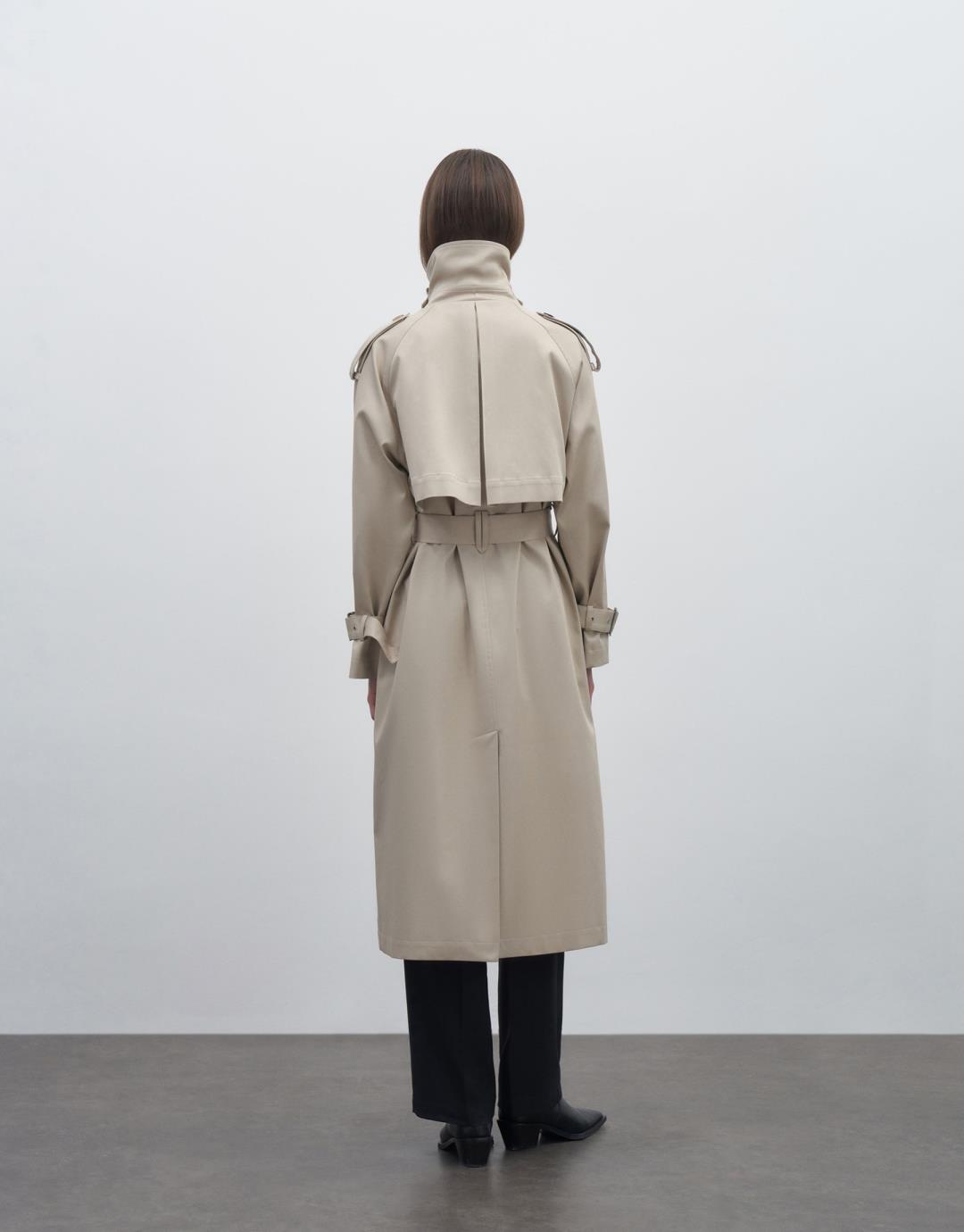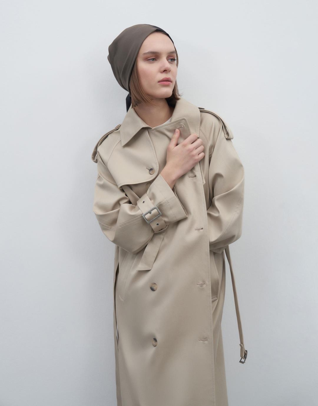 Fabric Content: 98% COT 2% EA Product Details: Collar detail. Raglan sleeve. Wrap model. Collared. Long sleeve. Sleeves with belt detail. Two side pockets. Adjustable belt. Slits. Lined. Model Size: 36 Model Height: 1.78 The product on the model is size 36. Usage and Washing Instructions: – Iron at medium heat. – Tumble dry. – Bleach is not used. – Dry cleanable.