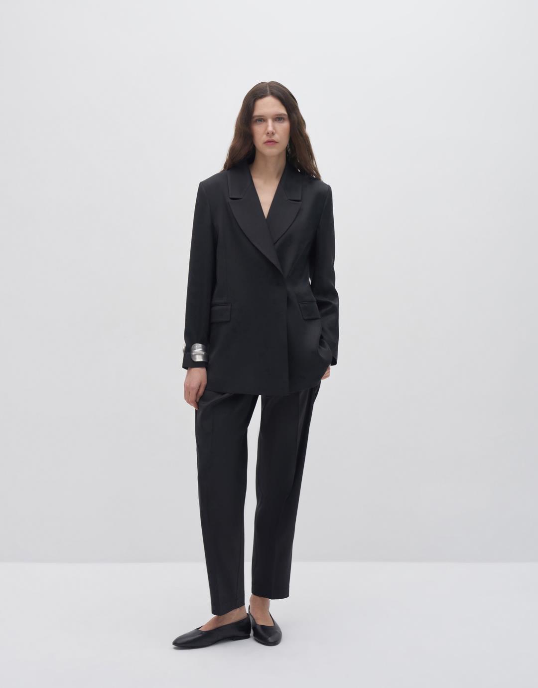 Fabric Content: 97% AC 3% EA Product Details: Jacket: Double-breasted closure. Fit. Lined. Two pockets with flaps. Front metal clasp closure. Trousers: Front zipper and button closure. Pleated detail.Two side pockets. Two welt back pockets. Model Size: 36 Model Height: 1.72 The product on the model is size 36. Usage and Washing Instructions: Tetrachlorethylene Dry Cleaning. Roller cleaning is not done. Tumble drying is not done. Bleach bleach is not used.