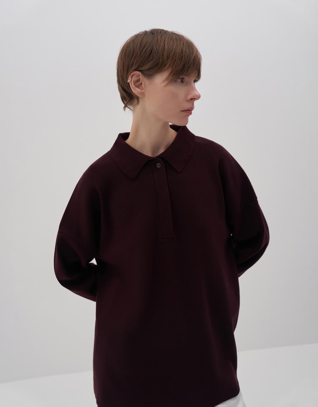 Cotton Polo Collar Sweater – Damson Color – 14154