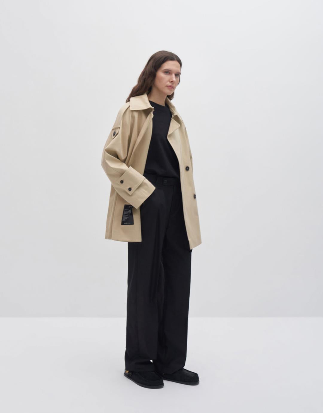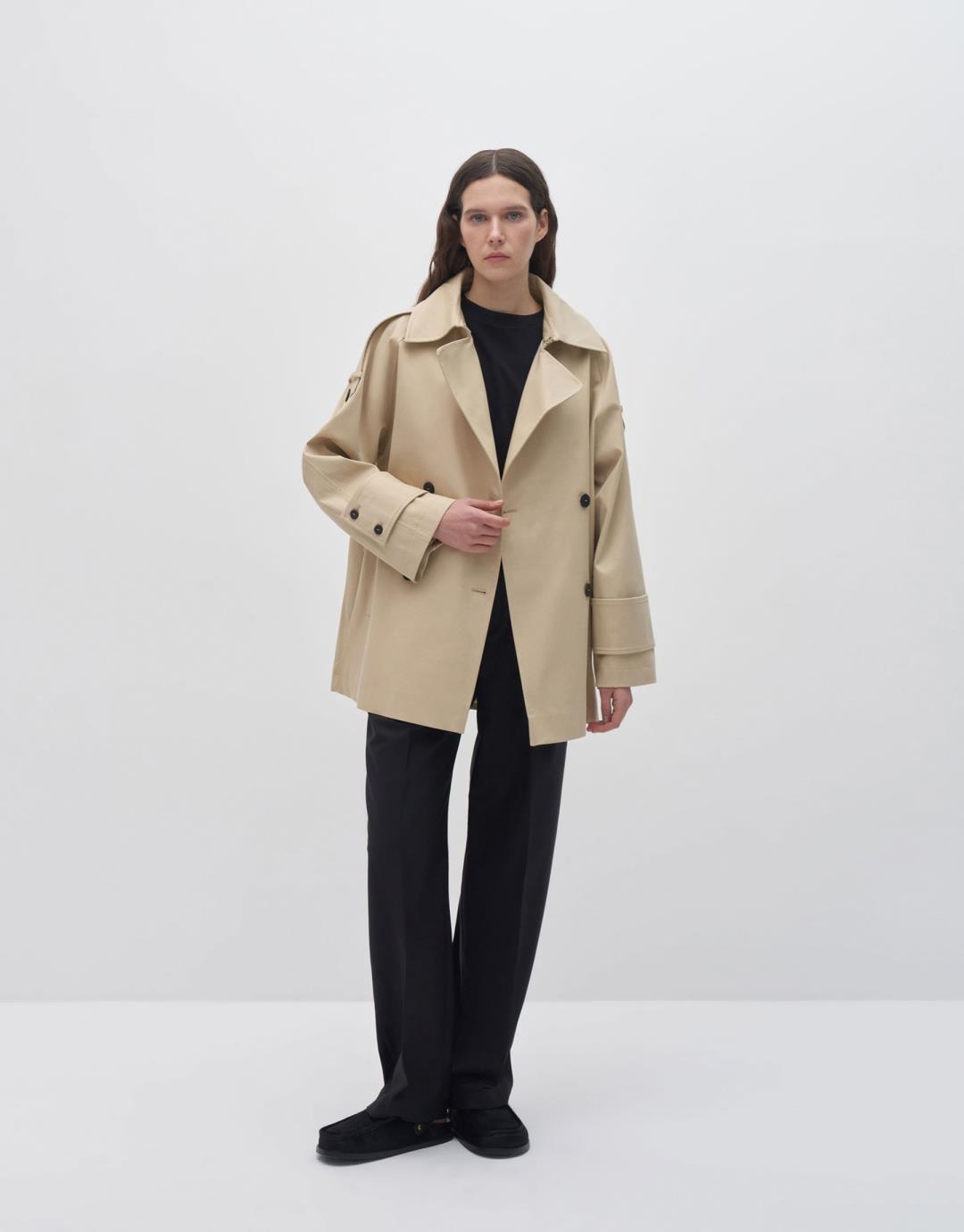 Fabric Content: 97%COT 3%EA Product Details : Lined. Button closure at front. Model Size: 36 Model Height: 1.78 The product on the model is size 38. Usage and Washing Instructions: Tetrachlorethylene Dry Cleaning. Roller cleaning is not done. Tumble drying is not done. Do not use bleach or bleach