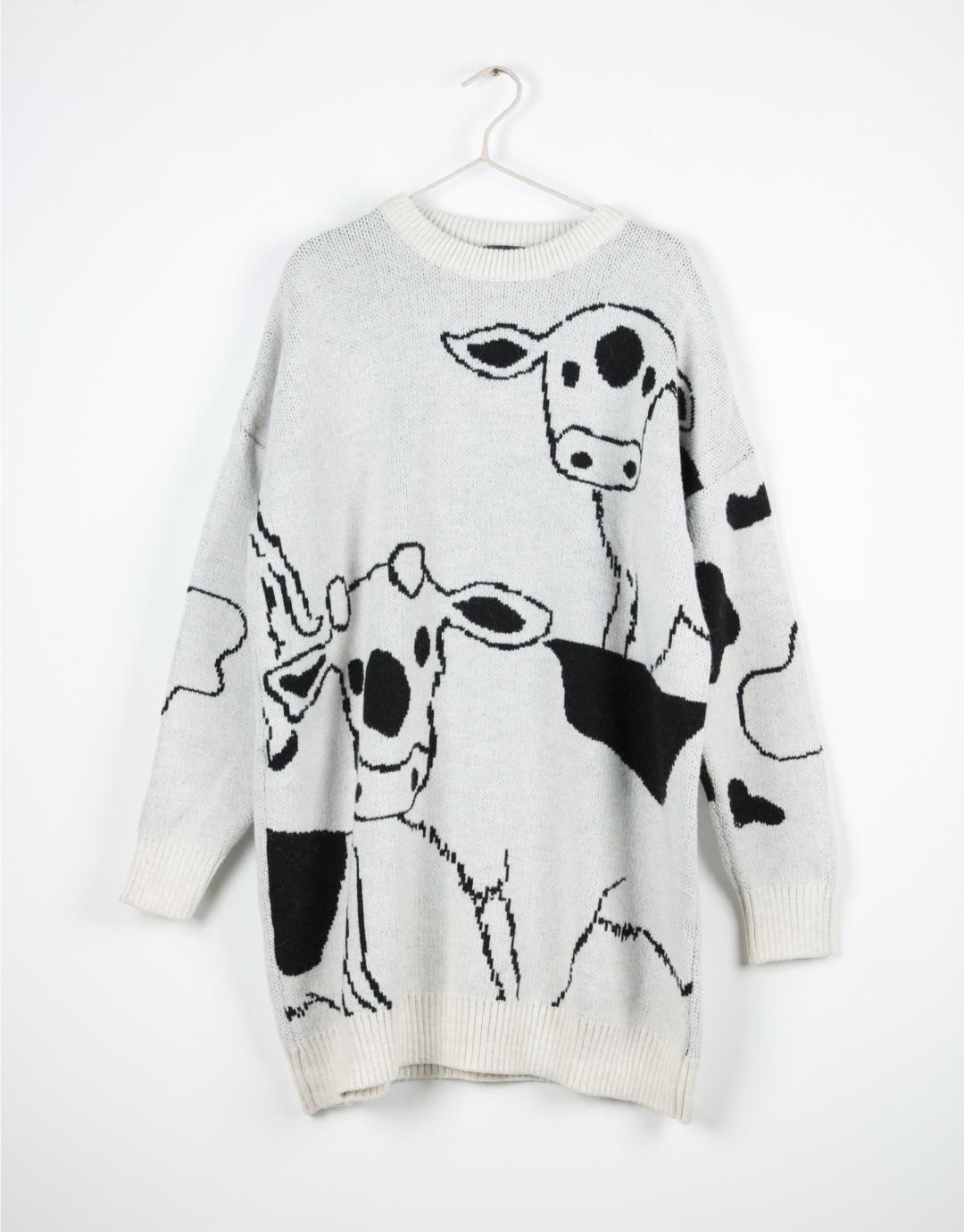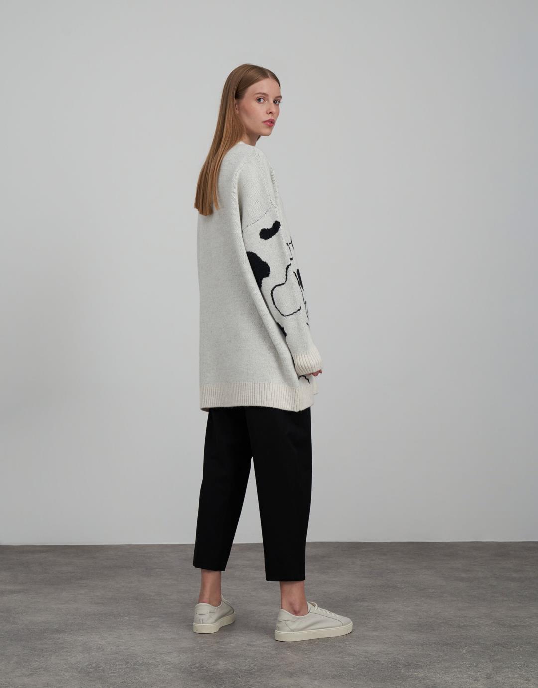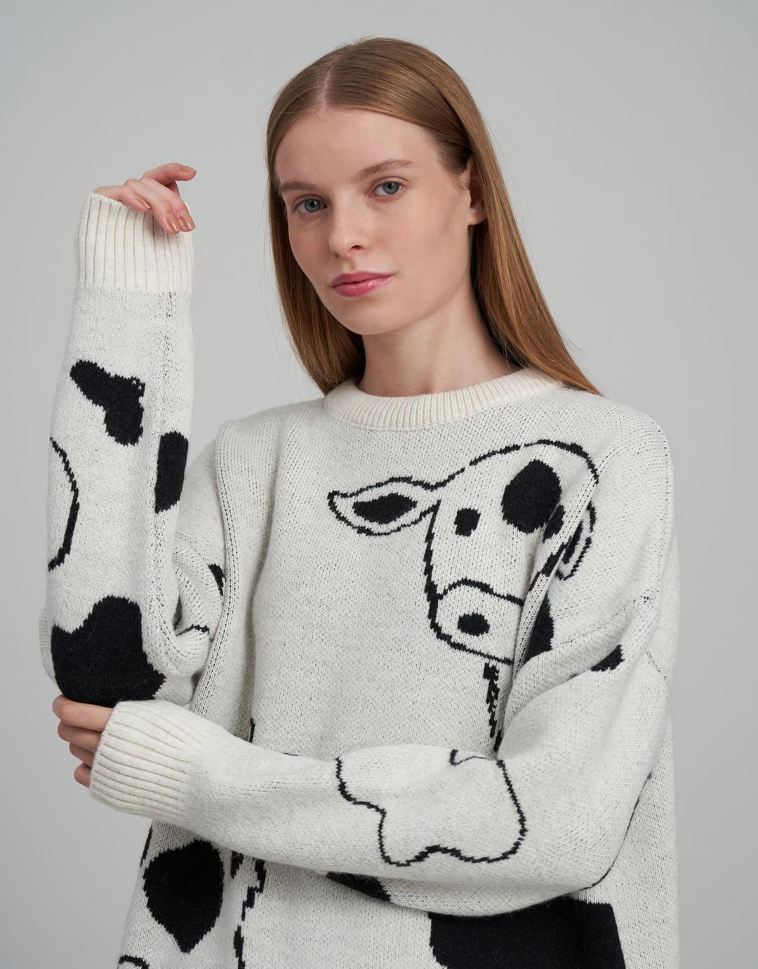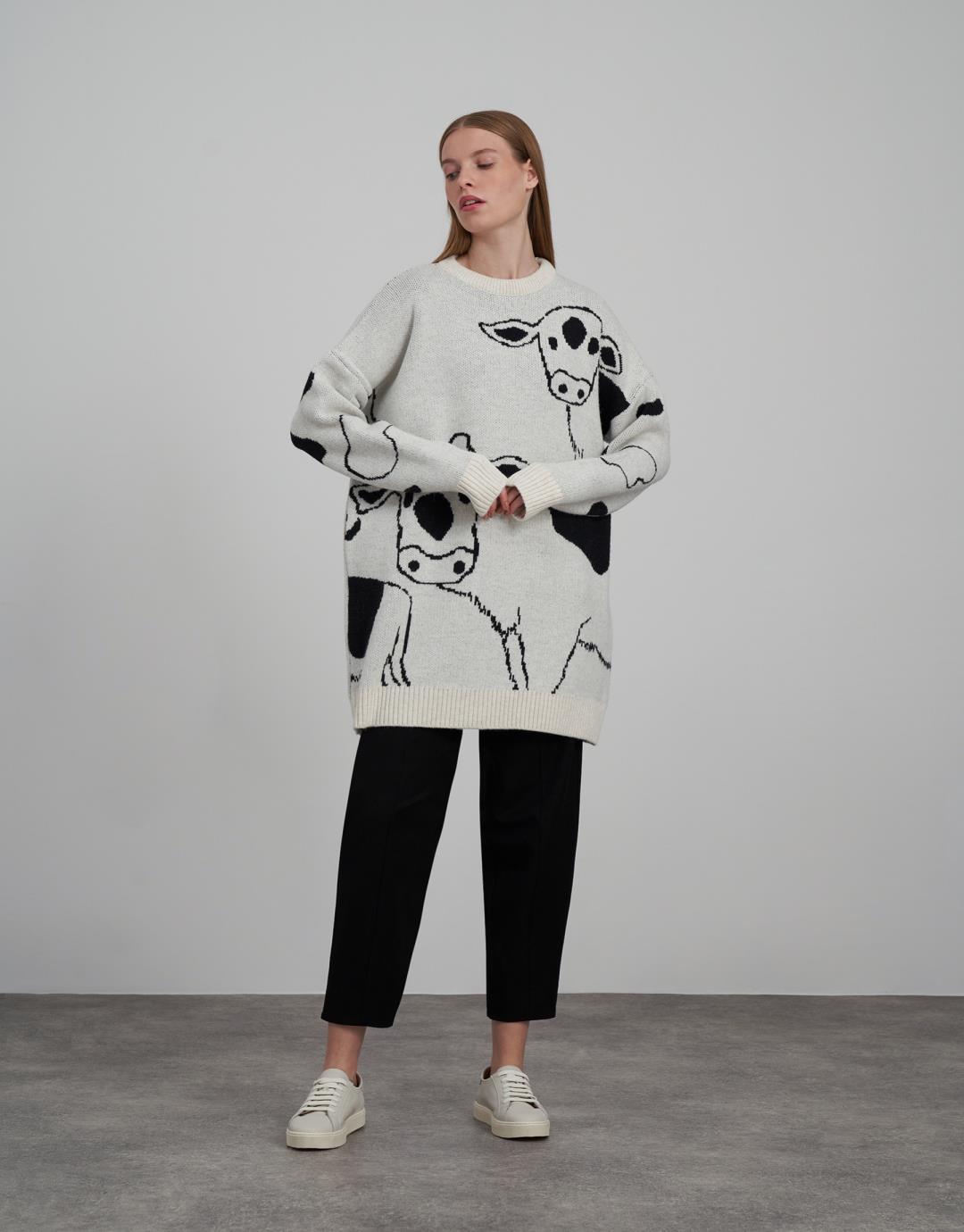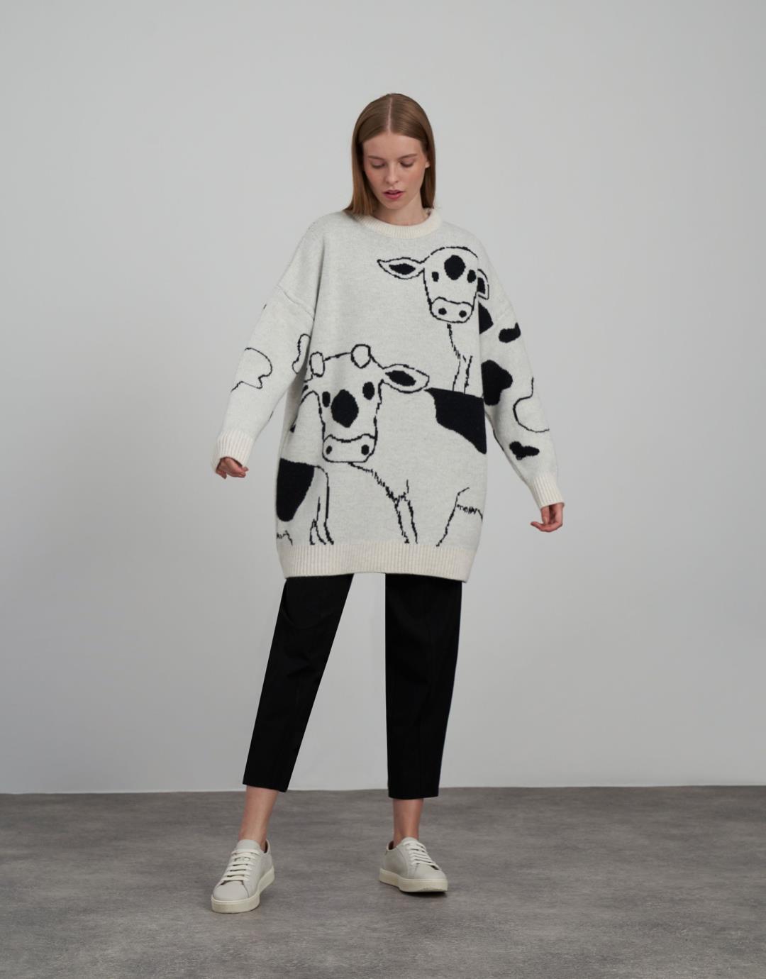 Fabric Content: 85% acrylic 6% polyamide 9% elite Fabric Info: Knitted Sleeve Detail Long sleeve Product Details: Crew neck, cow print Mould Information: Loose Model Size : 36 Model Height : 1.78 The product on the Model is standard size. Usage and Washing Instructions : Recommended Dry cleaning.