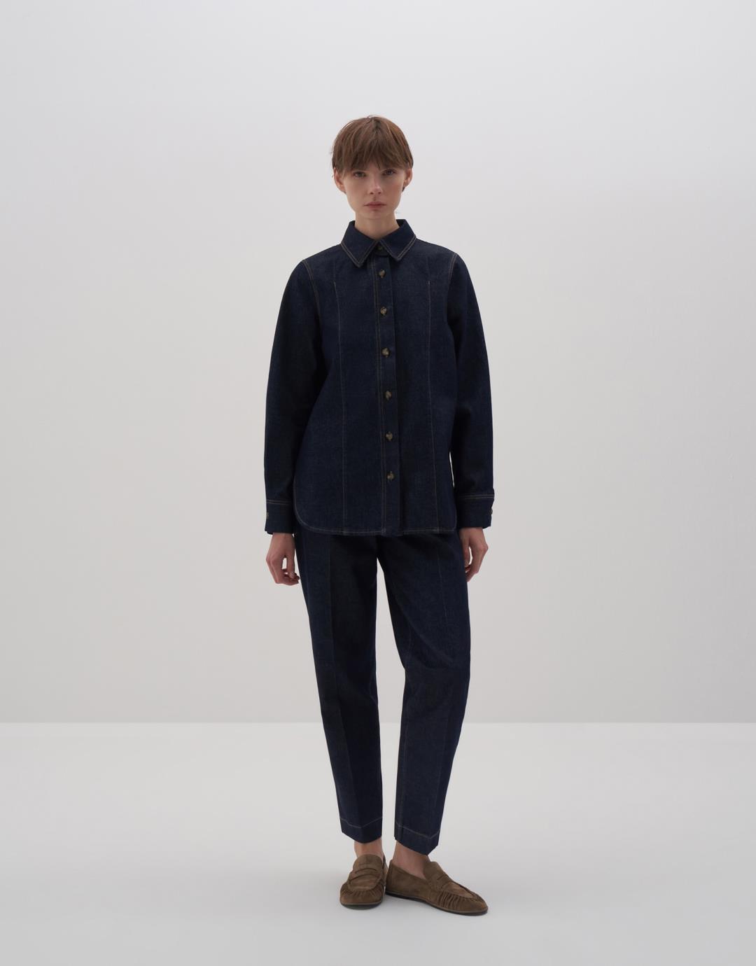 Fabric Content: 100% COTTON Product Details: Shirt collar. Button closure in front. Button closure cuff long sleeves. Contrast colored stitching detail. Model Size: 36 Model Height: 1.78 The product on the model is Size 36. Usage and Washing Instructions: Tetrachloroethylene Dry Cleaning. Roller cleaning is not allowed. Tumble drying is not allowed. Bleach and whitener is not used.
