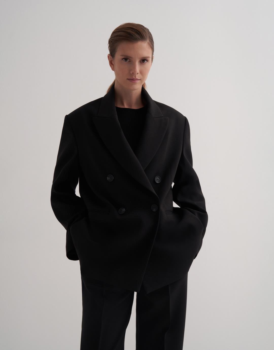 Fabric Content: 77% PES 17% VI 6% EA Product Details: Folded collar. Padded. Two side pockets with piping. Double-breasted button closure. Double back vent. Model Body: 36 Model Height: 1.78 The product on the model is a size 36. Usage and Washing Instructions: Tetrachloroethylene Dry Cleaning. Roller cleaning is not allowed. Tumble drying is not allowed. Bleach and bleach are not used.