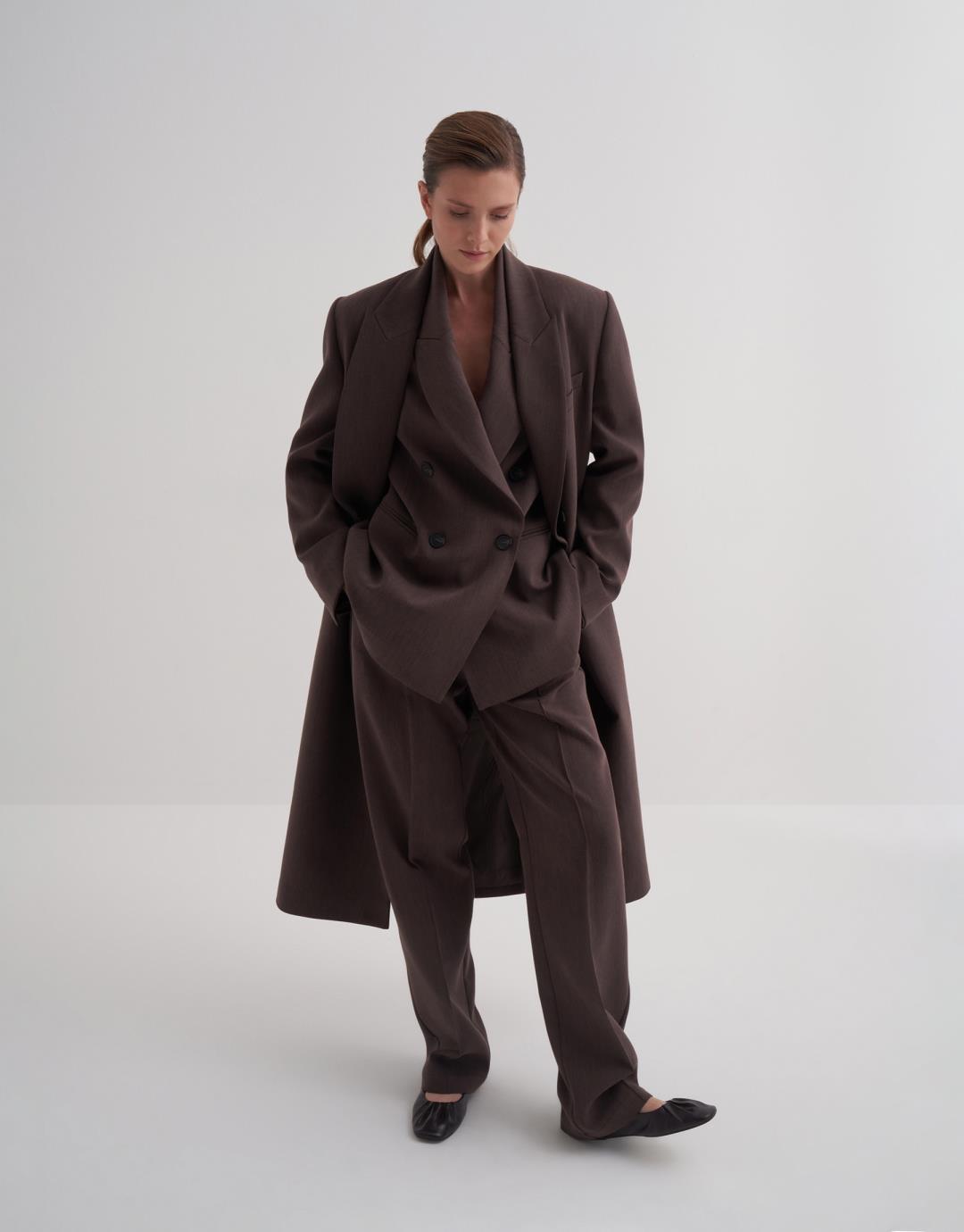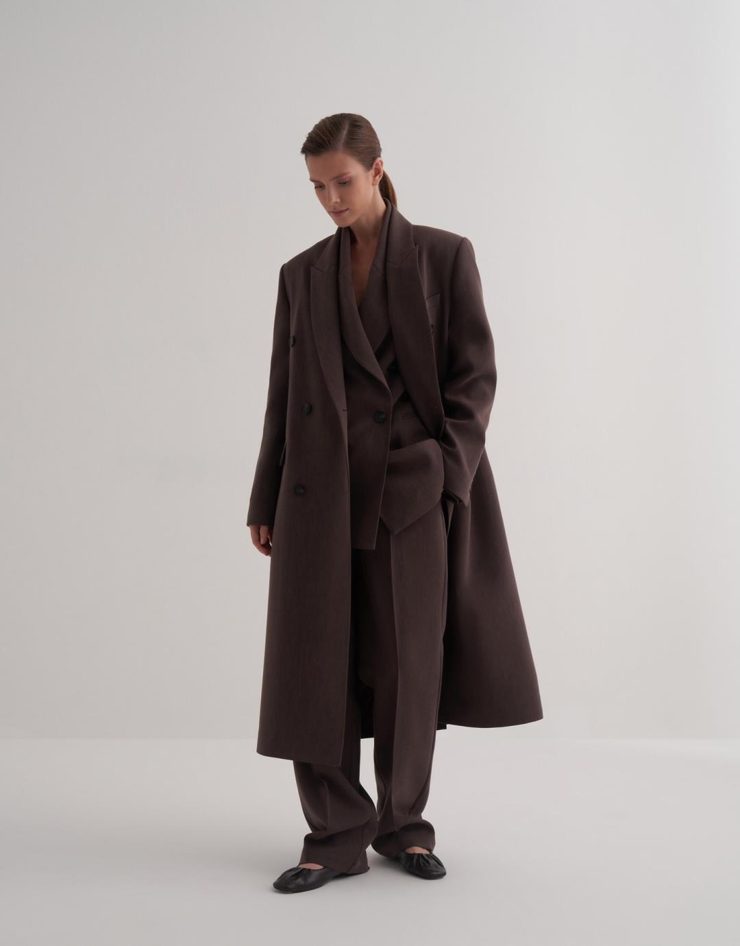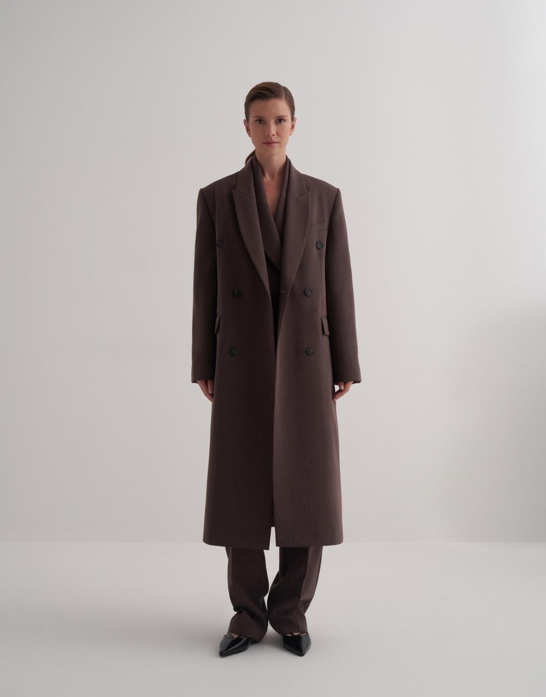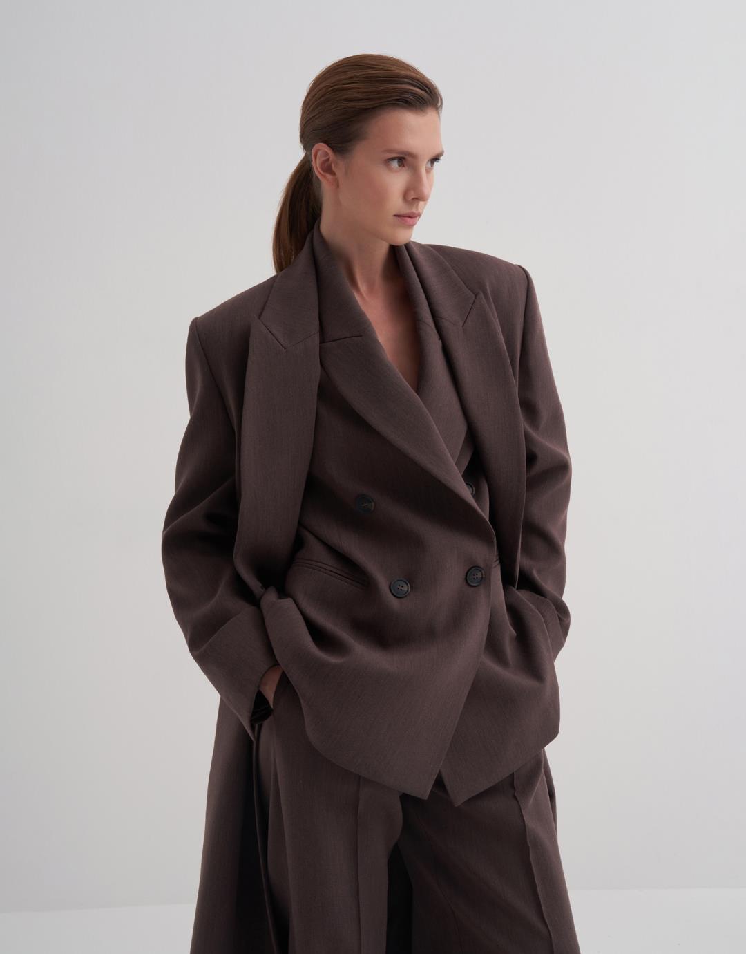 Double Breasted Long Blazer – Brown – 25104