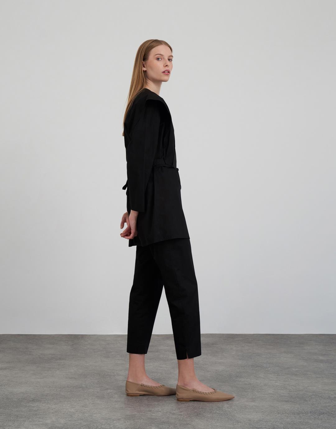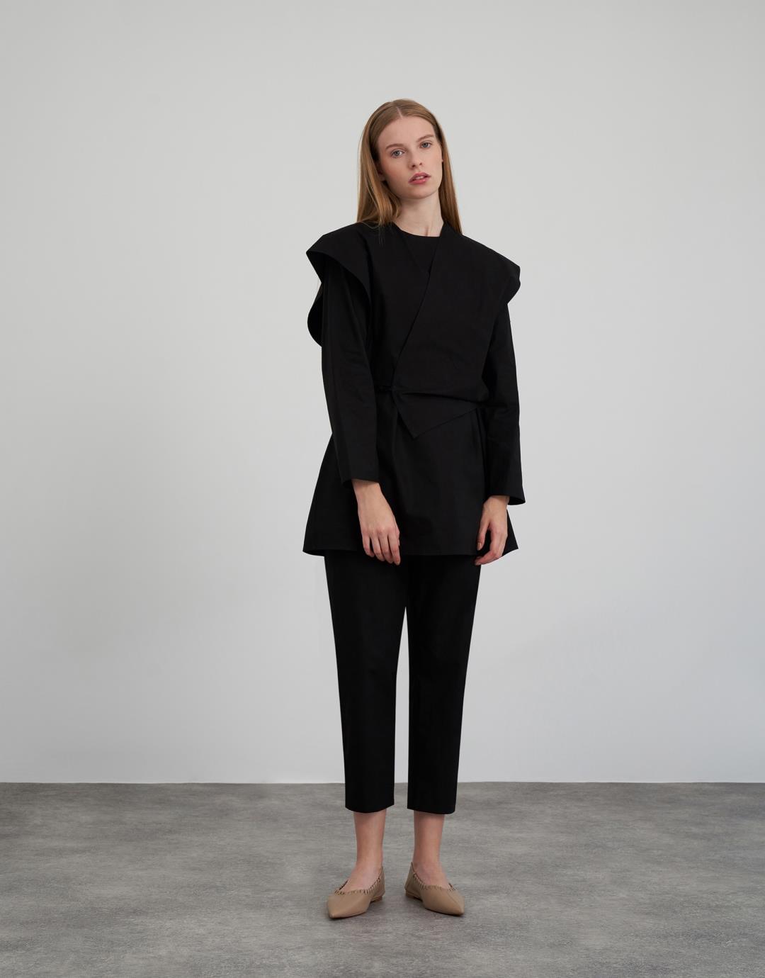 Fabric Content: 100% cotton Fabric Information: Woven Zip Info: Trousers with side zip Arm Detail Long Product Details: The upper garment is 2 separate pieces. The trousers are elasticated at the back and belted at the front. Mould Details: Loose Model Size : 36 Model Height : 1.78 The product on the Model is size 36. Usage and Washing Instructions : Recommended Dry cleaning.