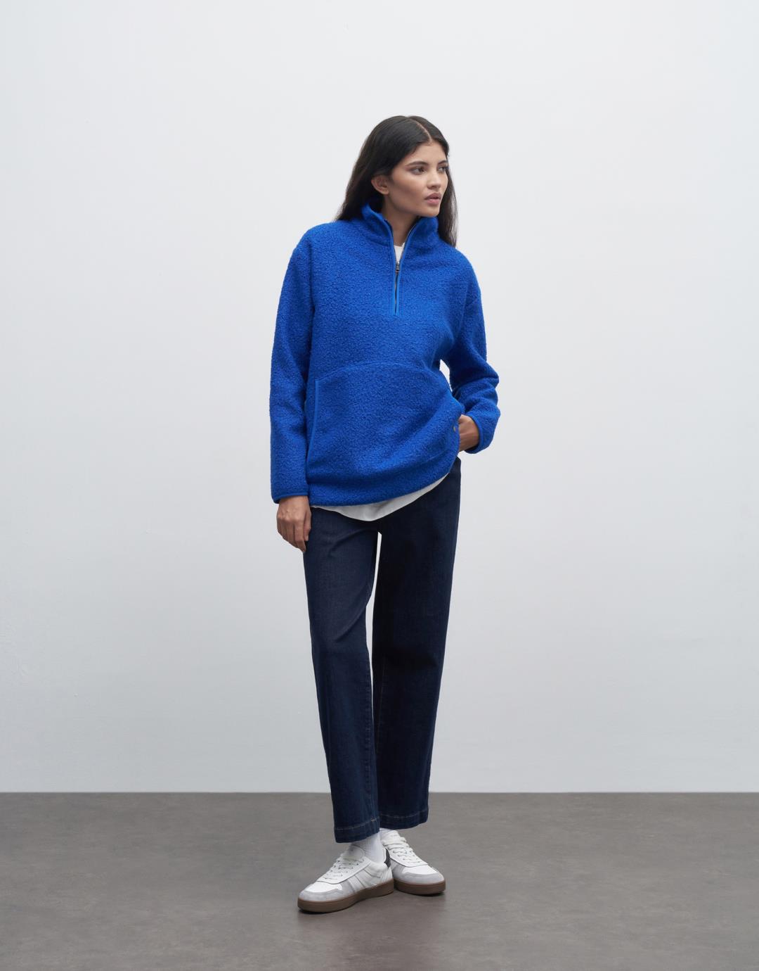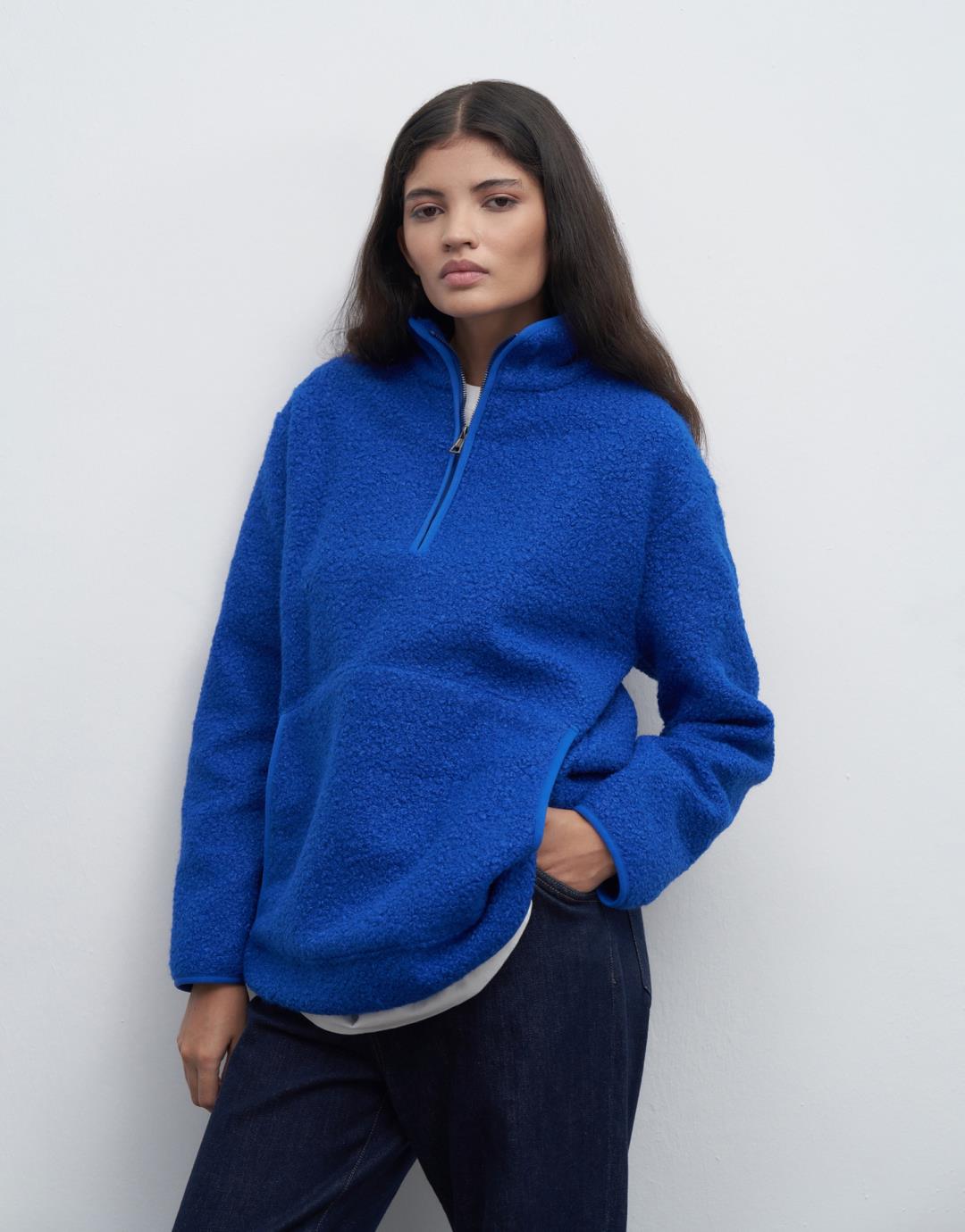 Fabric Content: 100% PES Product Details: Front half placket and zipper closure. Kangaroo pocket. Model Size: 36 Model Height: 1.78 The product on the model is size 36. Usage and Washing Instructions: Tetrachlorethylene Dry Cleaning. It is not washed. Roller cleaning is not possible. Tumble drying is not done. Bleach is not used.