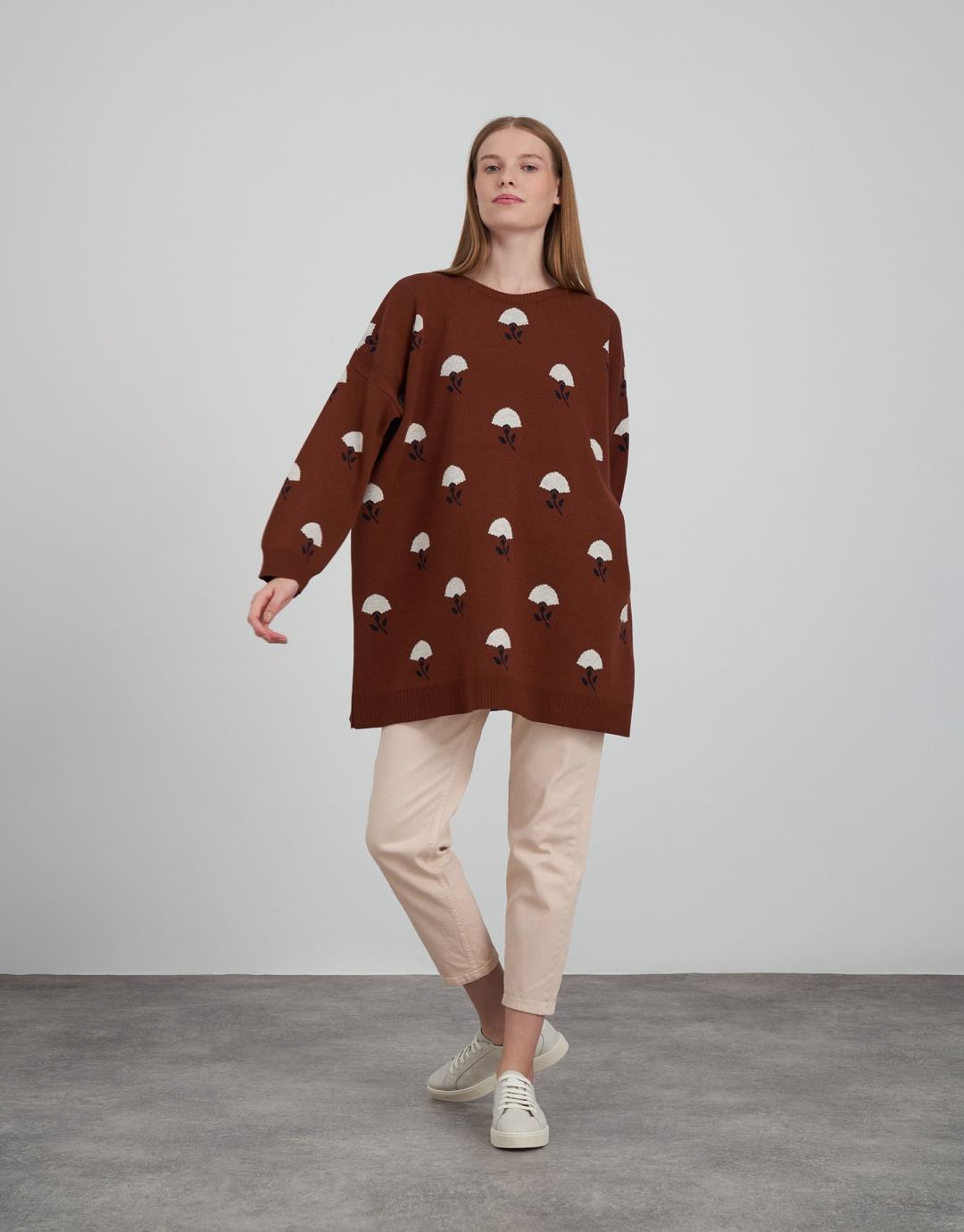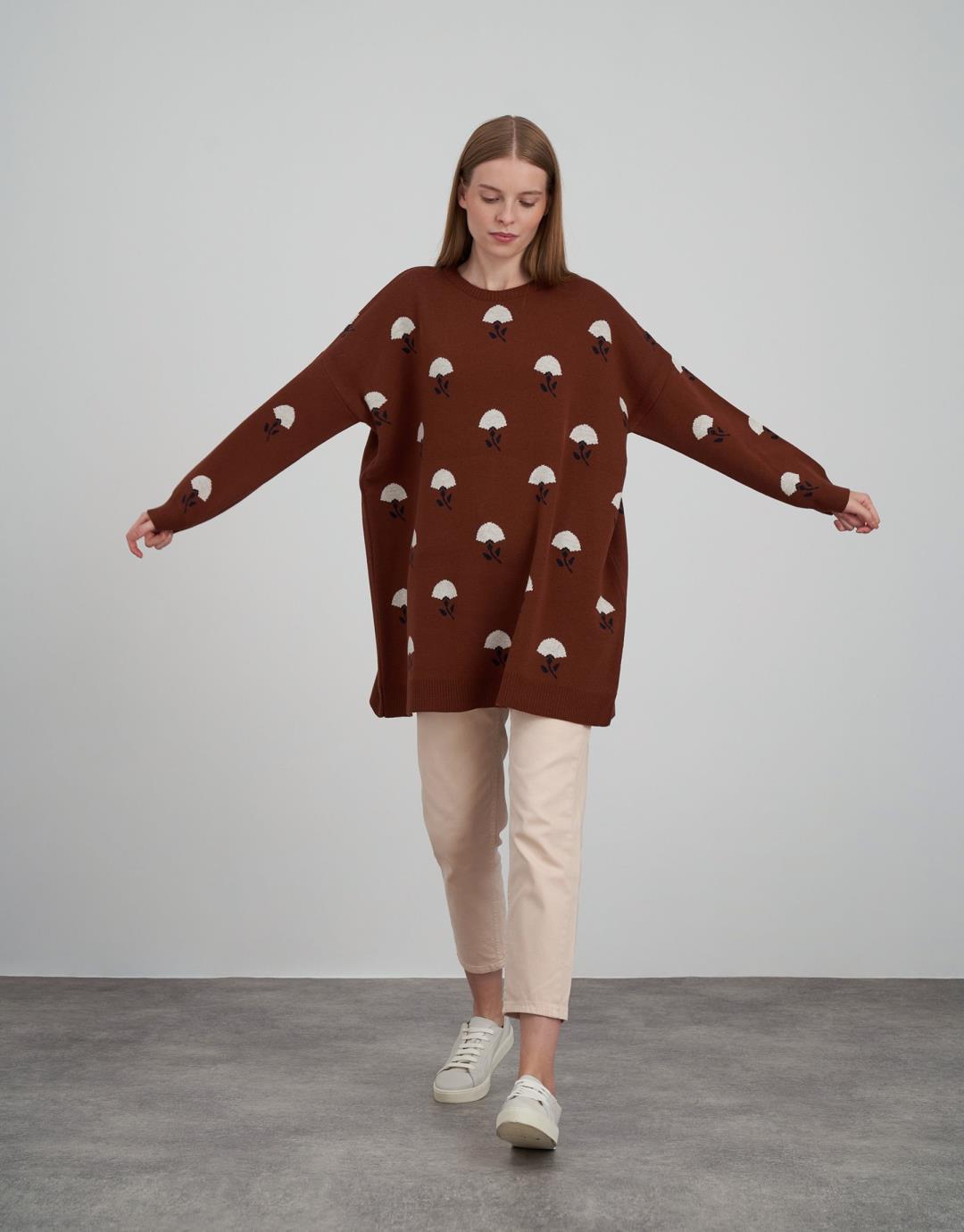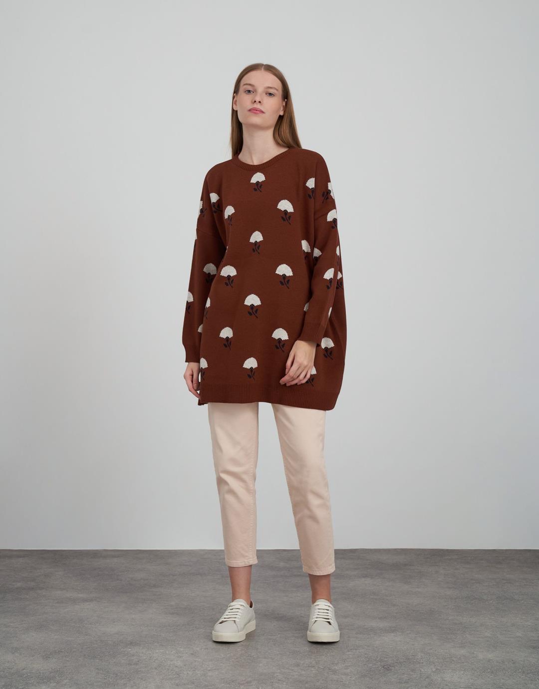 Fabric Content: 50% Cotton 50% Acrylic Fabric Info: Knitted Sleeve Detail Long sleeve Product Details: Round collar patterned Mould Information: Loose Model Size : 36 Model Height : 1.78 The product on the Model is standard size. Usage and Washing Instructions: Recommended Dry cleaning.