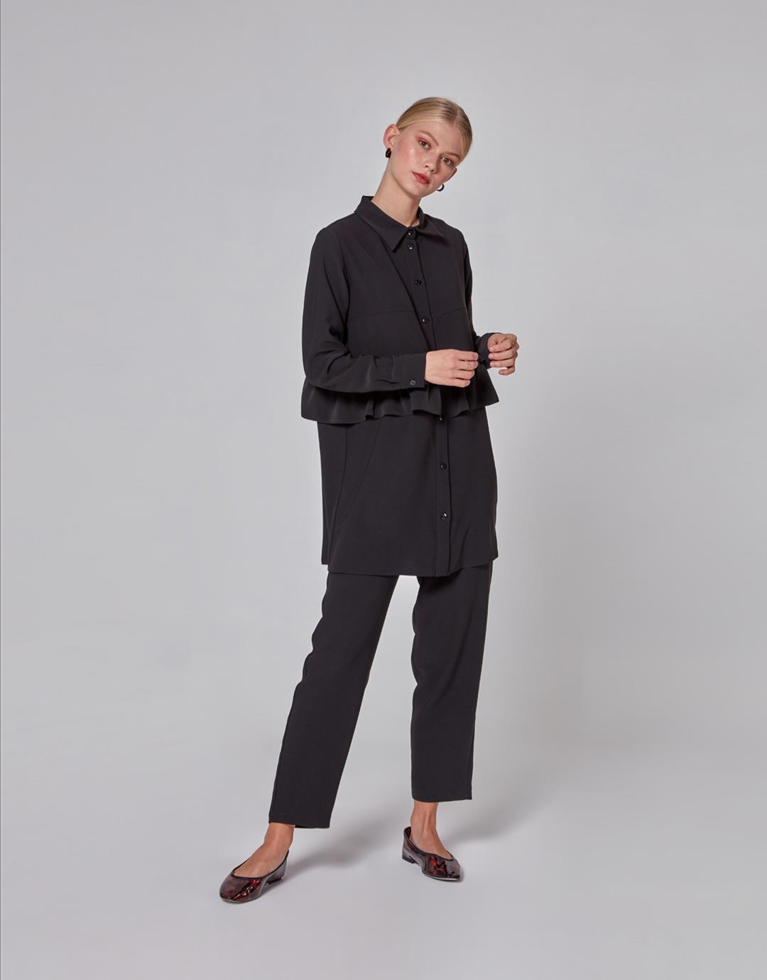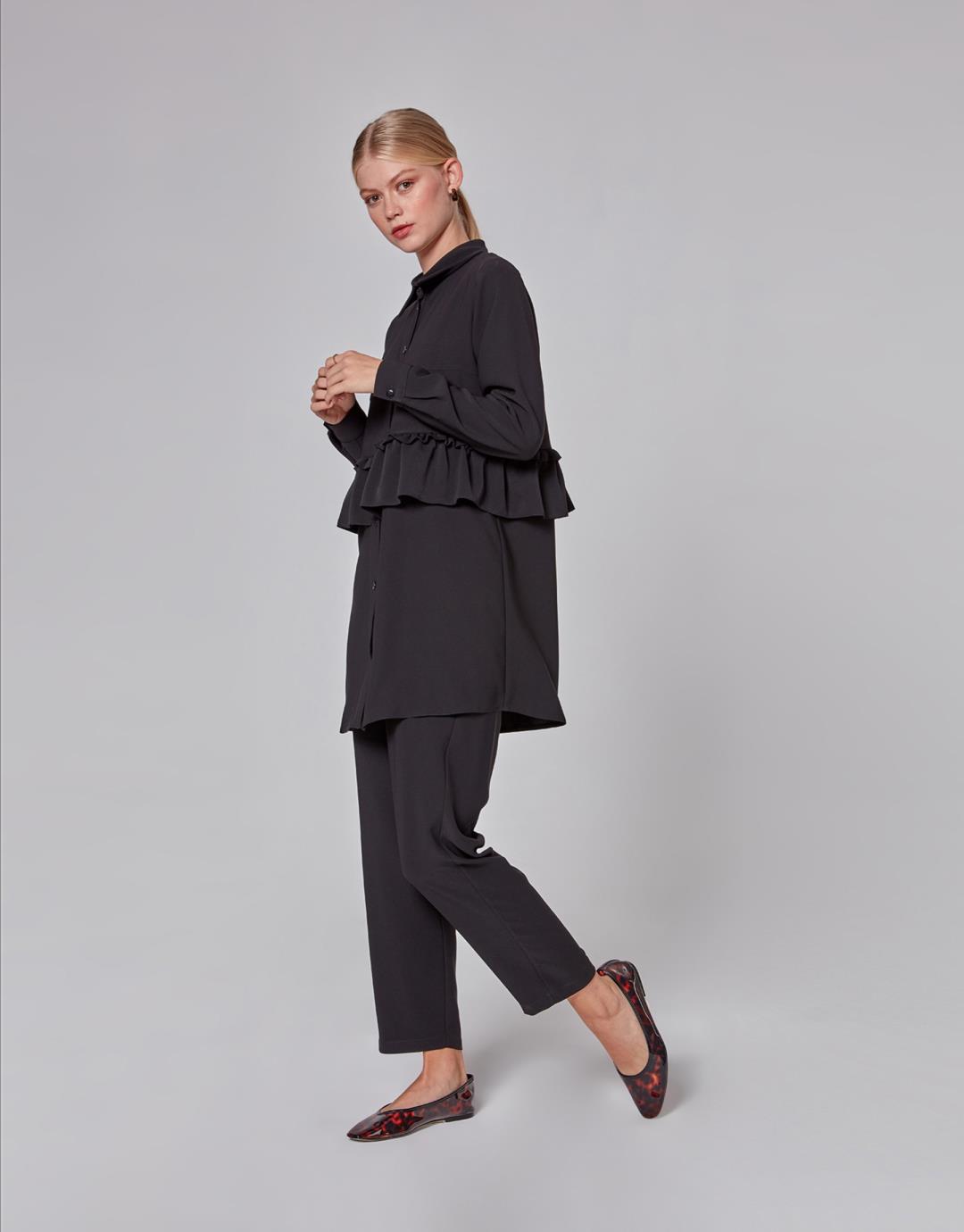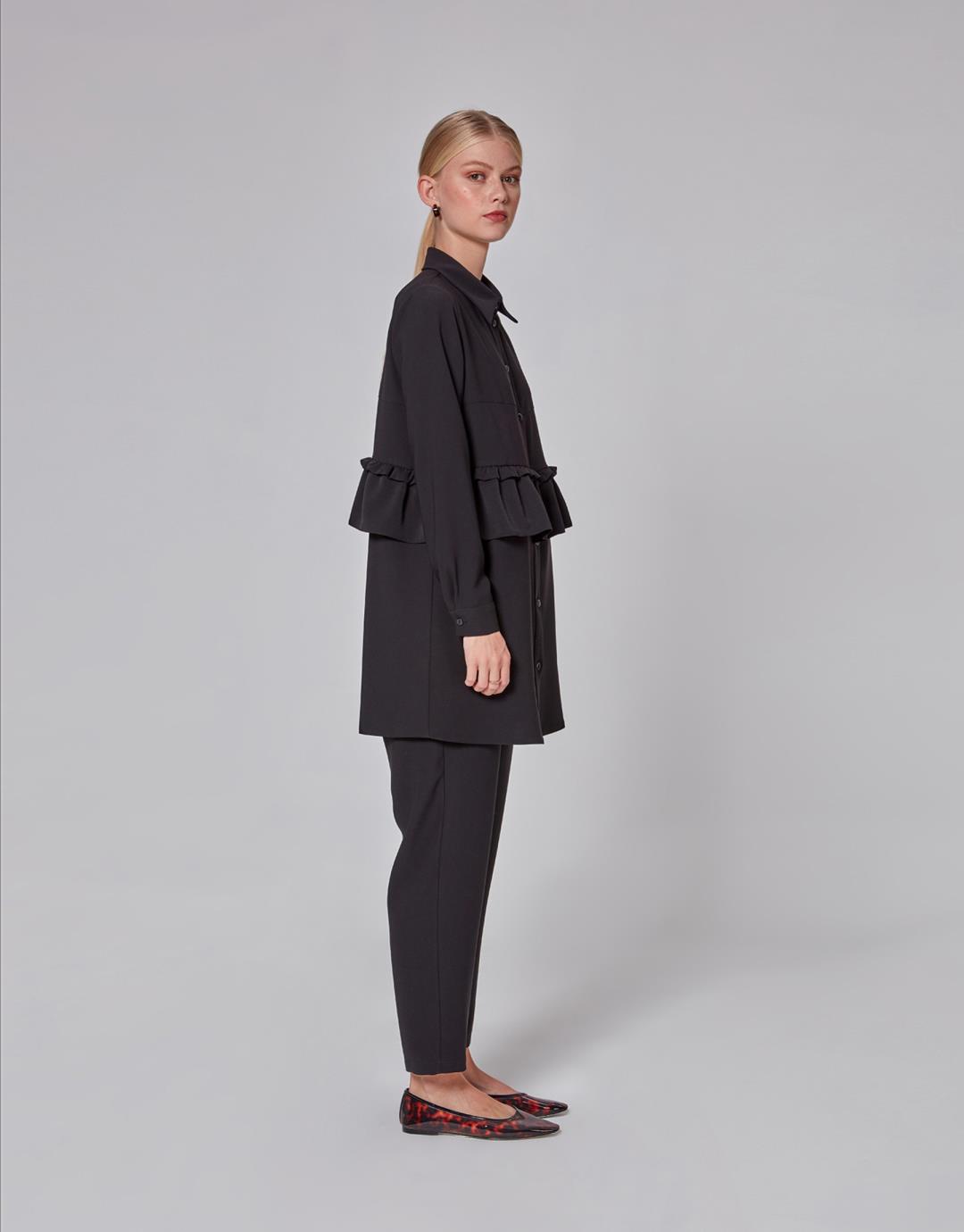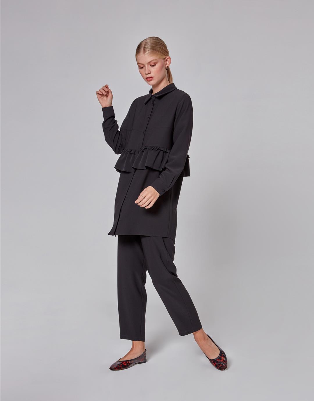 Home2020 Fall / WinterFrilly Buttoned Crepe Enna Suit – Black – 1078 Frilly Buttoned Crepe Enna Suit – Black – 1078 Category: 2020 Fall / Winter Product ID: 23233 Description Description Sample Size : 38 Fabric Information :100% Pes Usage and Washing Instructions : Recommended Dry clean.