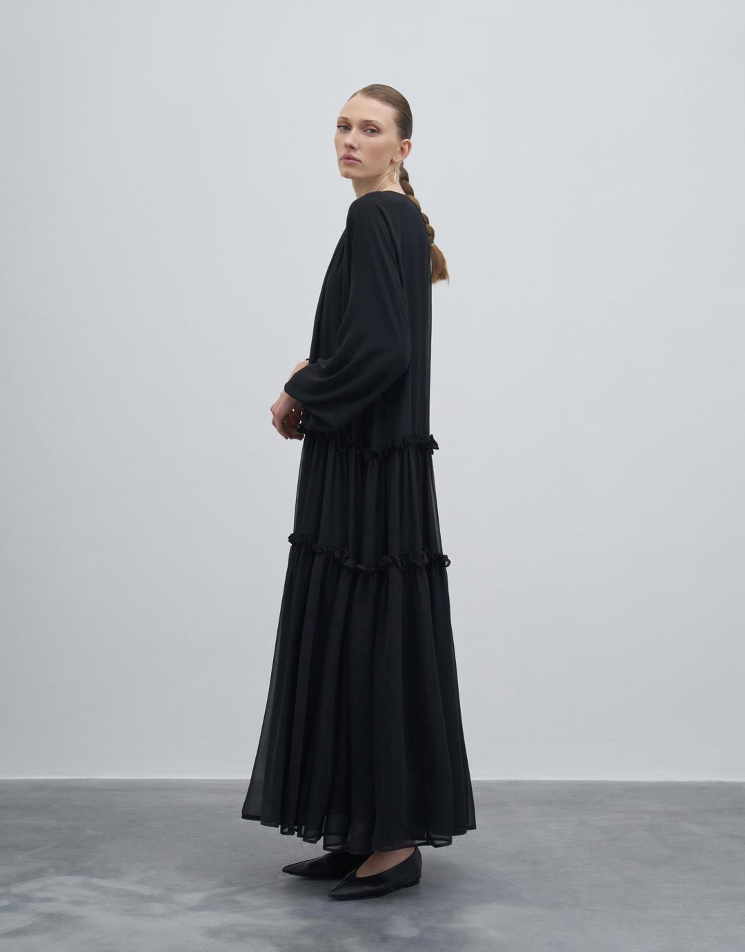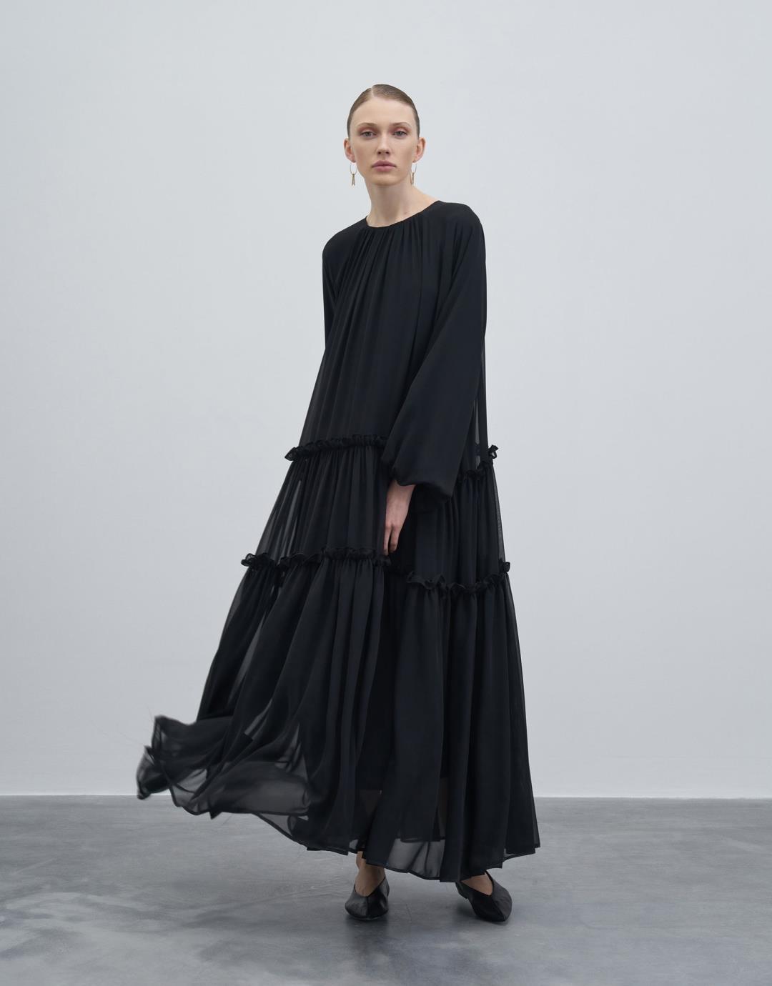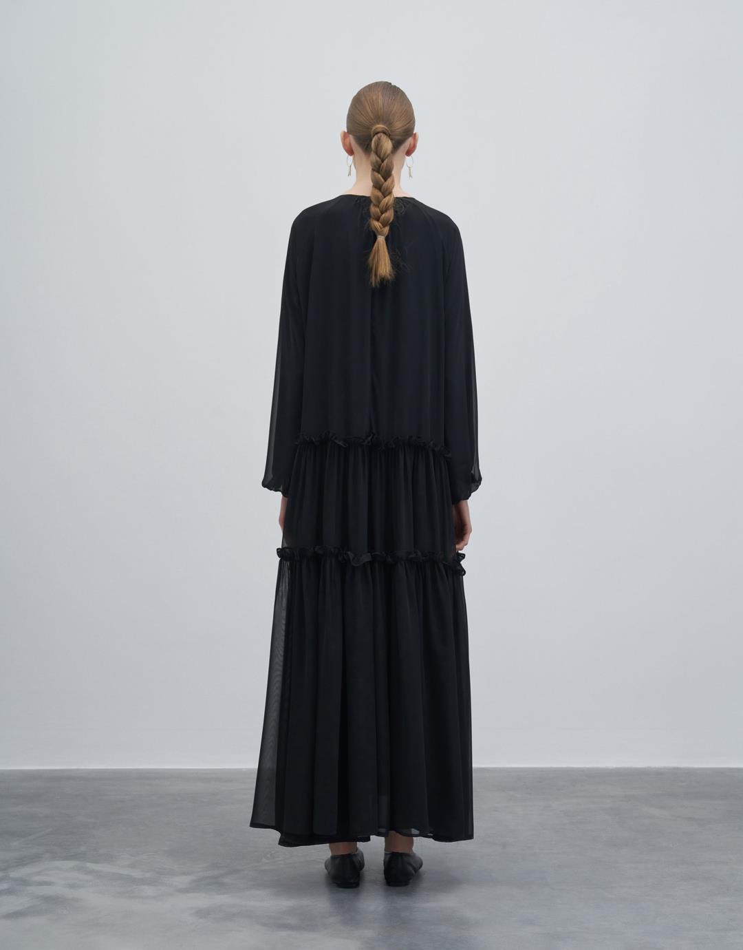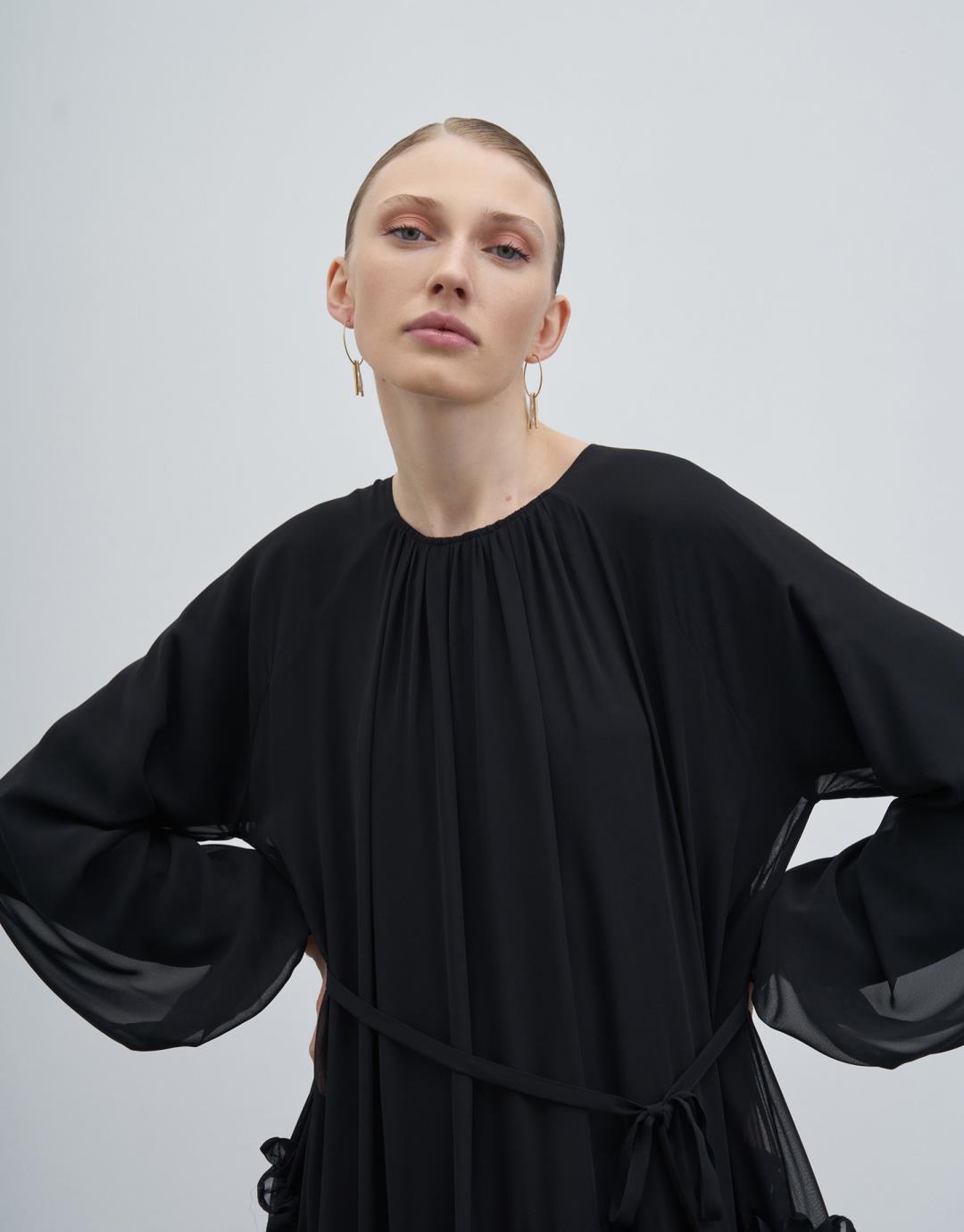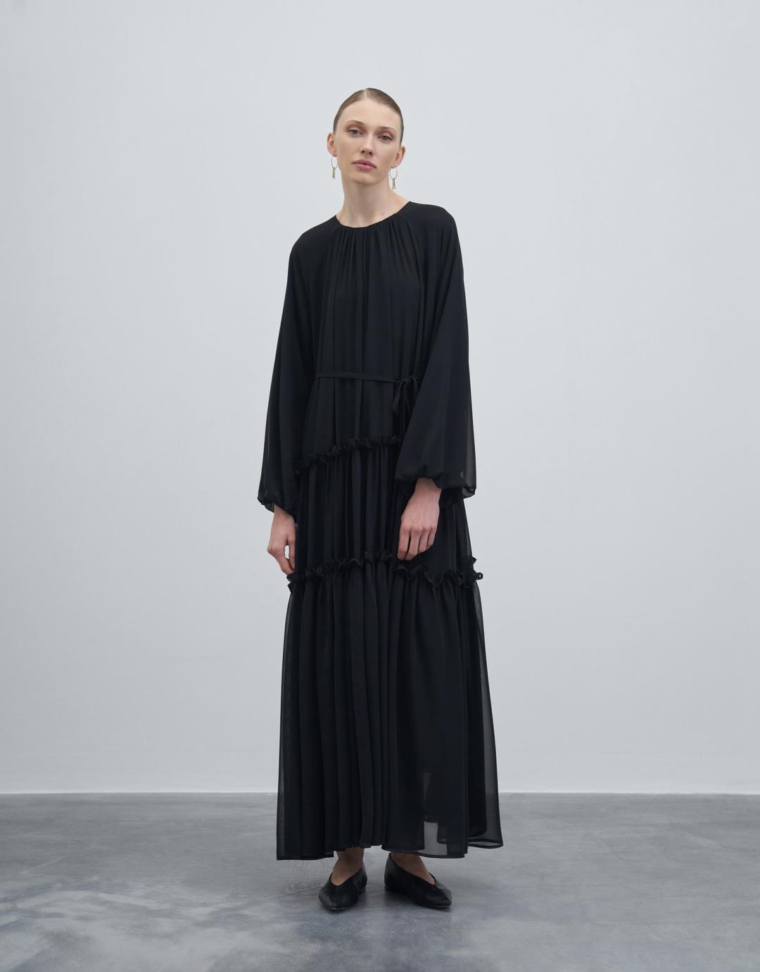 Frilly Loose Dress – Black – 23249-1
