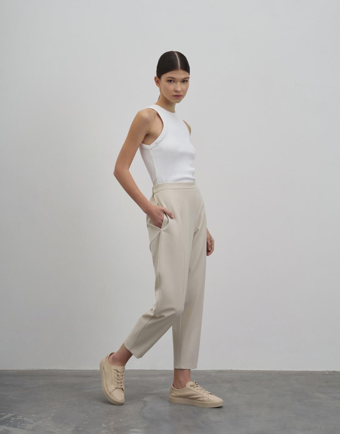 Front Stitched Slouchy Trousers – Beige Stone Color – 23190