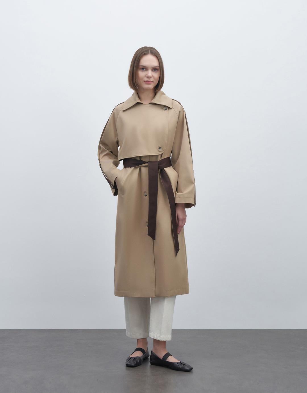 Fabric Content: 98% COT 2%EA Product Details: The product is Lined, 2 Side Pockets, Mobile Belt, Raglan Sleeve. Model Size: S/M Model Height: 1.74 The product on the mannequin is size S/M. Usage and Washing Instructions: – Dry clean. – Tumble drying is not done. – Bleach is not used. – Do not use with metal accessories. – It is a sensitive product.