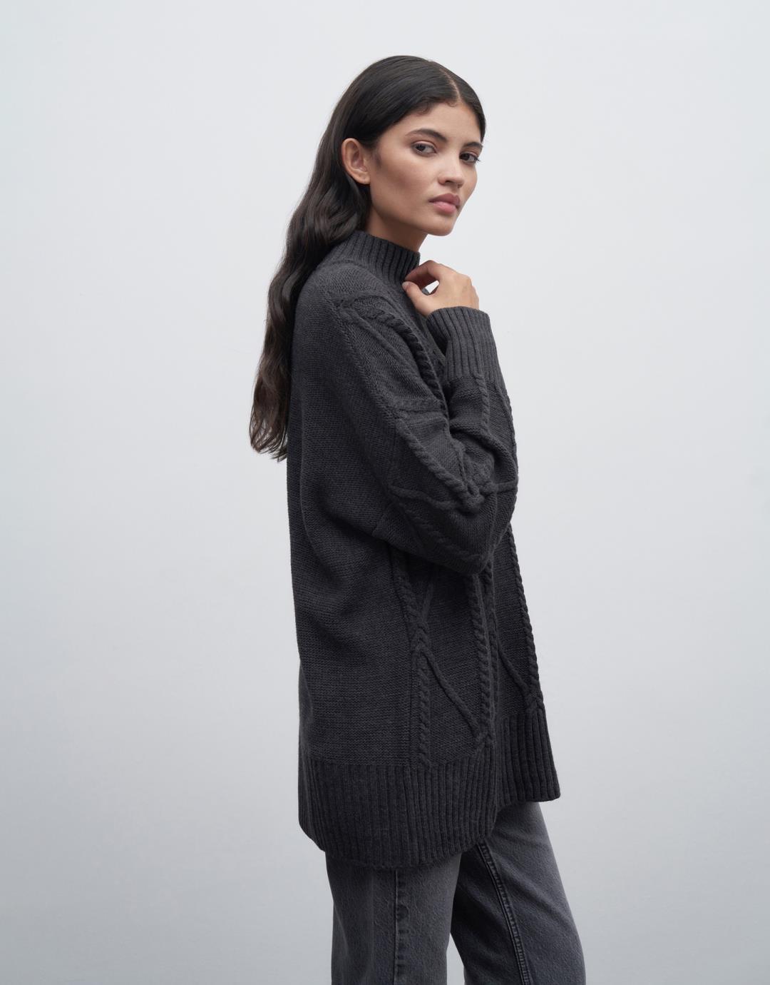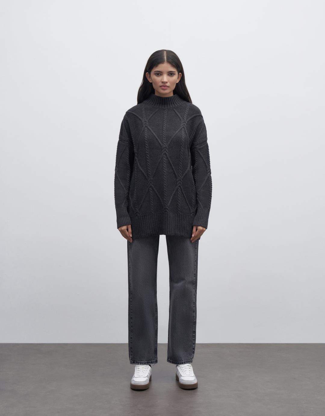 Fabric Content: 100% SOFT ACRYLIC Product Details: High collar. Long sleeve. Hair braided. Model Size: S/M Model Height: 1.74 The product on the mannequin is size S/M. Usage and Washing Instructions: – Dry clean. – Tumble drying is not done. – Bleach is not used. – Do not use with metal accessories. – It is a sensitive product.