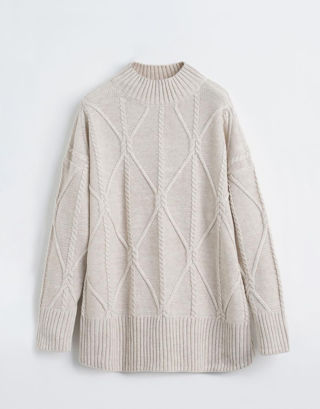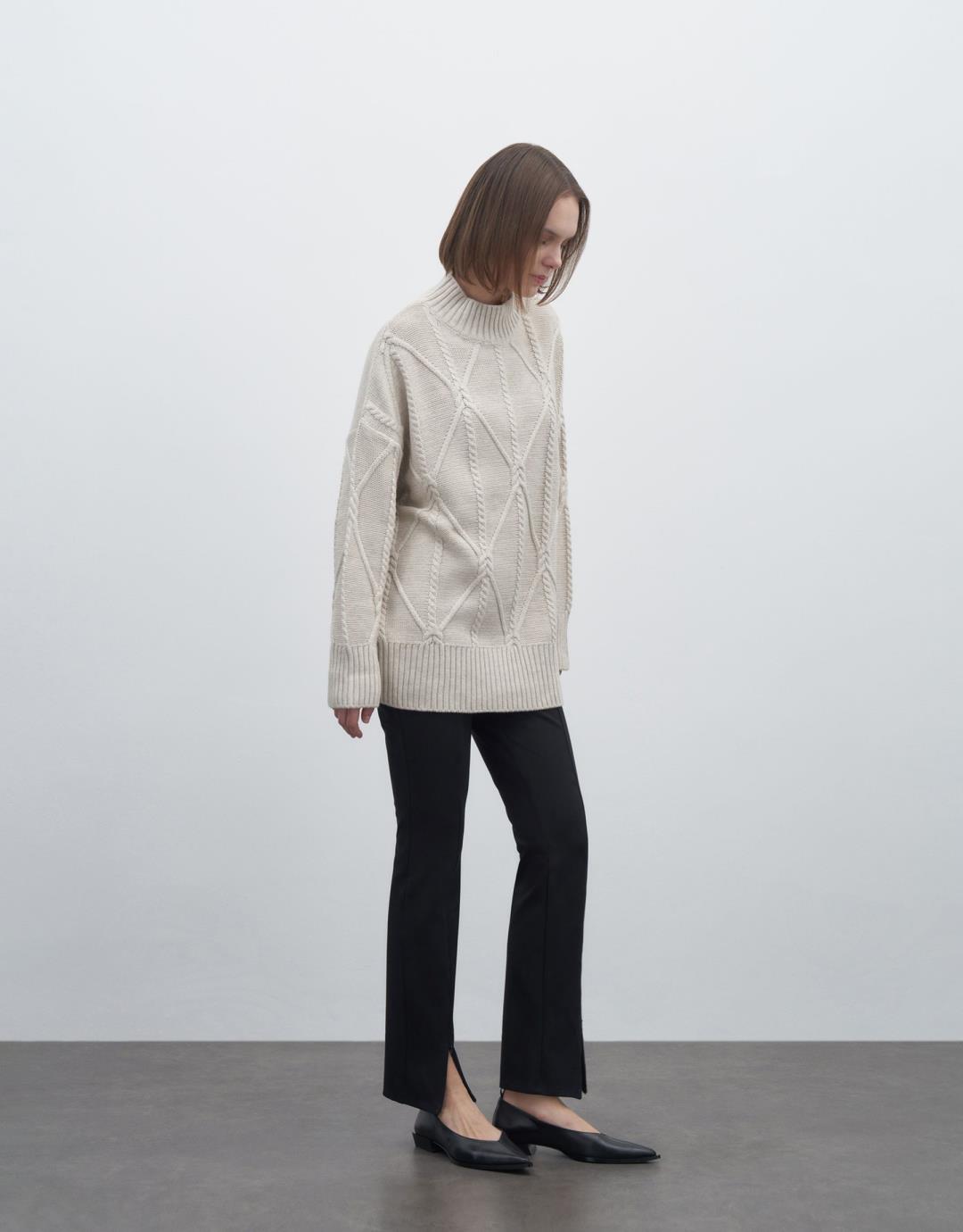 Fabric Content: 100% SOFT ACRYLIC Product Details: High collar. Long sleeve. Hair braided. Model Size: S/M Model Height: 1.74 The product on the mannequin is size S/M. Usage and Washing Instructions: – Dry clean. – Tumble drying is not done. – Bleach is not used. – Do not use with metal accessories. – It is a sensitive product.